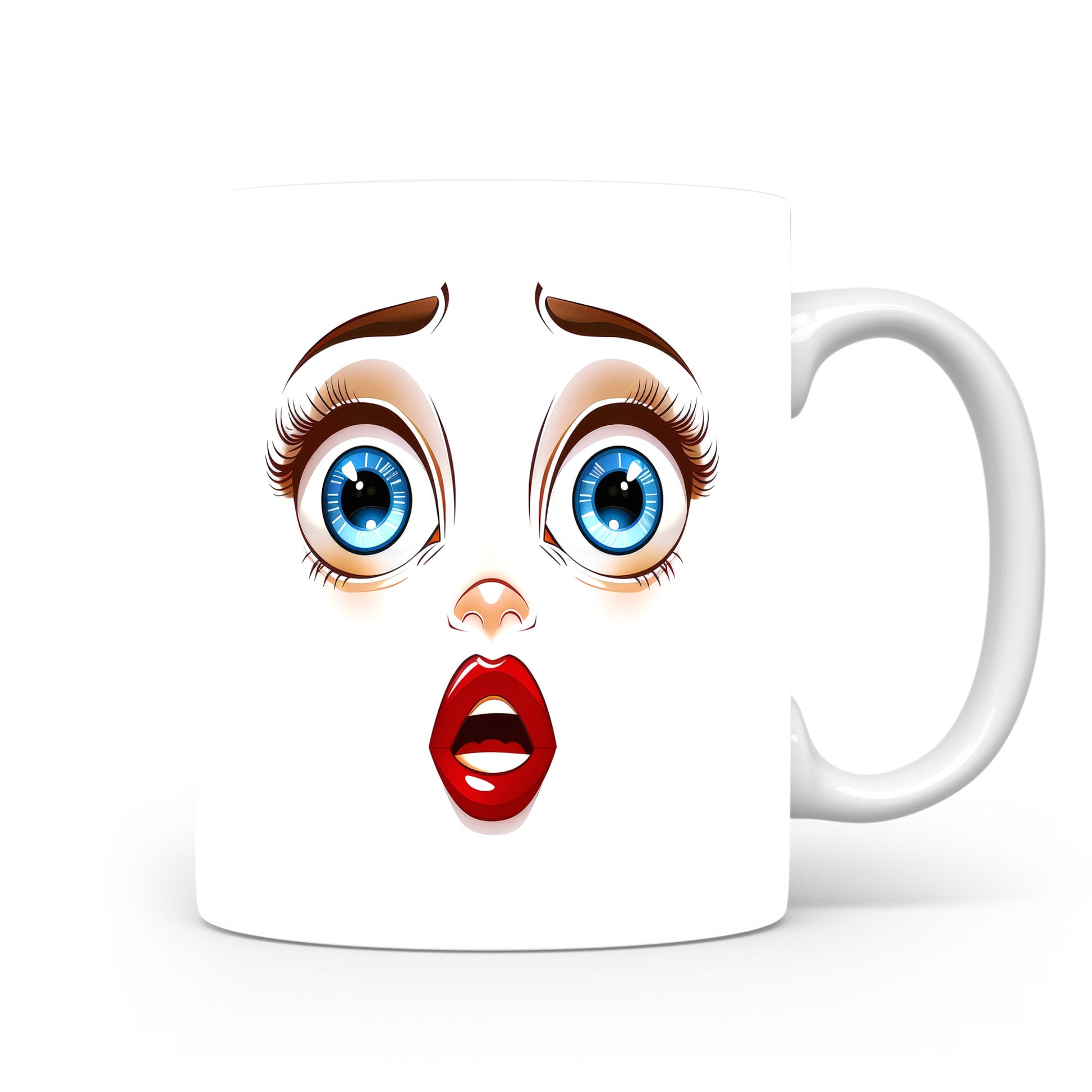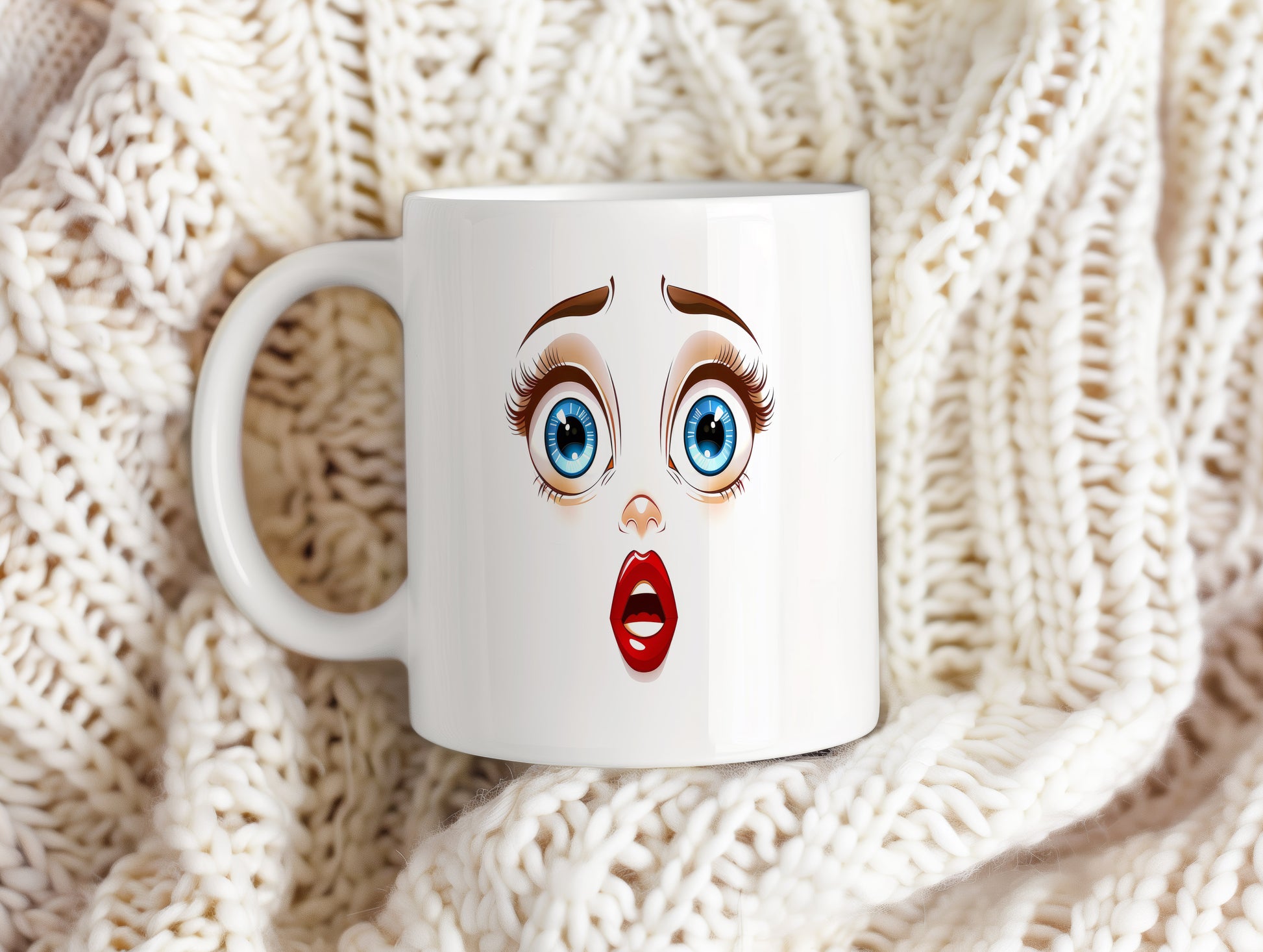 Hrnek s vtipným obličejem – vyděšené oči. Skvělý parťák pro ranní kávu i odpolední čaj.