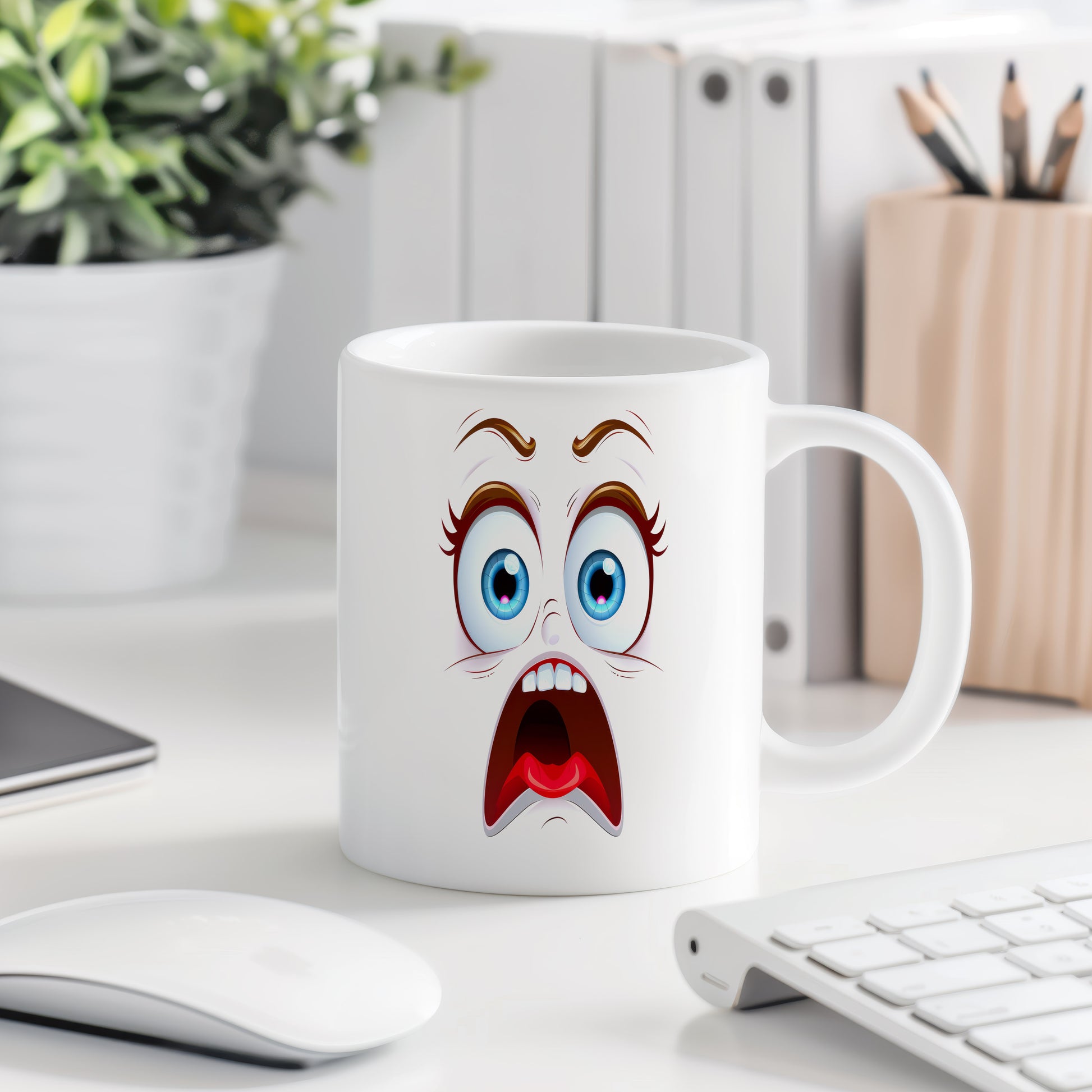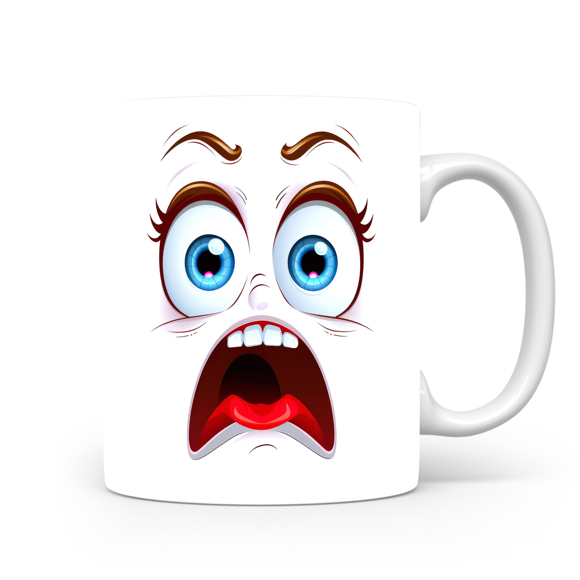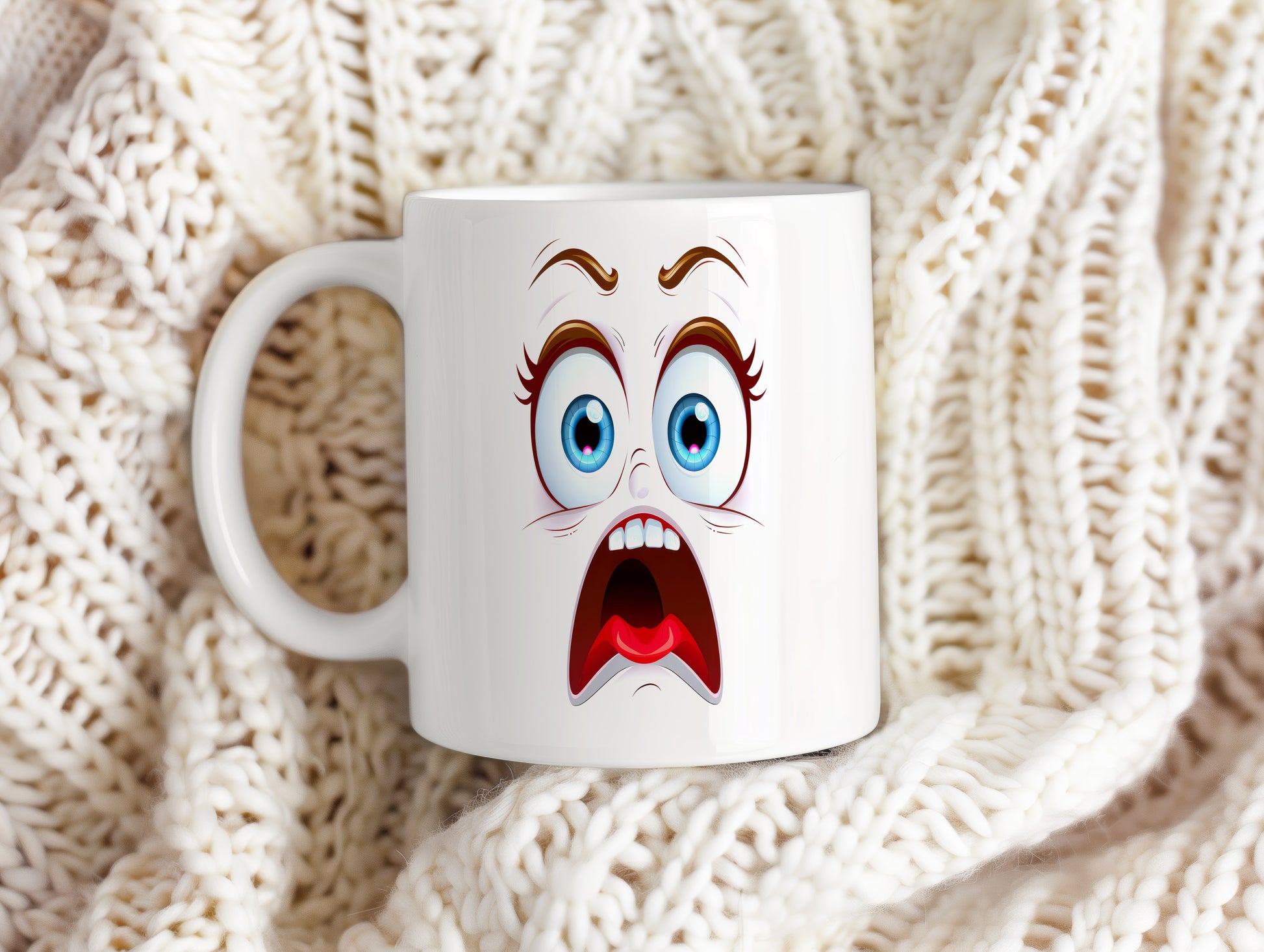 Hrnek s vtipným obličejem – vyděšený křik. Skvělý parťák pro ranní kávu i odpolední čaj.