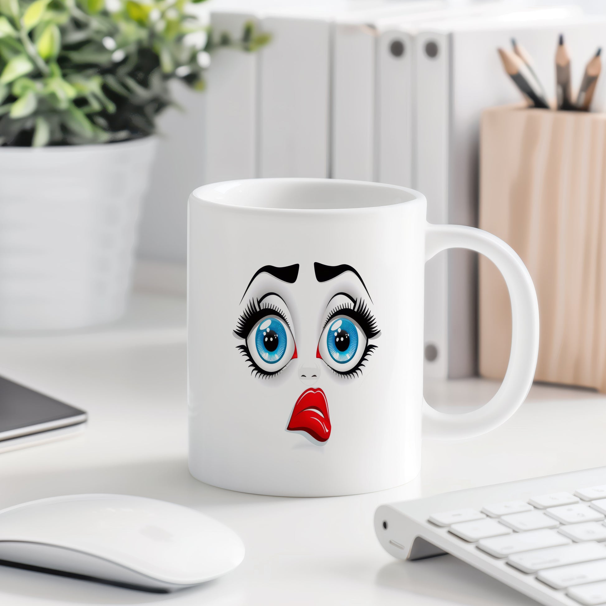 Hrnek s vtipným obličejem – zklamané našpulení. Skvělý parťák pro ranní kávu i odpolední čaj.