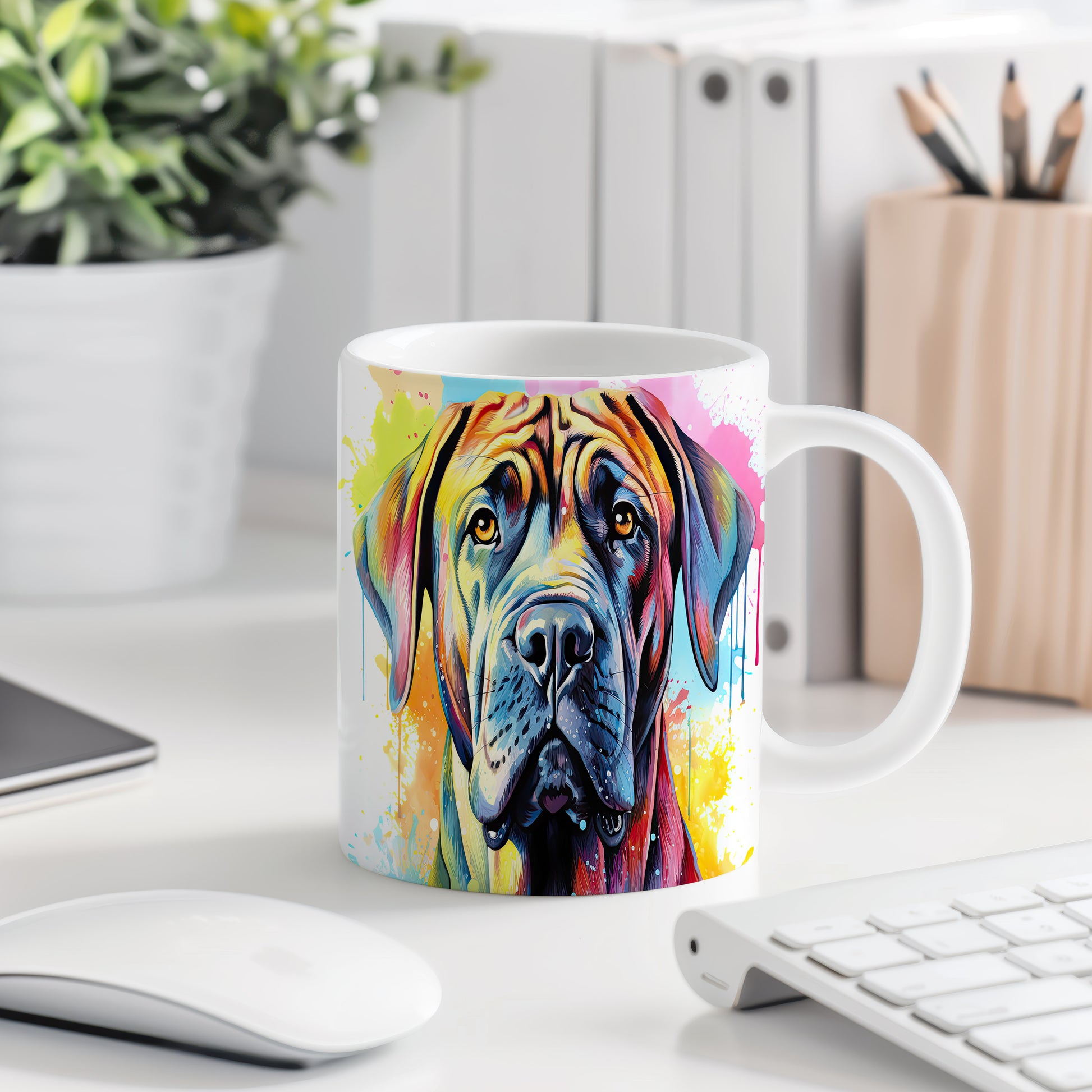 Tento hrnek s barevným portrétem psa vyniká výraznými detaily a živými barvami. Je ideální pro milovníky psů a skvělým dárkem pro každého, kdo má rád zvířata. Materiál: keramika. Objem: 330 ml. Vhodné do myčky i mikrovlnky. Díky svému designu přináší radost při každém doušku.
