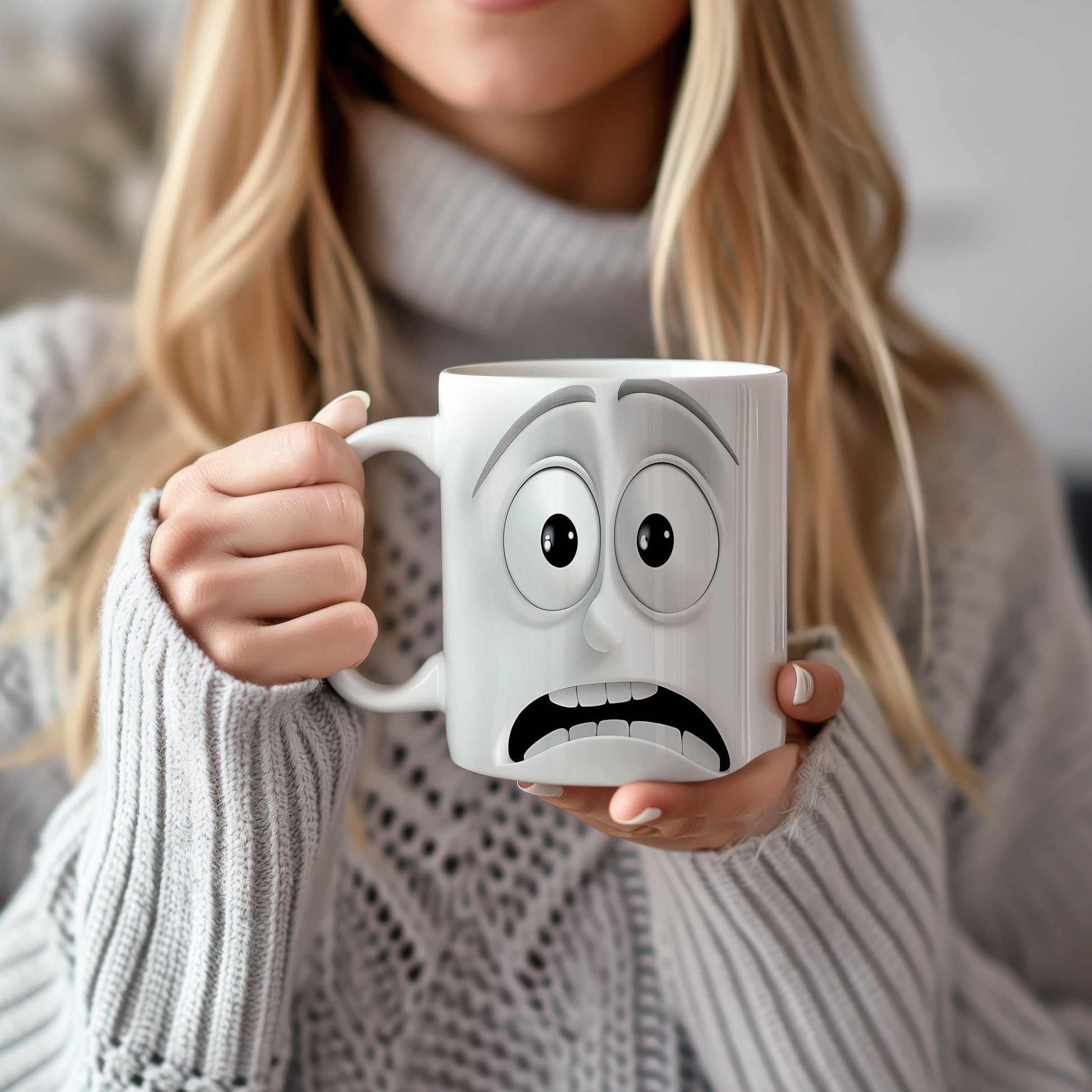Tento hrnek s vyděšeným obličejem je skvělým kouskem pro milovníky originálních designů. Je ideální jako dárek pro přátele, kteří ocení vtipné a netradiční předměty. Materiál: keramika. Objem: 330 ml. Vhodné do myčky i mikrovlnky. Používání tohoto hrnku přinese do každodenního pití špetku humoru.