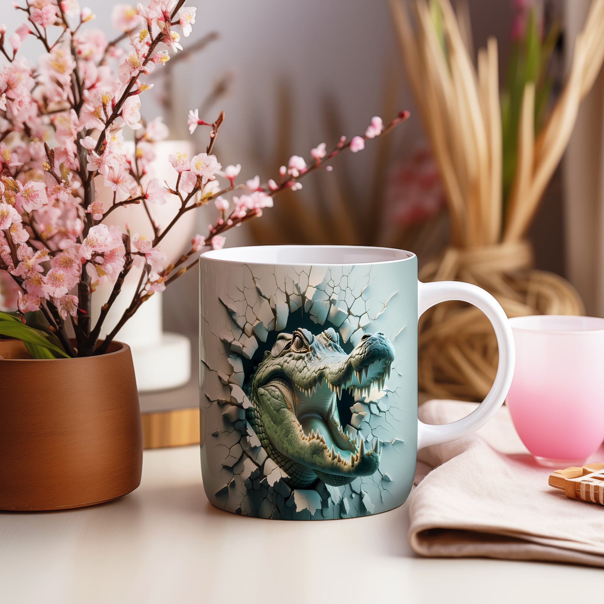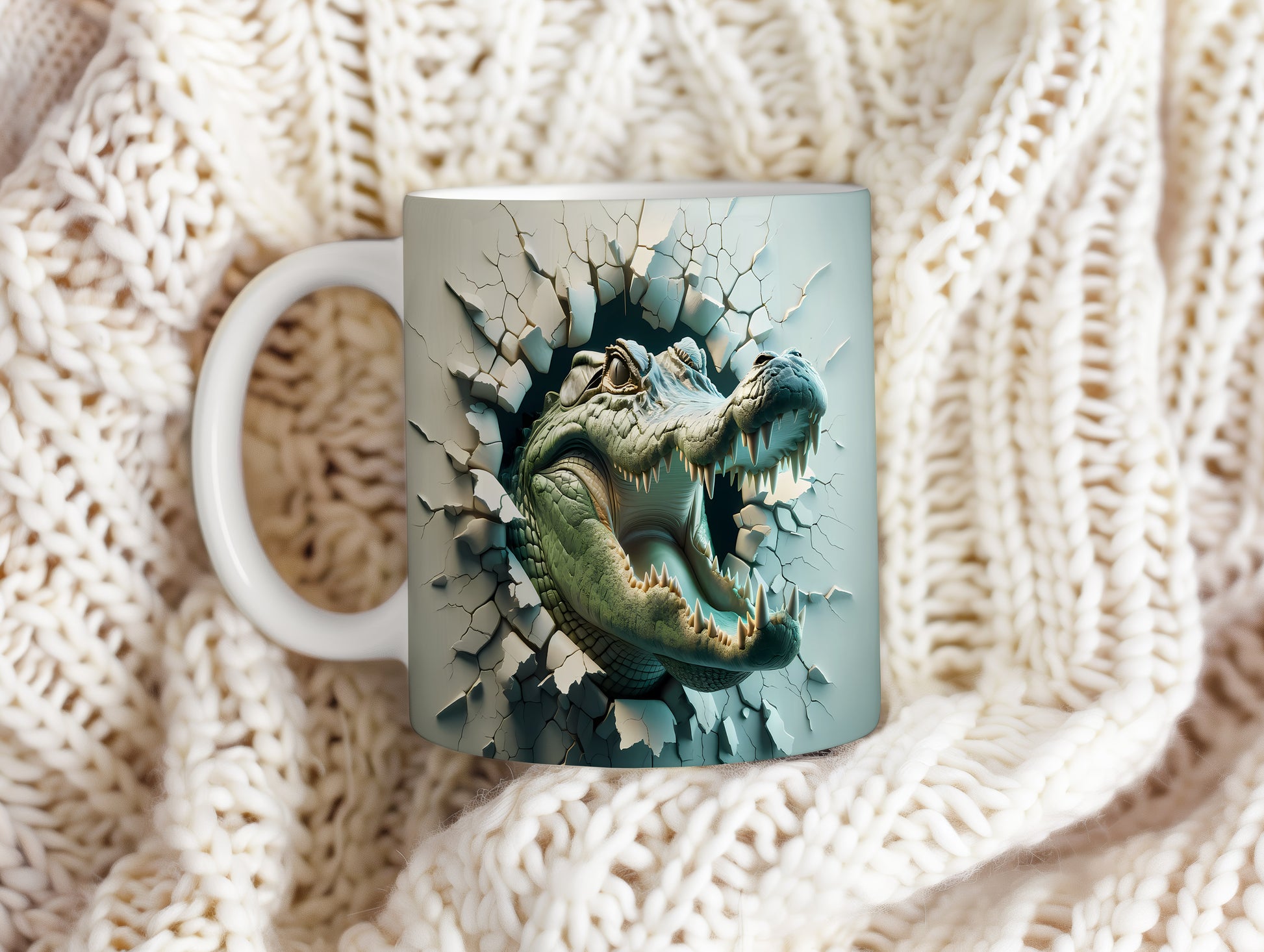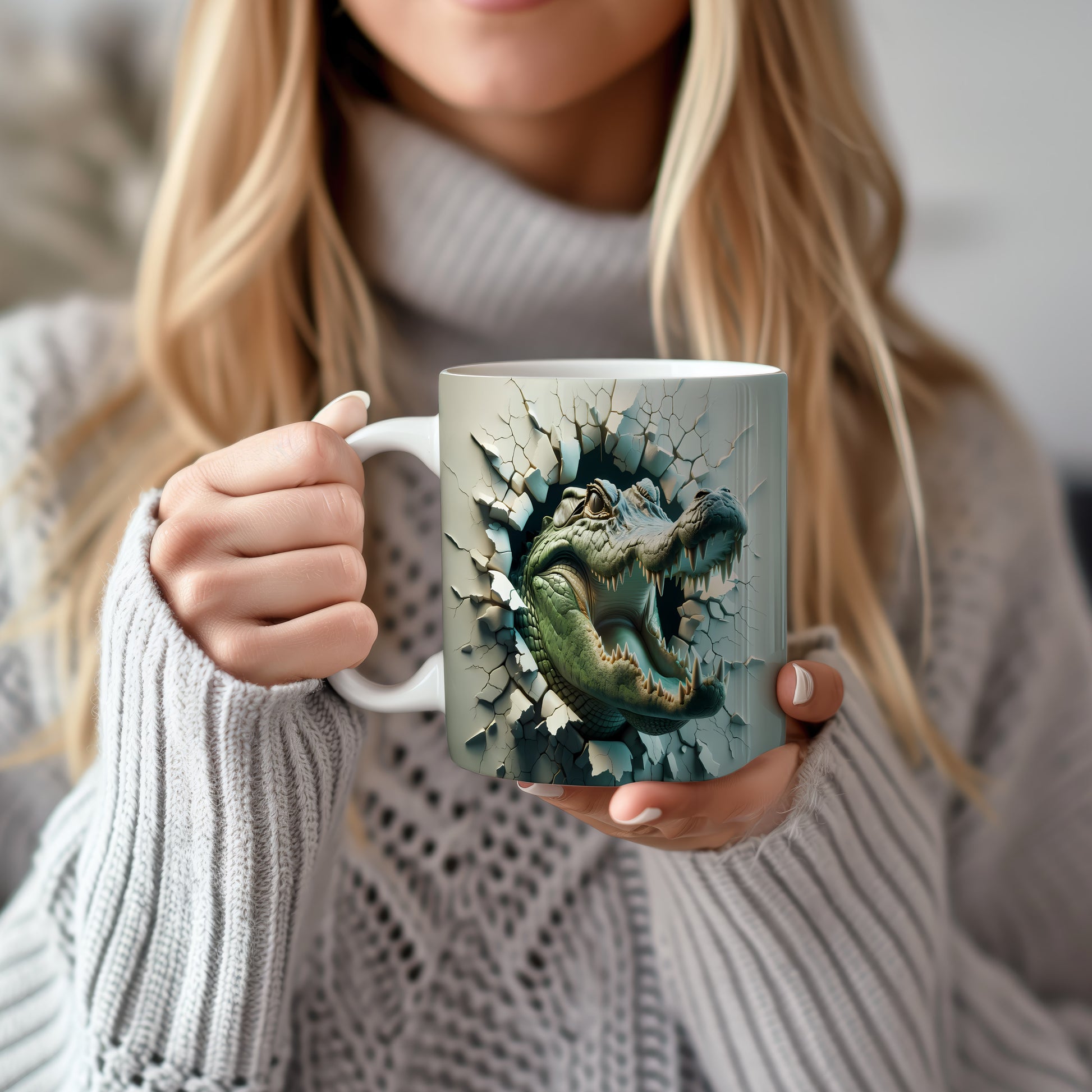 Hrnek s vykukujícím krokodýlem 3D efektem