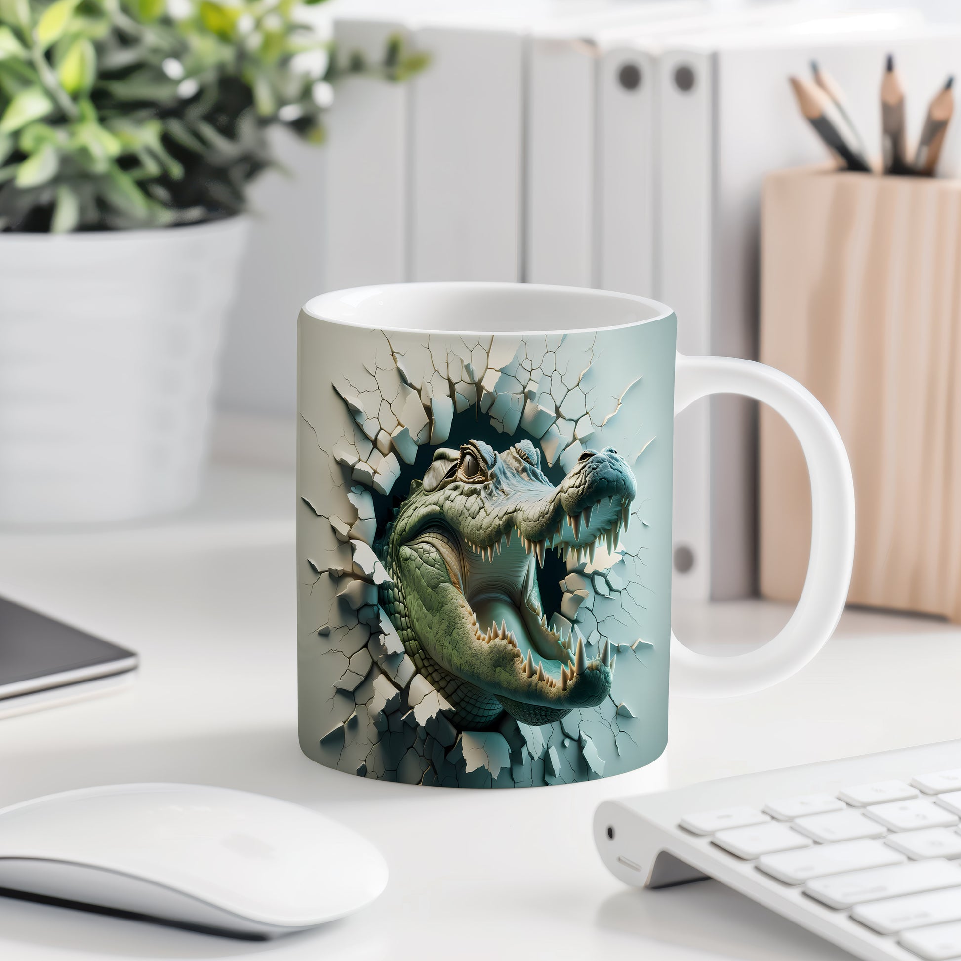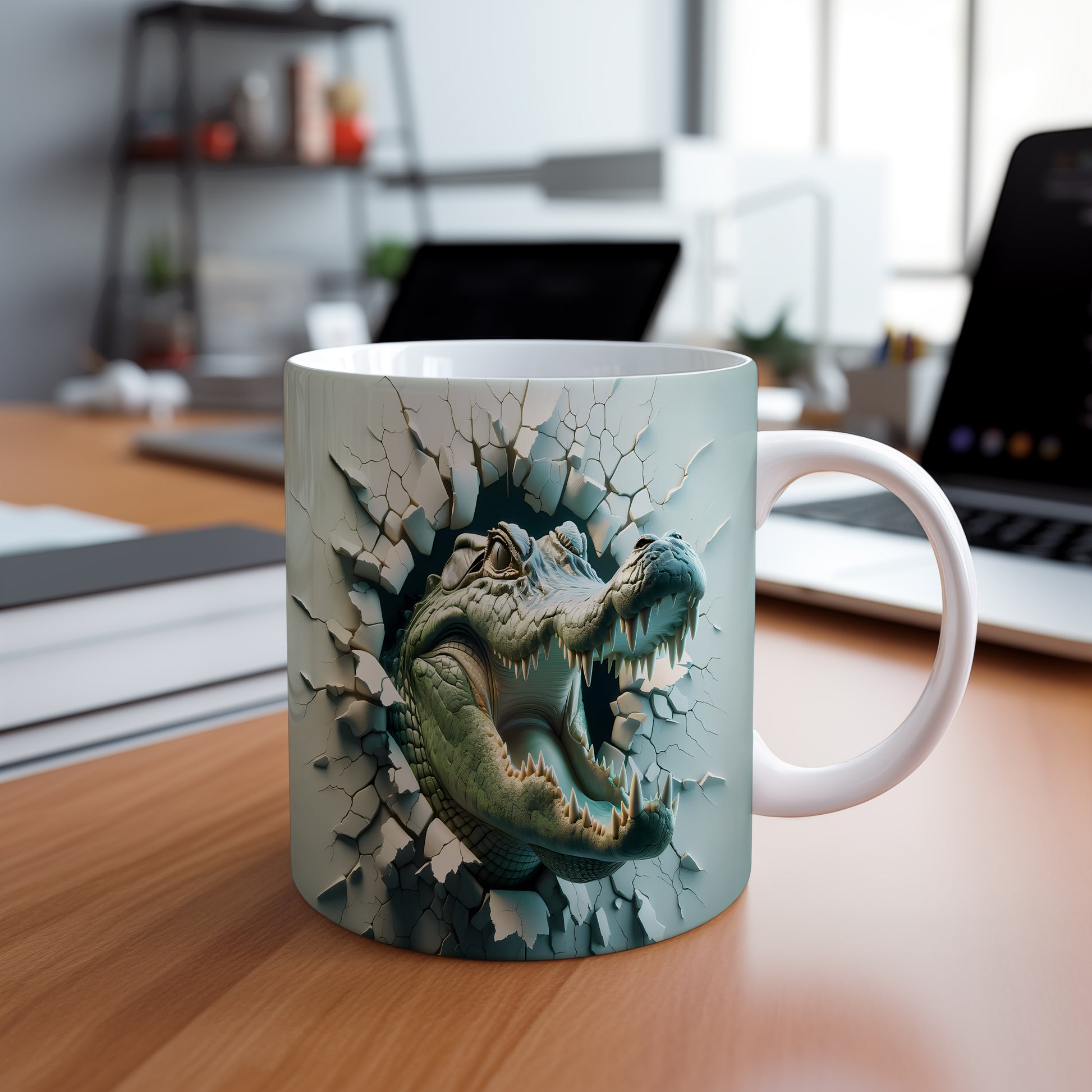 Tento hrnek zobrazuje krokodýla s realistickým 3D efektem, ideální pro milovníky zvířat a přírody. Skvělý tip na dárek pro každého, kdo ocení originální design. Materiál: keramika. Objem: 330 ml. Vhodné do myčky i mikrovlnky. Používání tohoto hrnku přináší radost z každého doušku.