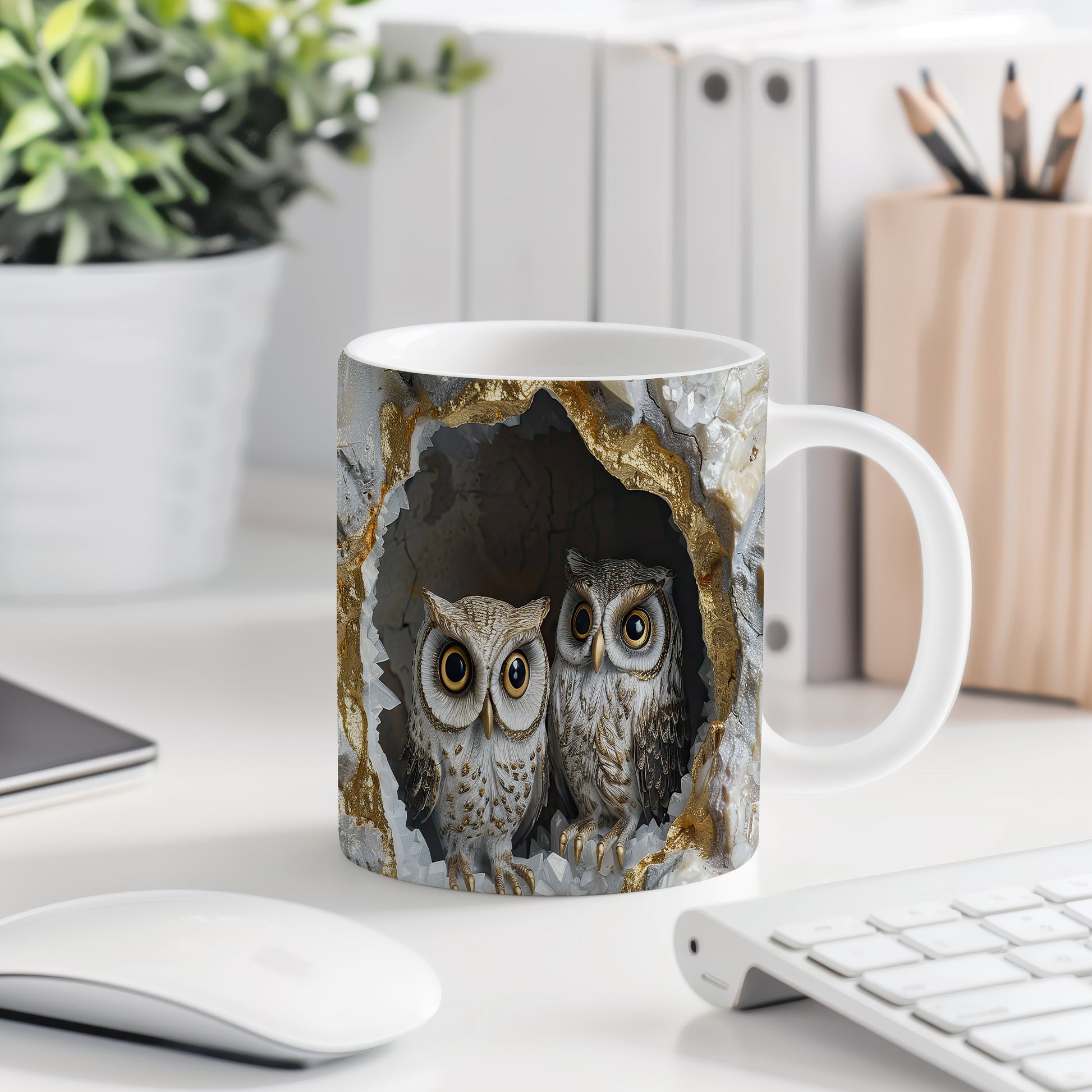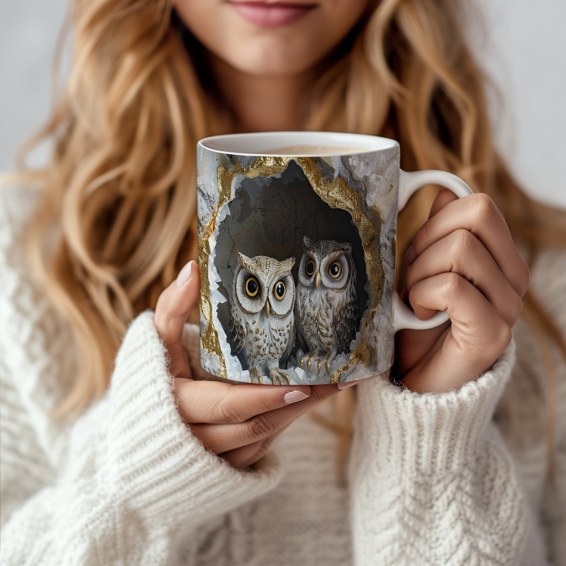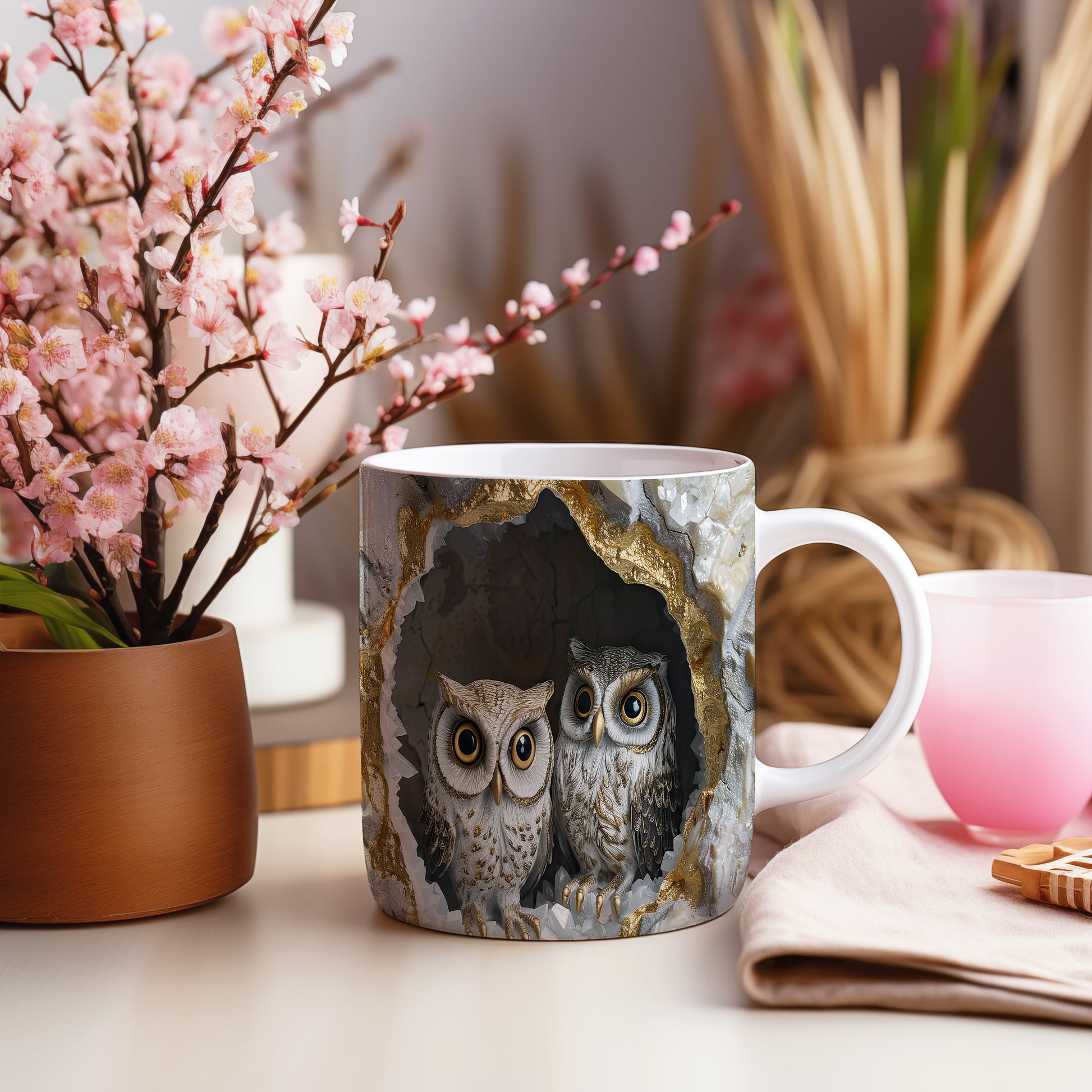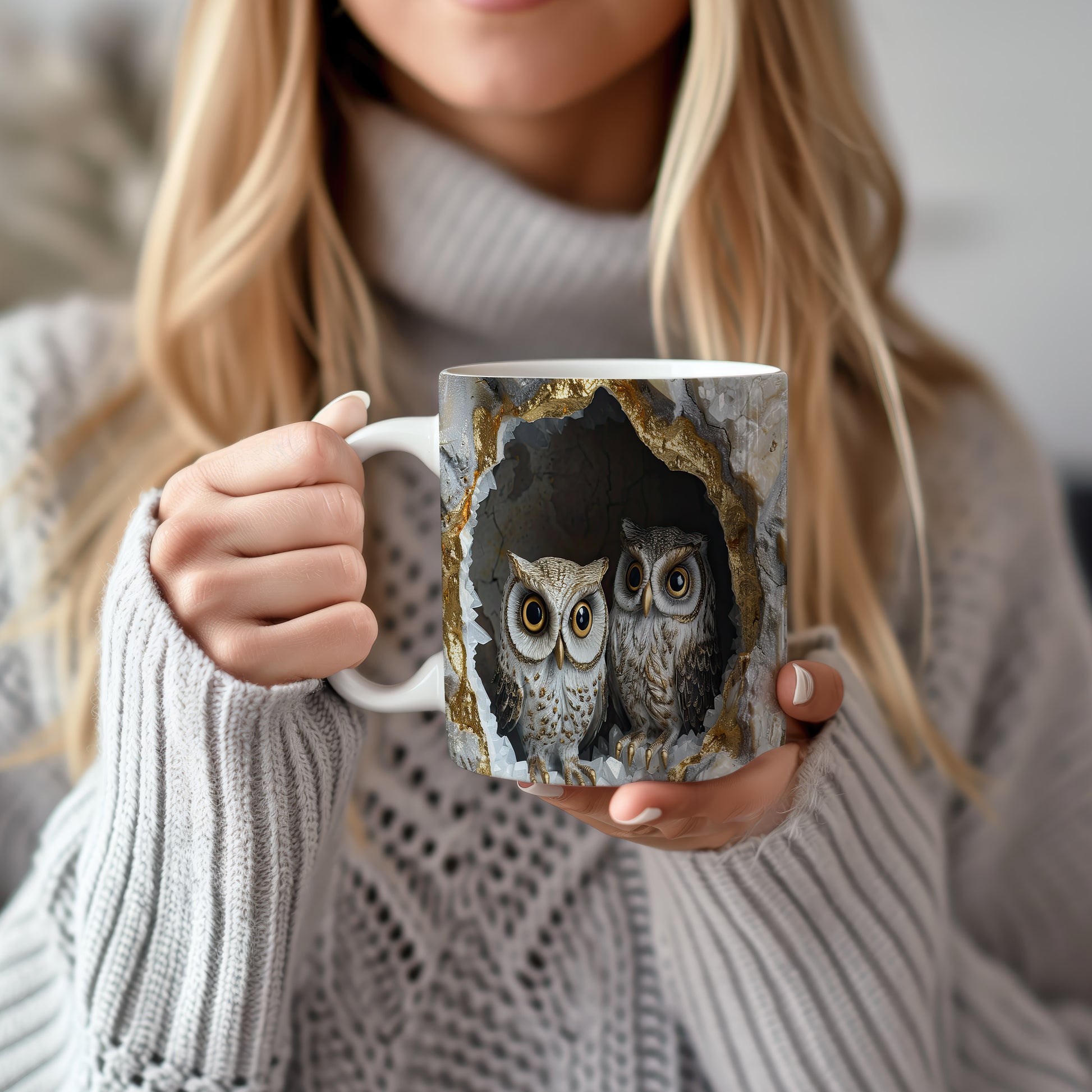 Hrnek s motivem dvou sov v jeskyni přináší přírodní atmosféru a realistické detaily. Tento hrnek je ideální pro milovníky ptáků a přírody, skvělý tip na dárek pro přátele nebo rodinu. Materiál: keramika. Objem: 330 ml. Vhodné do myčky i mikrovlnky. Užívejte si kávu nebo čaj s jedinečným designem, který oživí každý den.