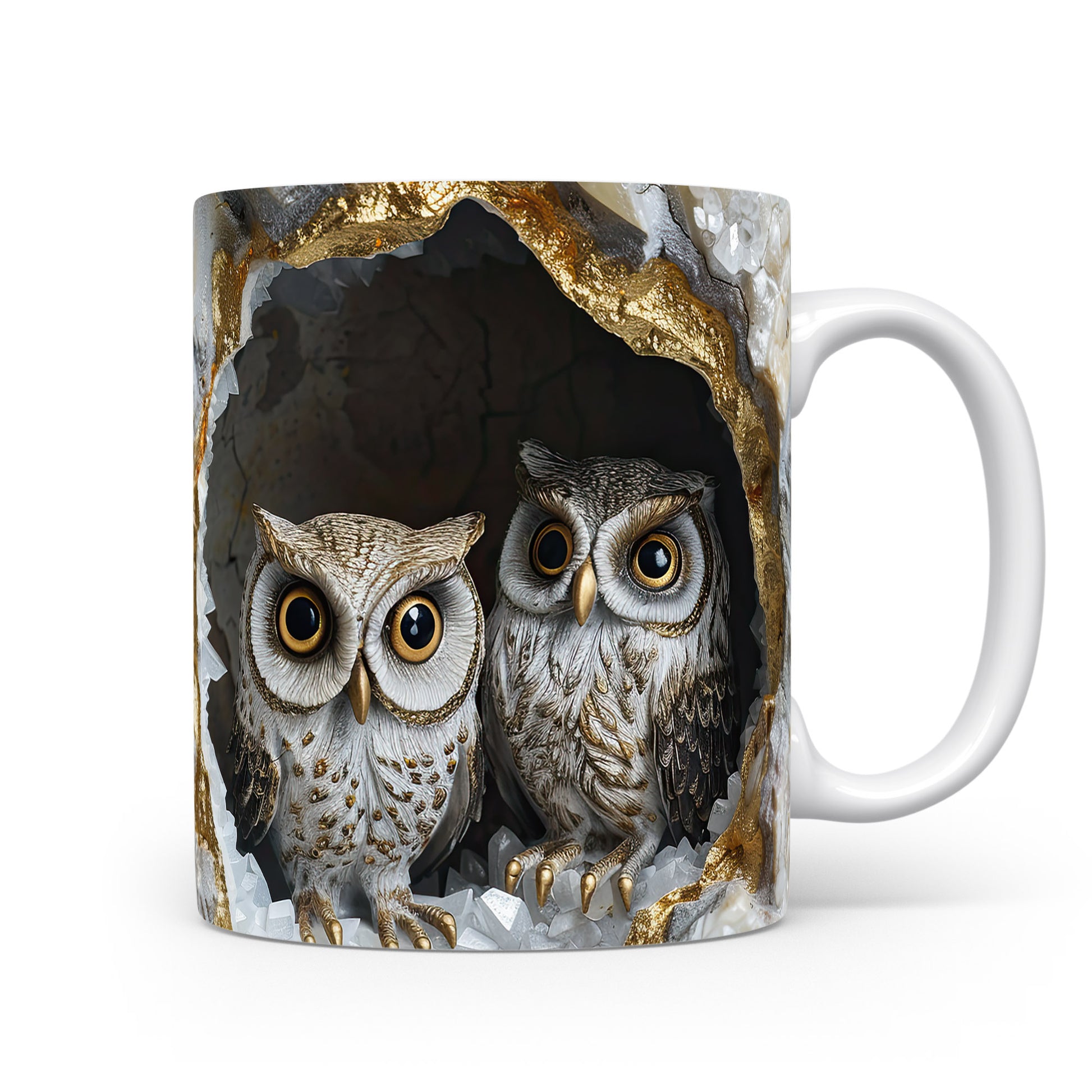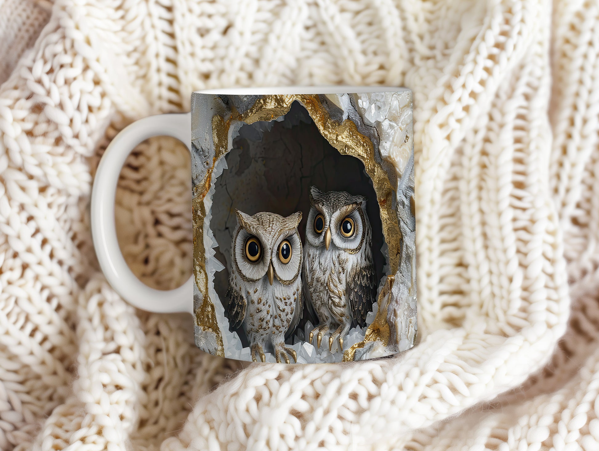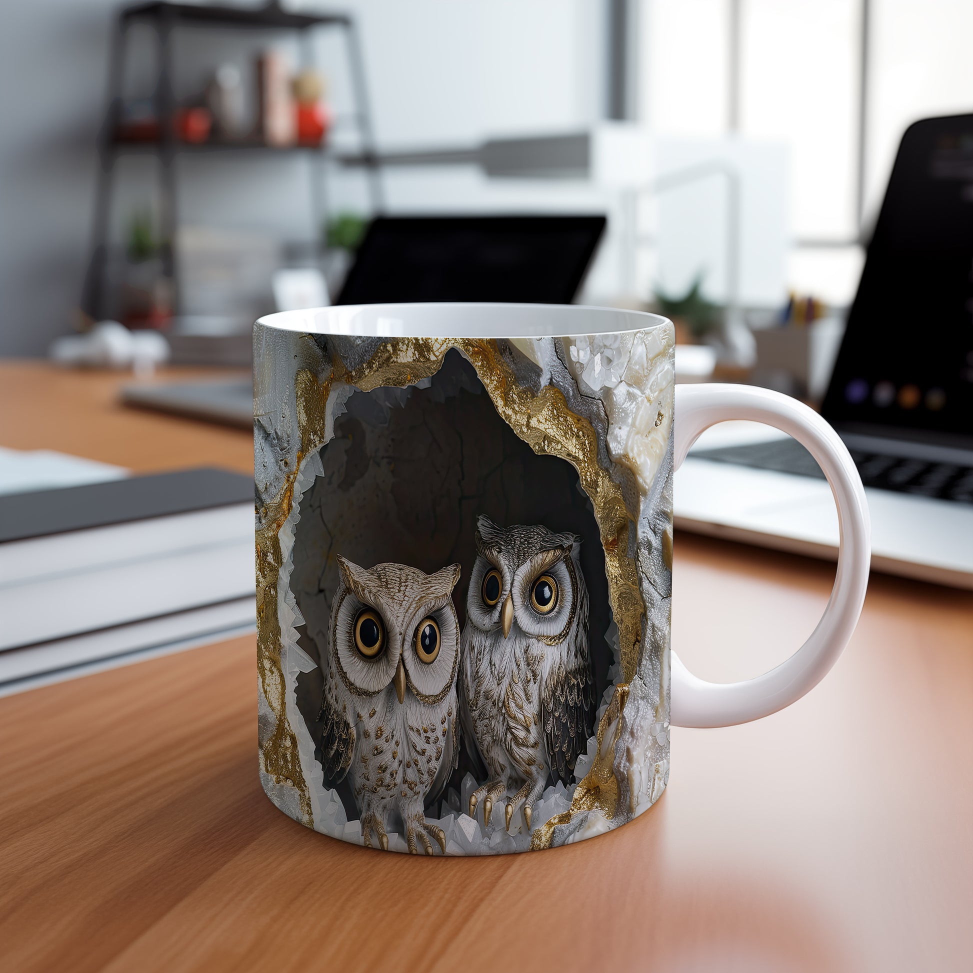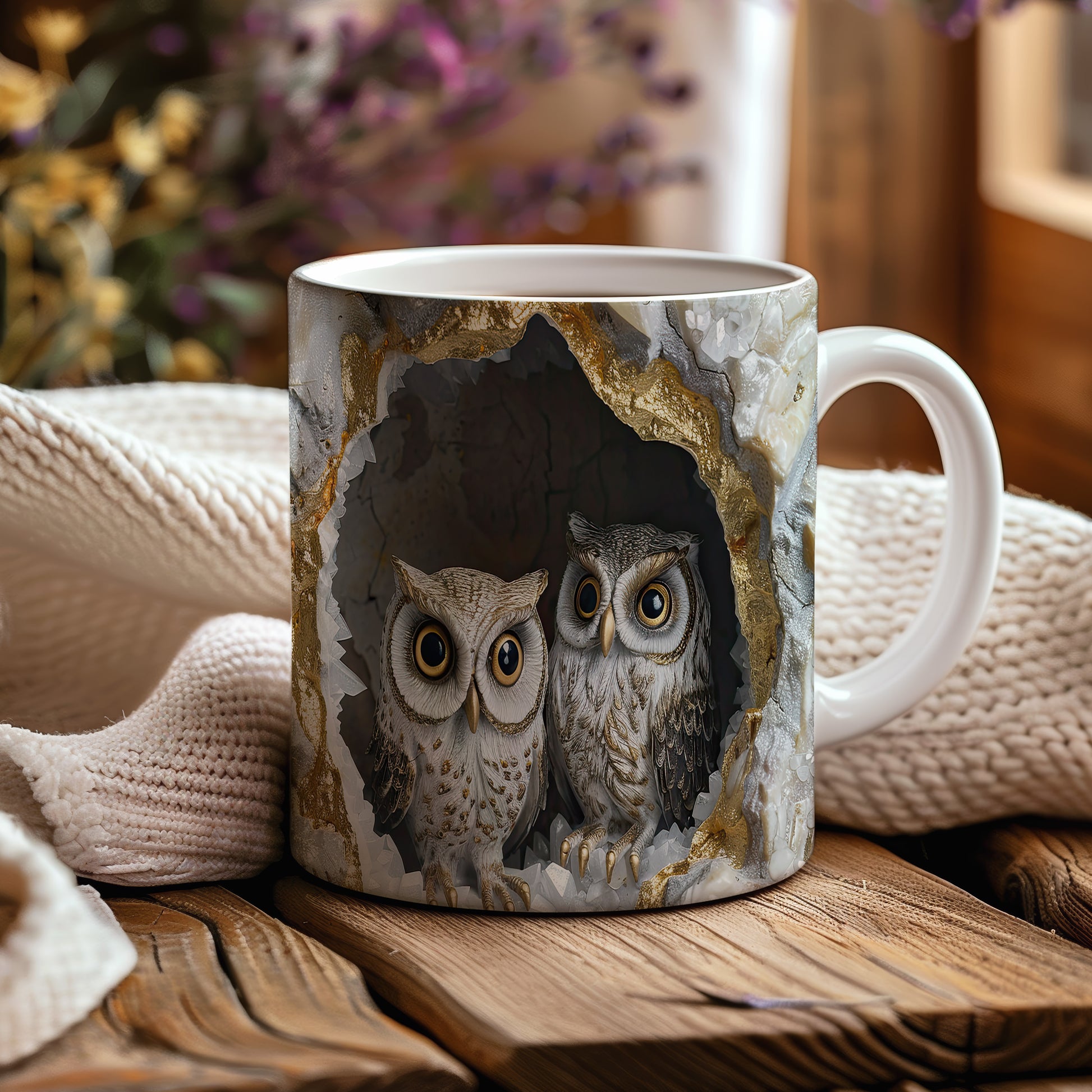 Hrnek s motivem dvou sov v jeskyni přináší přírodní atmosféru a realistické detaily. Tento hrnek je ideální pro milovníky ptáků a přírody, skvělý tip na dárek pro přátele nebo rodinu. Materiál: keramika. Objem: 330 ml. Vhodné do myčky i mikrovlnky. Užívejte si kávu nebo čaj s jedinečným designem, který oživí každý den.
