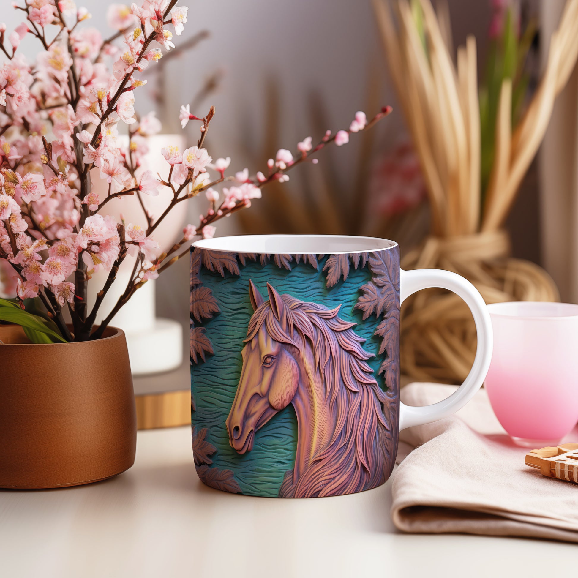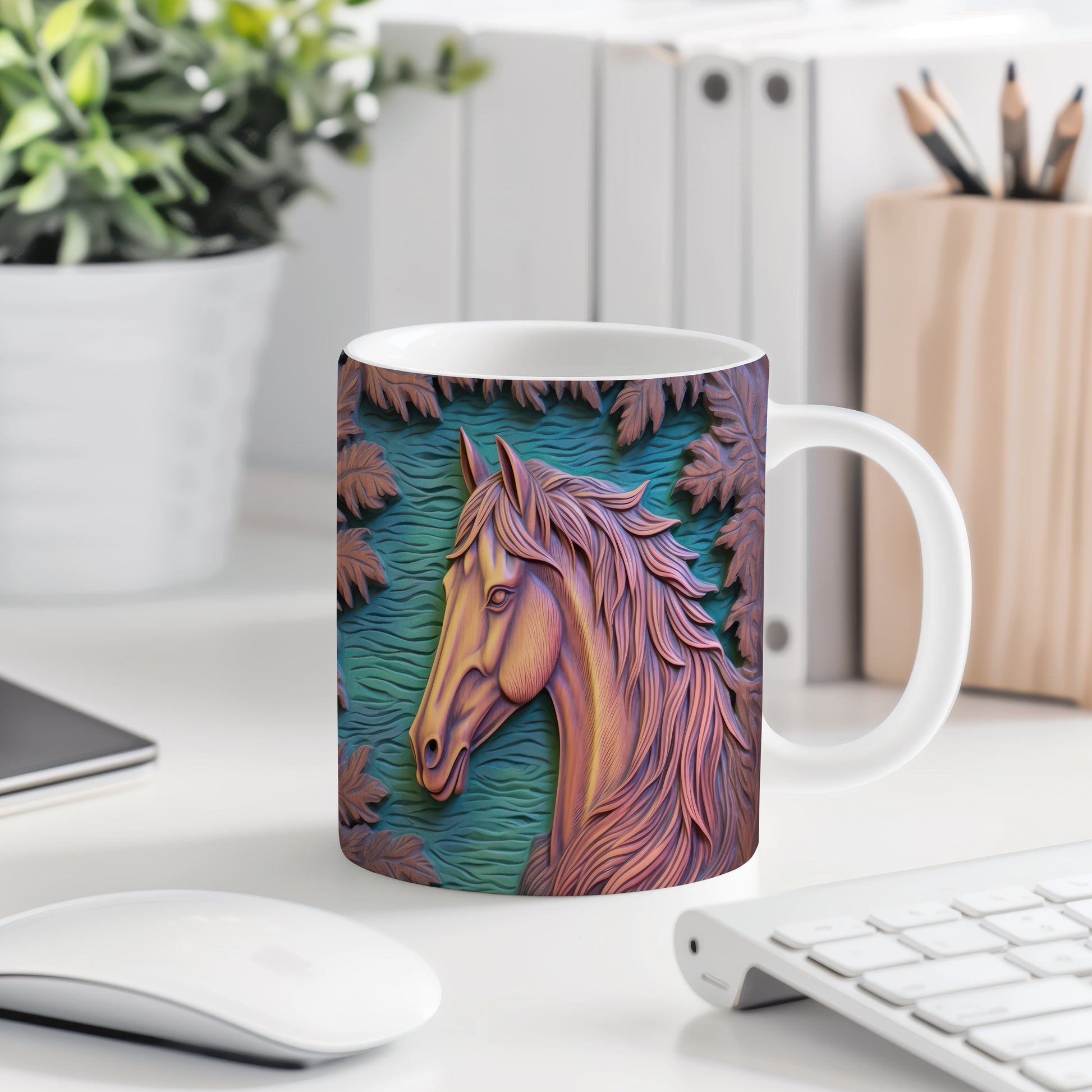 Tento keramický hrnek s motivem koně přináší eleganci a krásu do každodenního pití. Je ideální pro milovníky koní a přírody, skvělý tip na dárek pro vaše blízké. Materiál: keramika. Objem: 330 ml. Vhodné do myčky i mikrovlnky. Užijte si svůj oblíbený nápoj s tímto stylovým hrnkem.