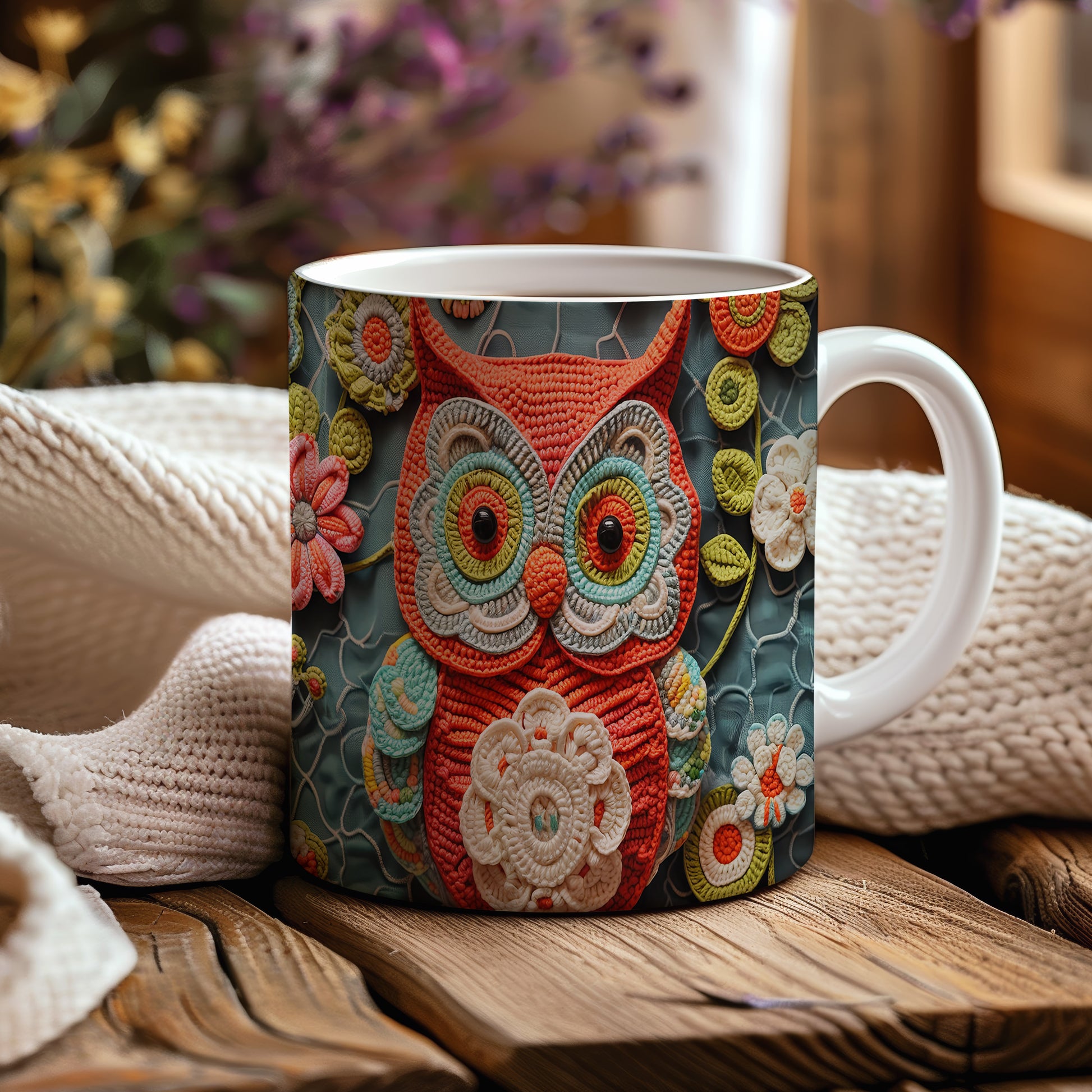 Tento hrnek s vyšívanou sovou a květinami je stylovým a originálním kouskem, který potěší každého milovníka přírody. Je ideální jako dárek pro přátele nebo rodinu, kteří ocení jedinečný design. Materiál: keramika. Objem: 330 ml. Vhodné do myčky i mikrovlnky. Používáním tohoto hrnku si užijete nejen skvělý vzhled, ale i praktické vlastnosti pro každodenní pití.