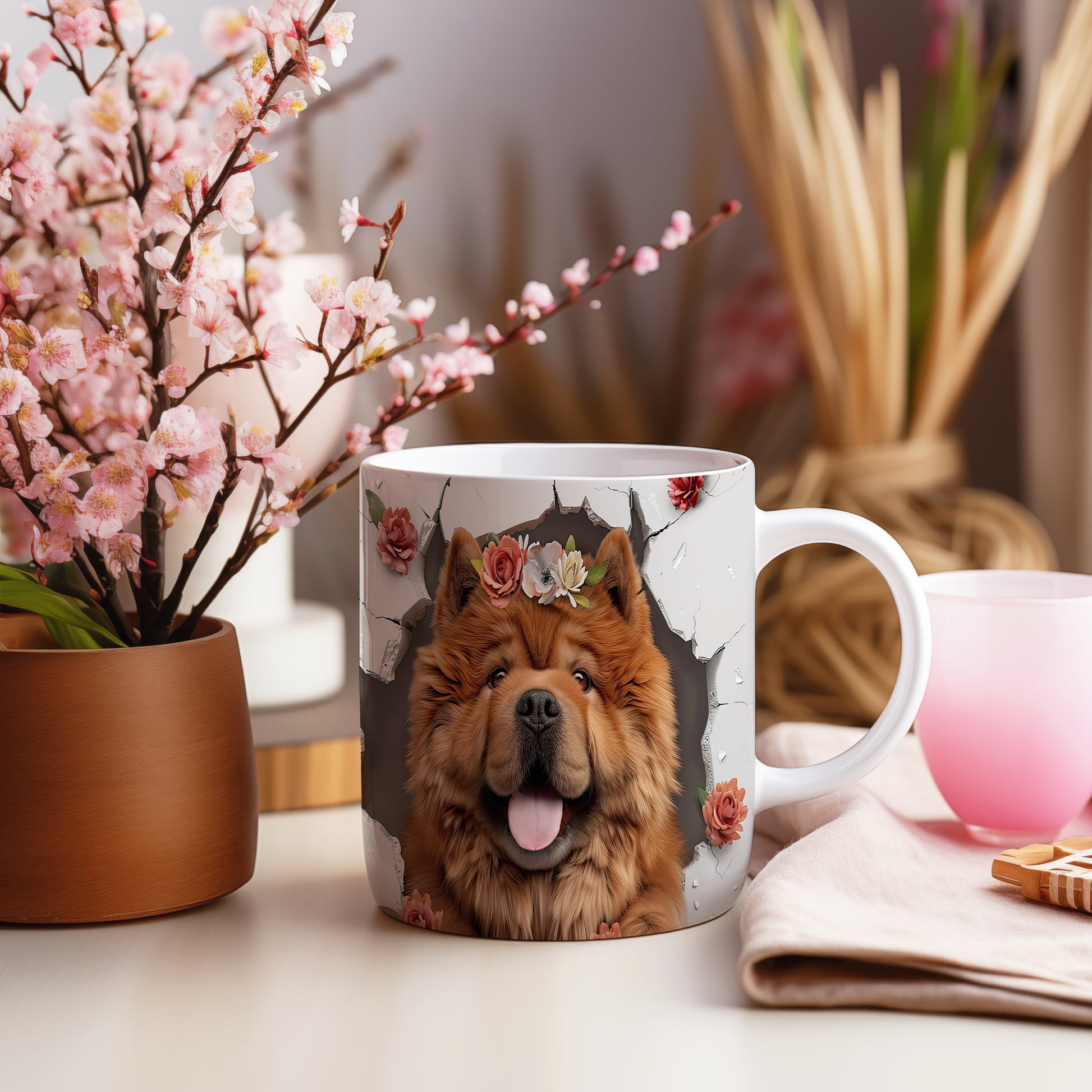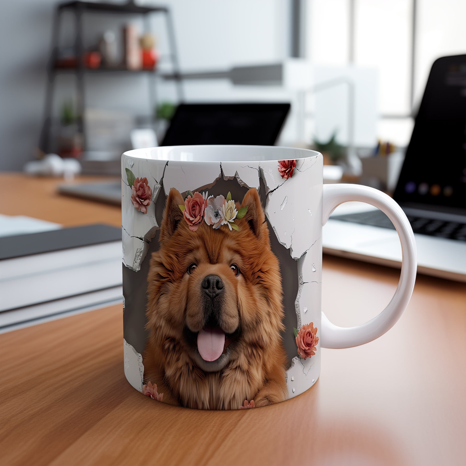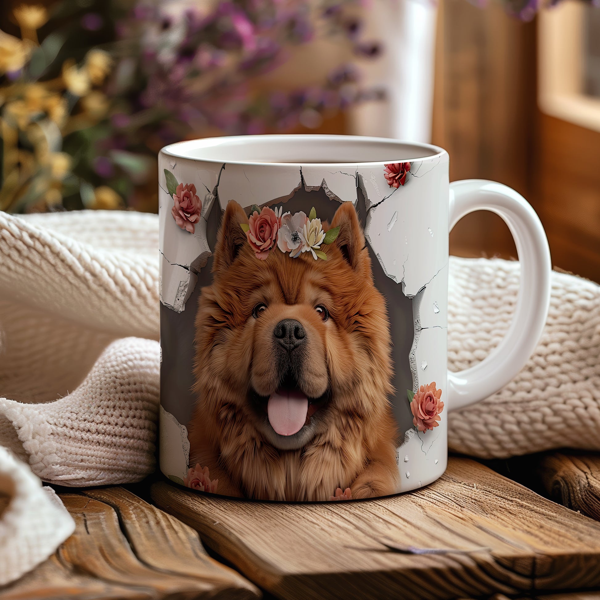 Hrnek se čau-čau psem a květinovým 3D efektem
