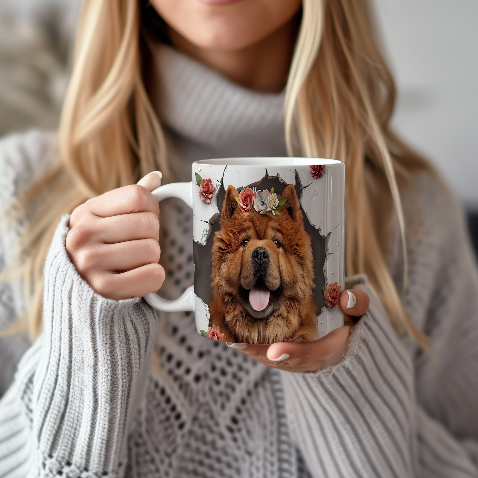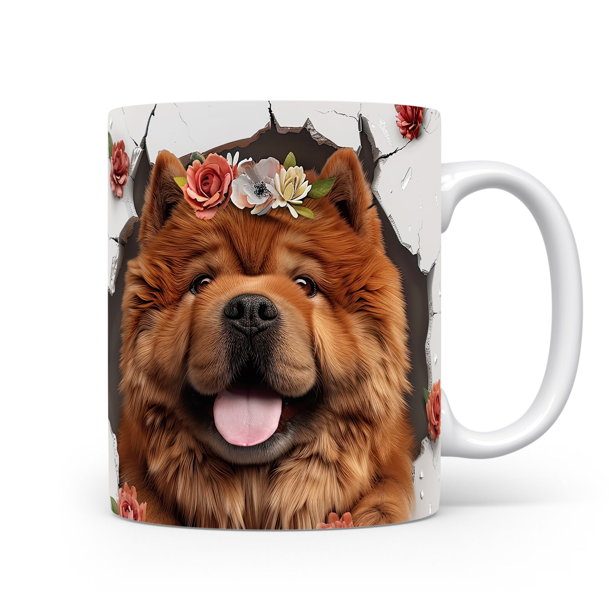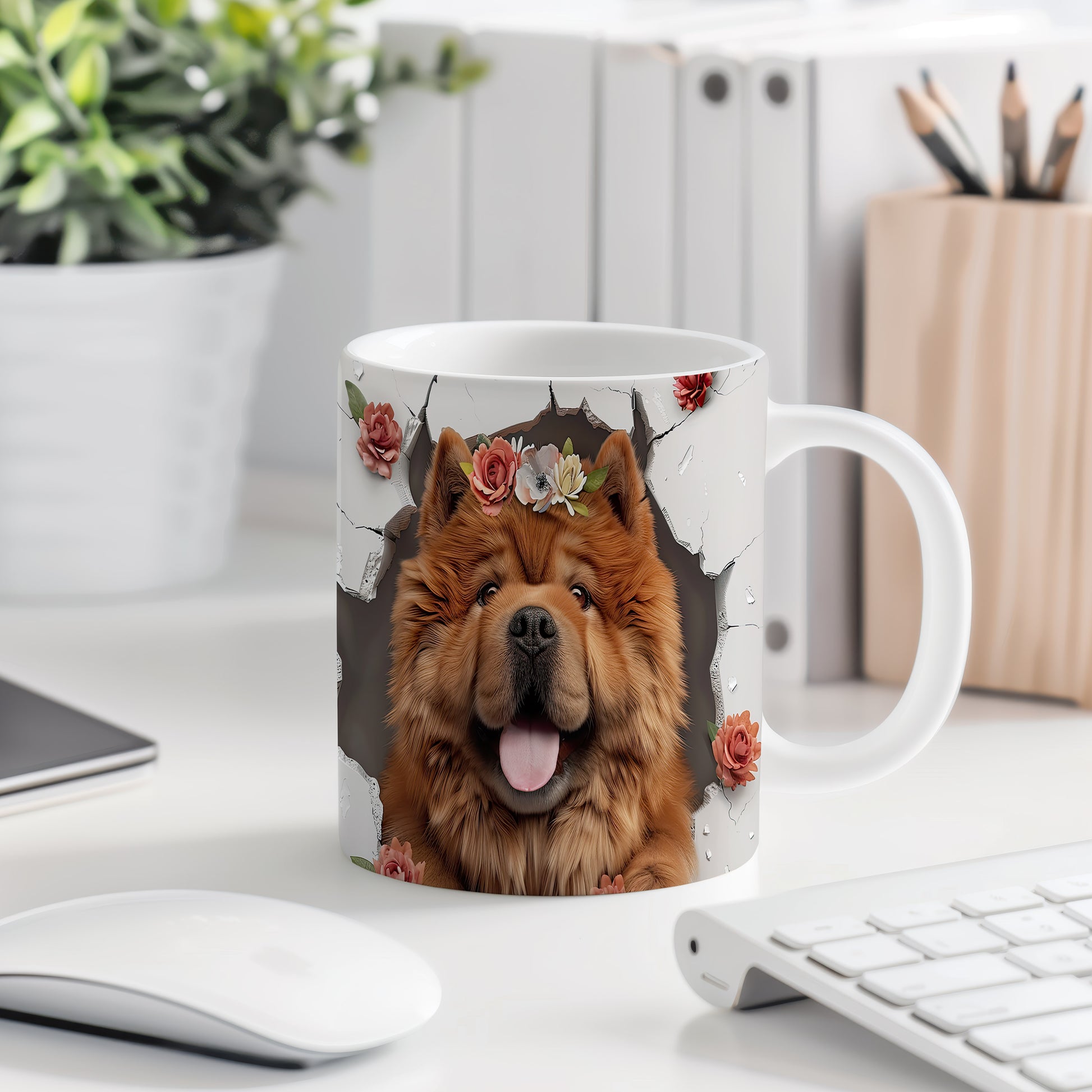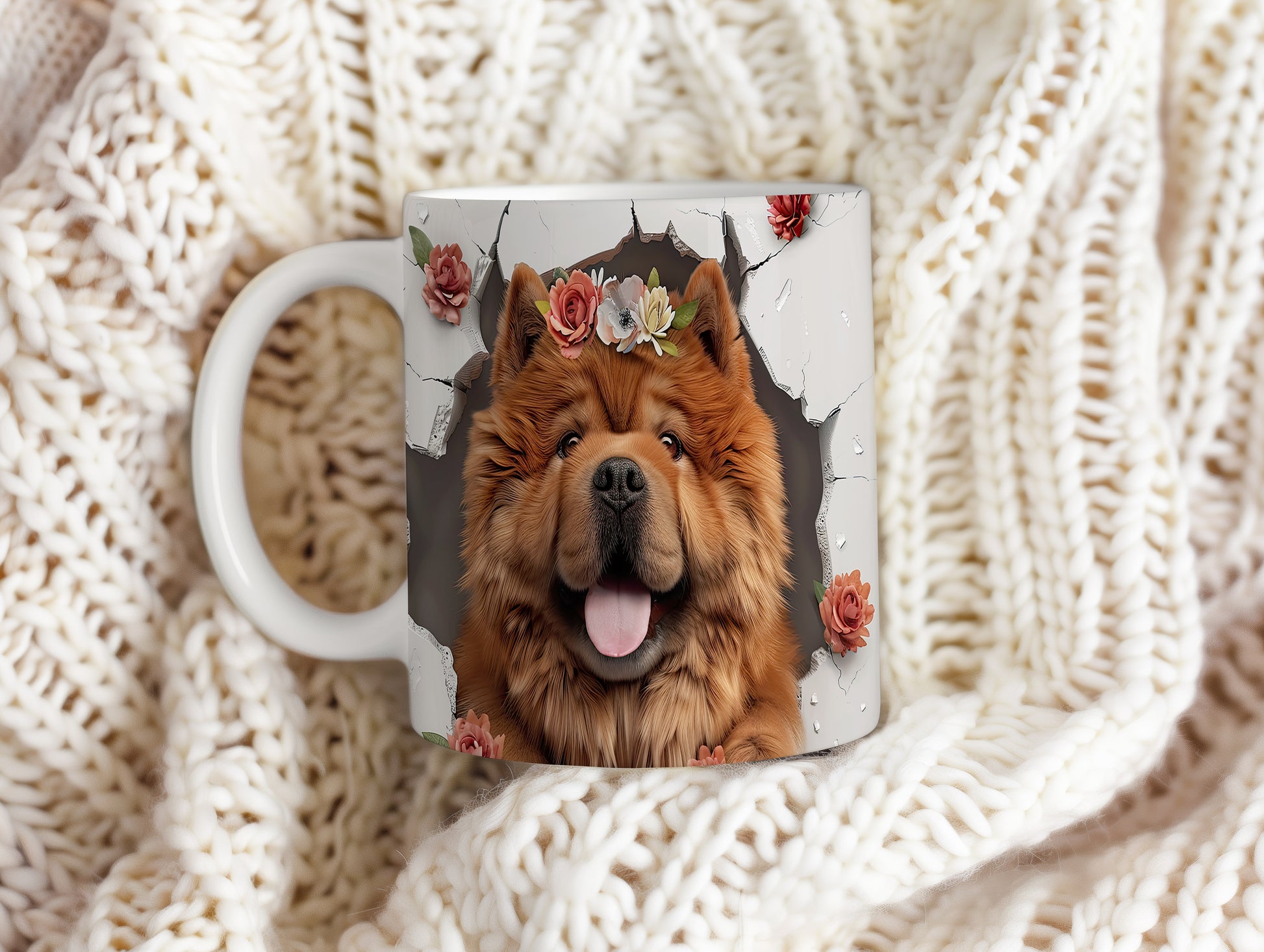 Hrnek se čau-čau psem a květinovým 3D efektem