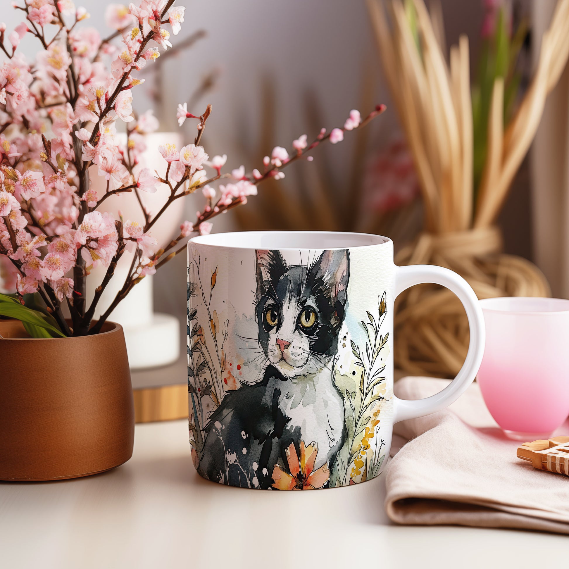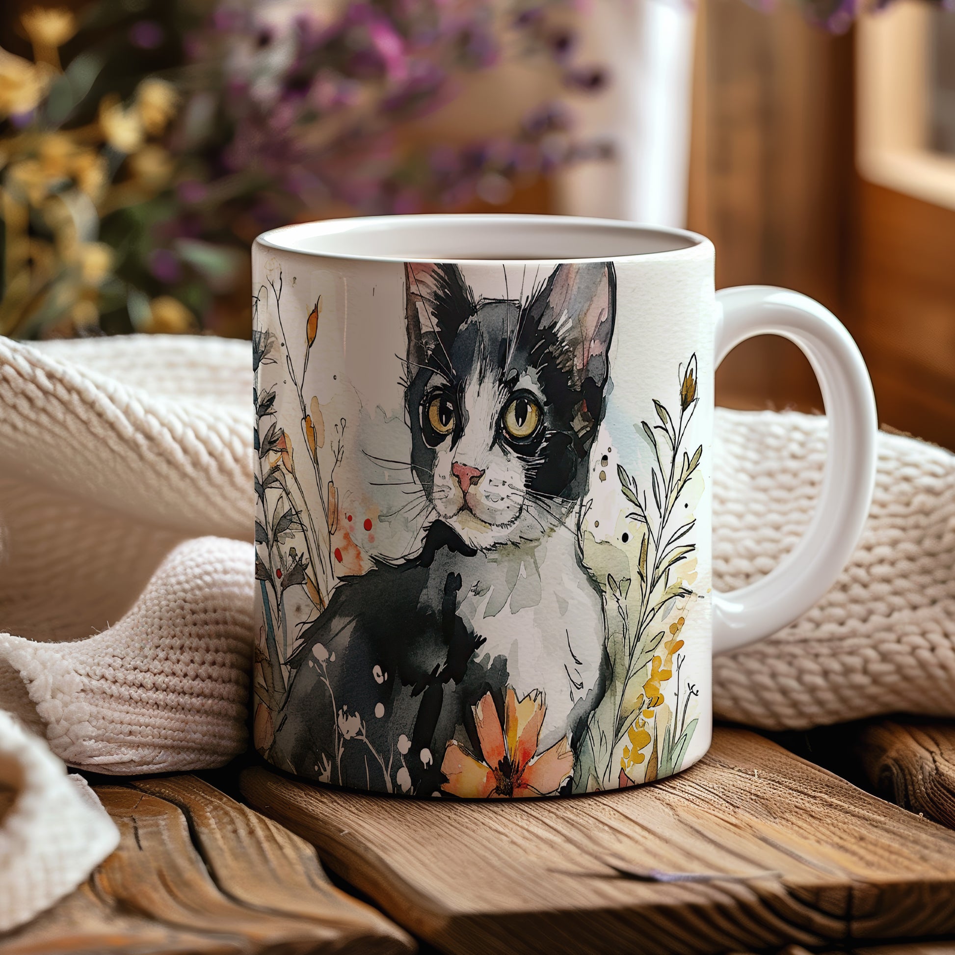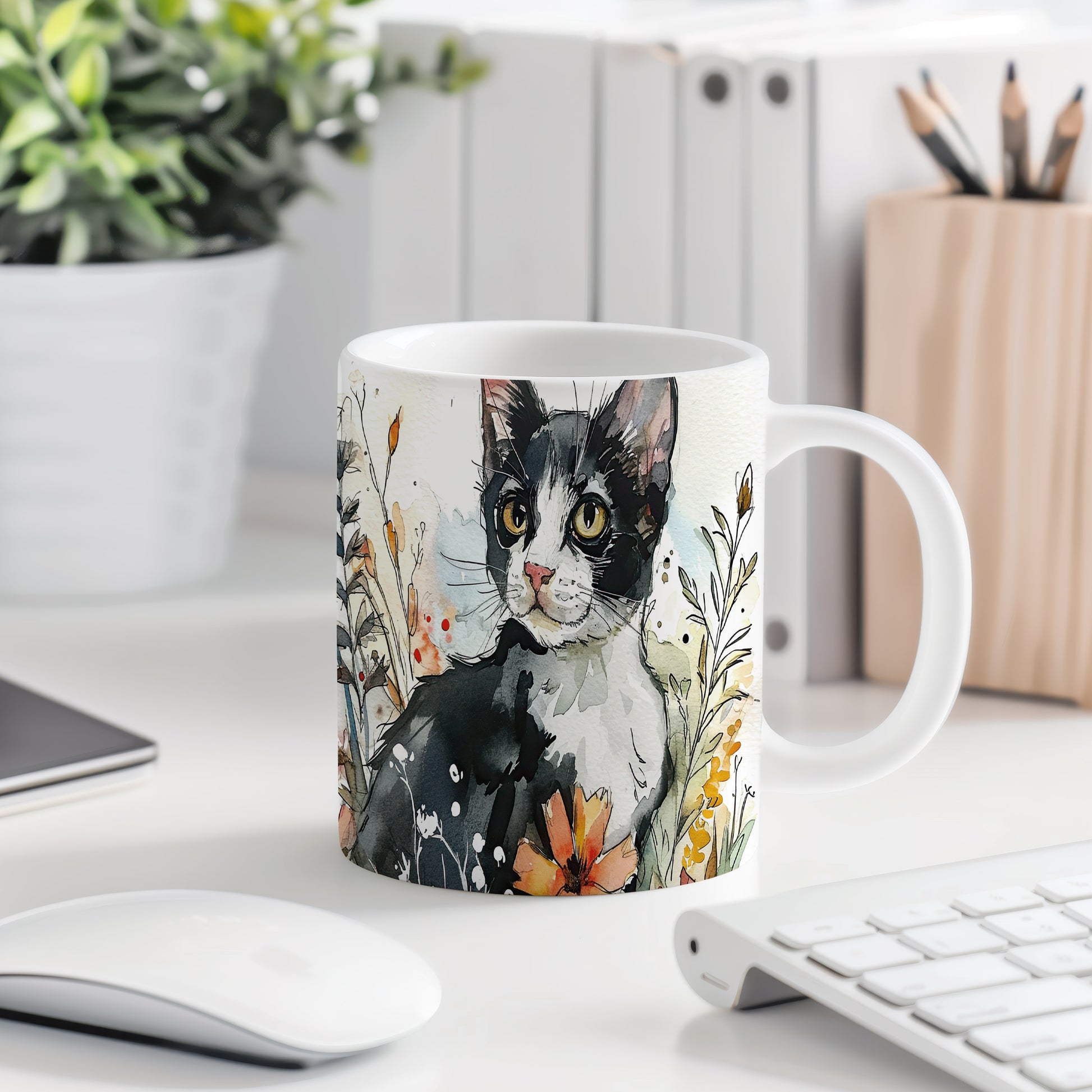 Tento hrnek z keramického materiálu zobrazuje detailní ilustraci černobílé kočky. Je ideální pro milovníky koček a skvělým dárkem pro přátele či rodinu. Materiál: keramika. Objem: 330 ml. Vhodné do myčky i mikrovlnky. Užívejte si svůj oblíbený nápoj s tímto stylovým hrnkem.