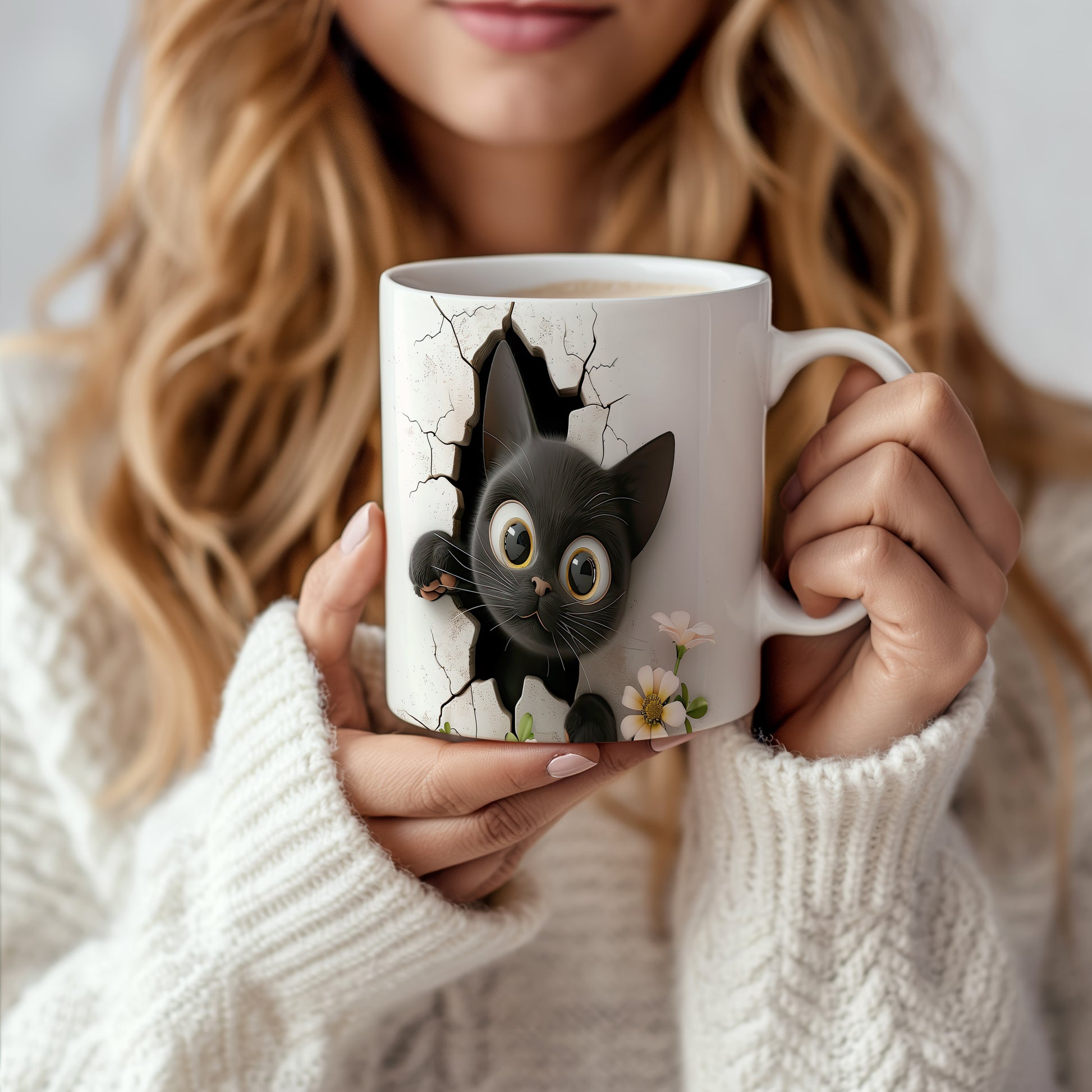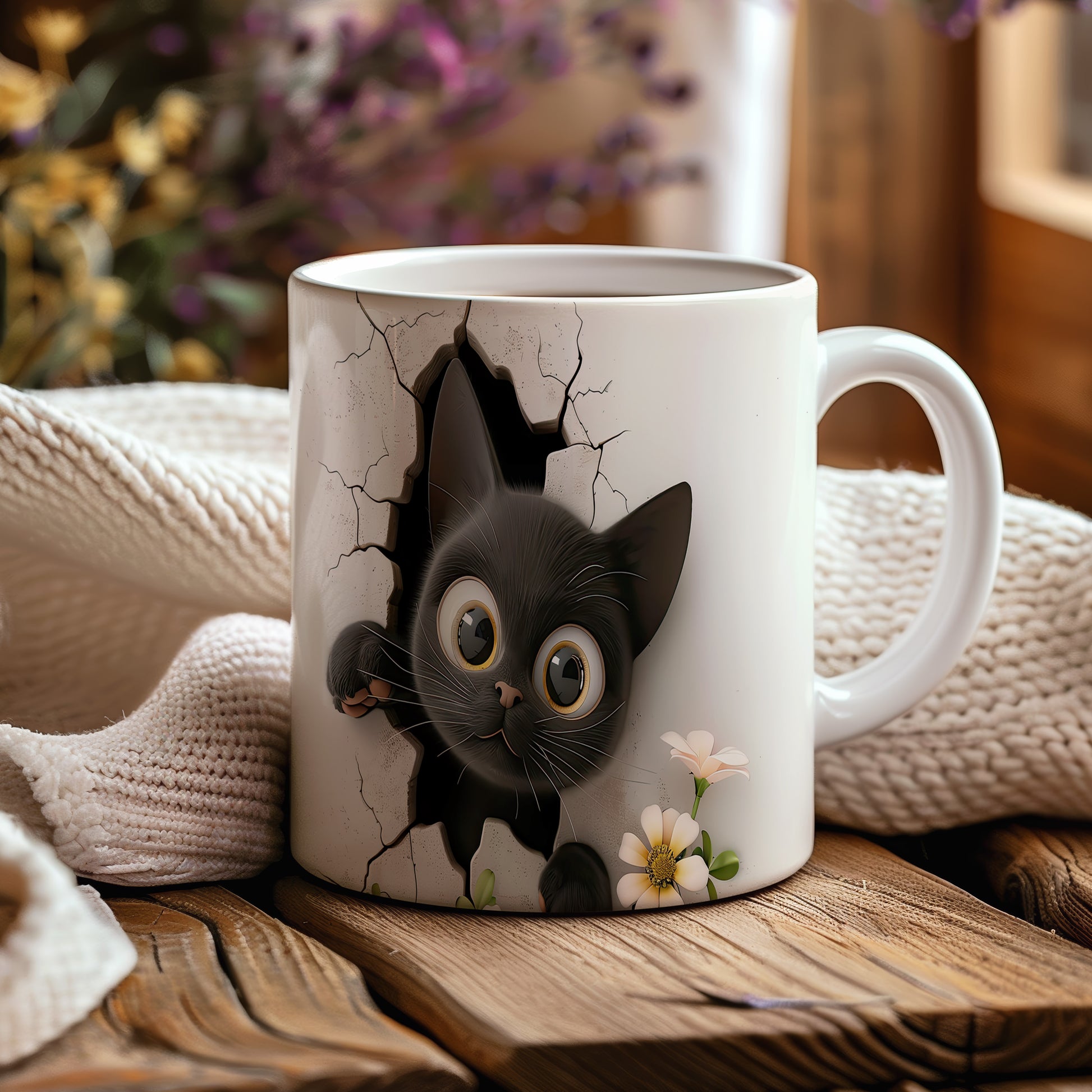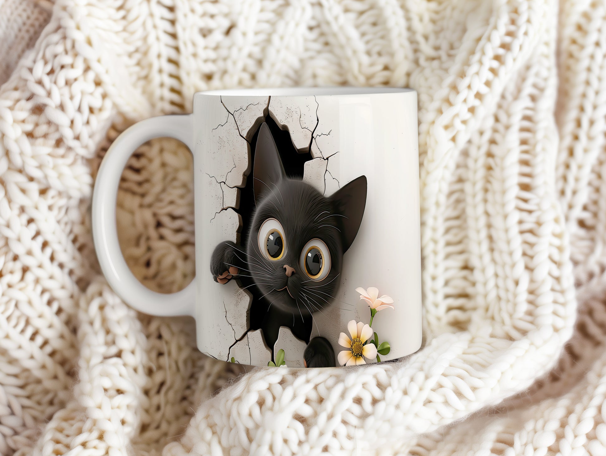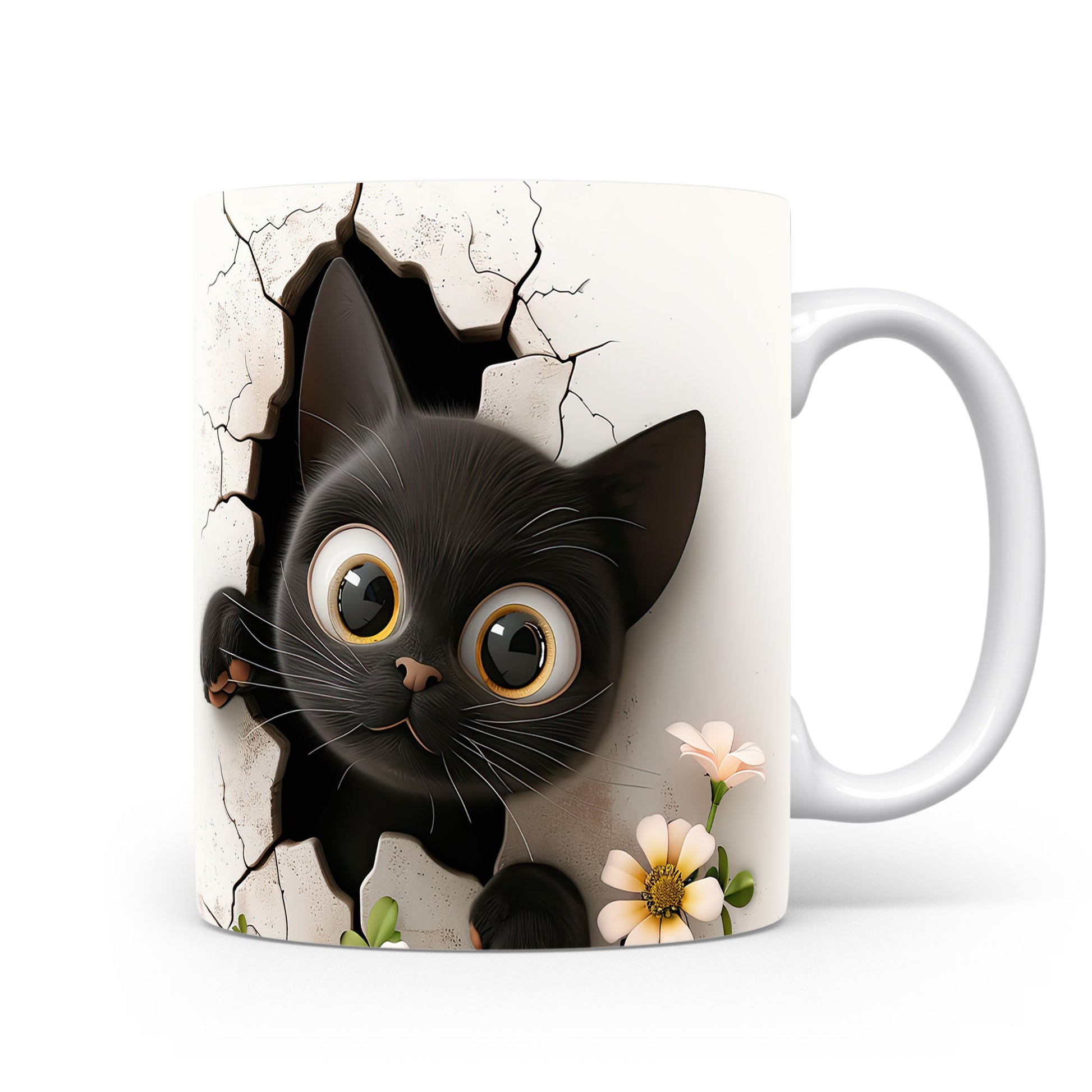 Hrnek s motivem černé kočky, která má velké oči a vykukuje z 3D efektu. Tento hrnek je ideální pro milovníky koček a skvělým dárkem pro přátele či rodinu. Materiál: keramika. Objem: 330 ml. Vhodné do myčky i mikrovlnky. Používání tohoto hrnku přináší radost a zábavu do každodenního pití.