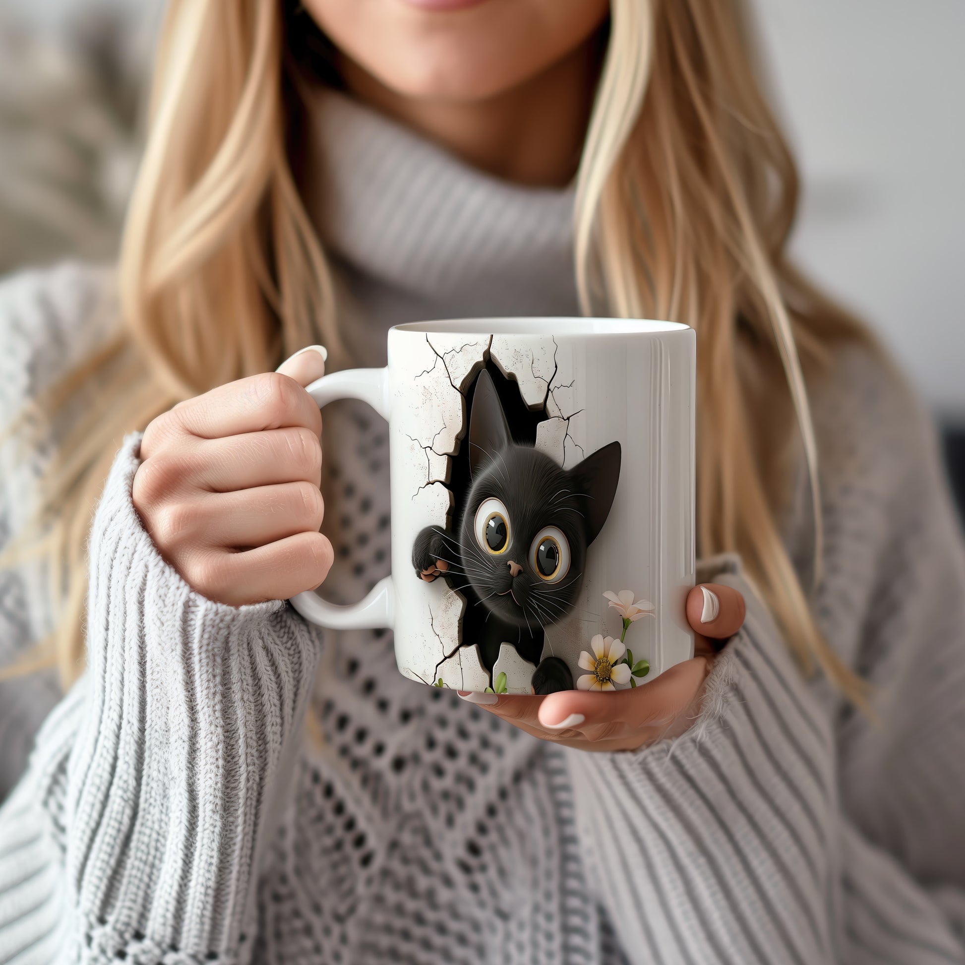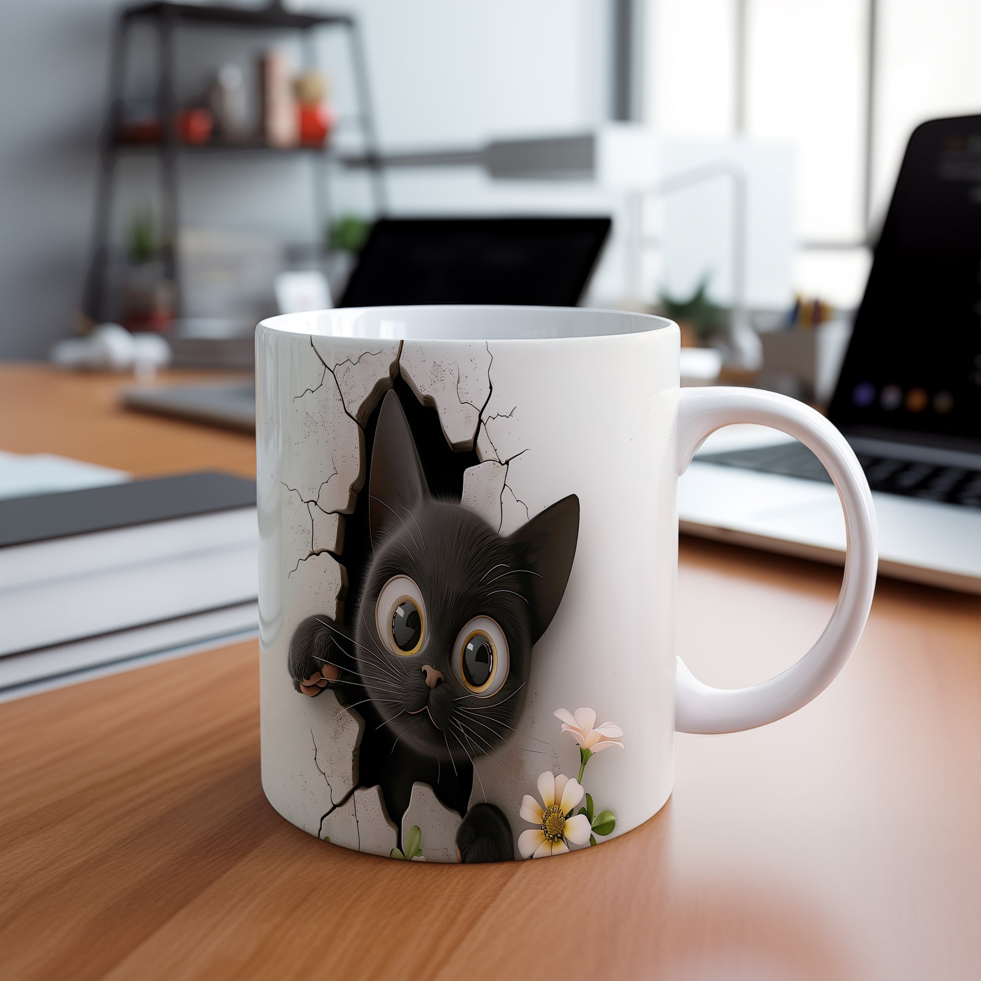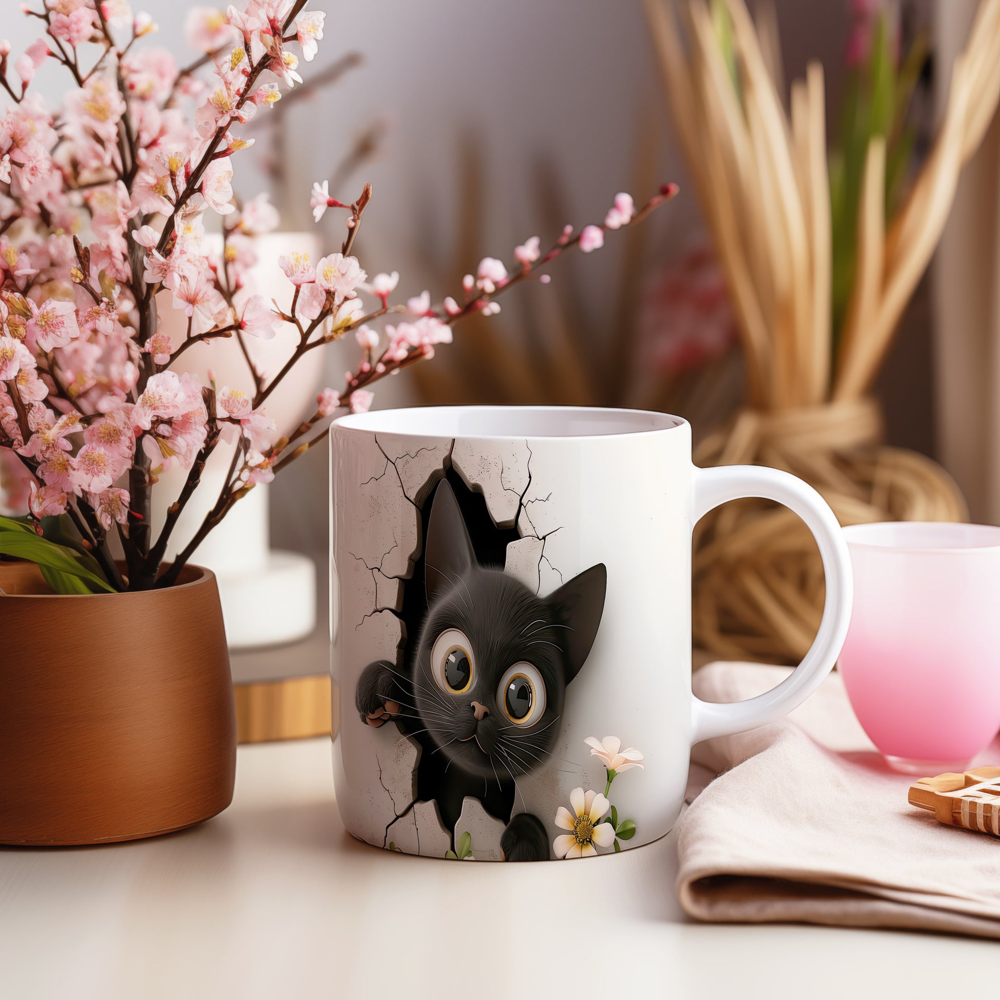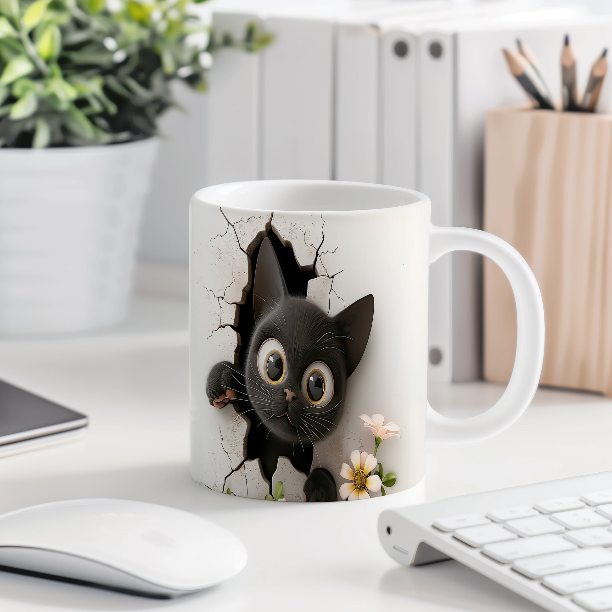 Hrnek s motivem černé kočky, která má velké oči a vykukuje z 3D efektu. Tento hrnek je ideální pro milovníky koček a skvělým dárkem pro přátele či rodinu. Materiál: keramika. Objem: 330 ml. Vhodné do myčky i mikrovlnky. Používání tohoto hrnku přináší radost a zábavu do každodenního pití.