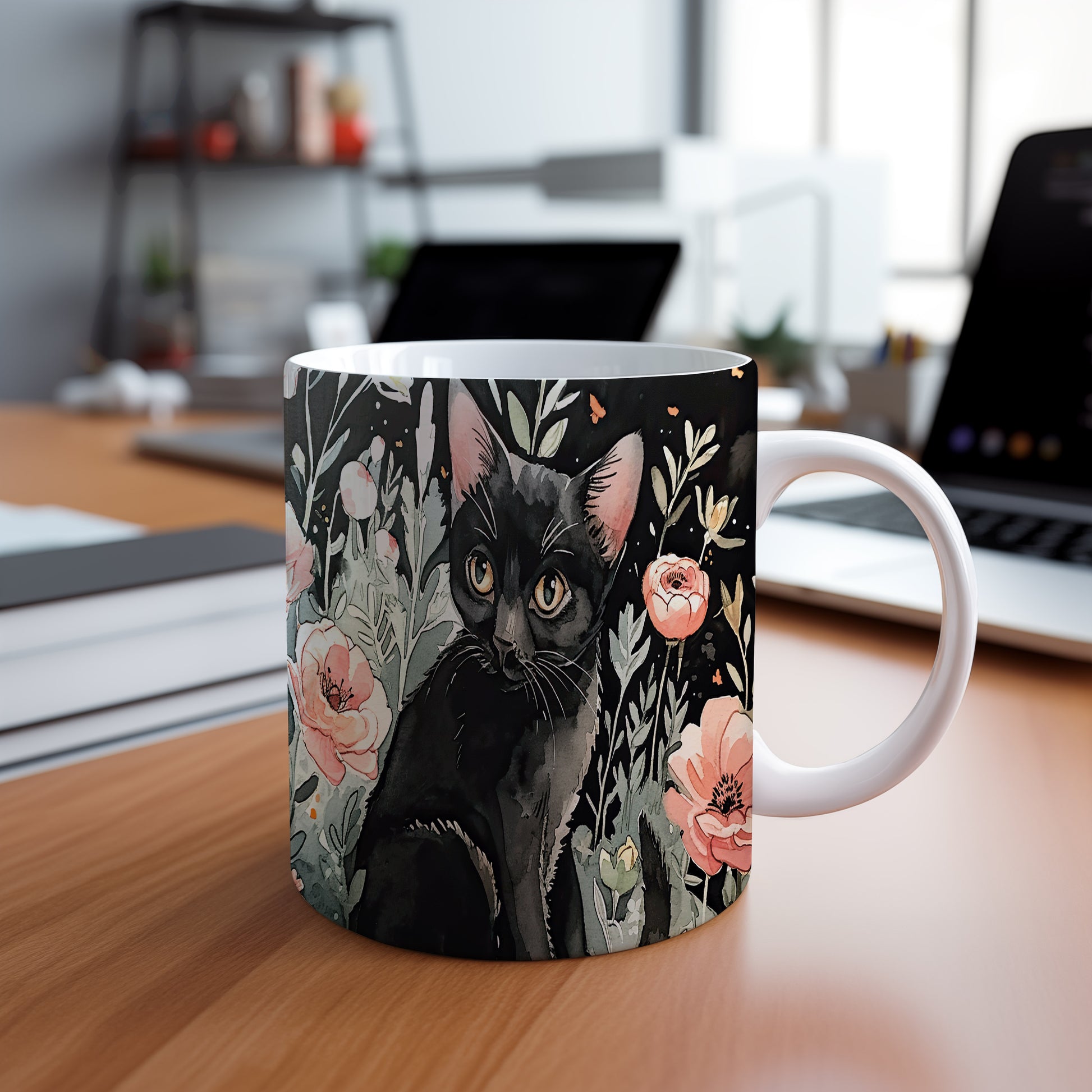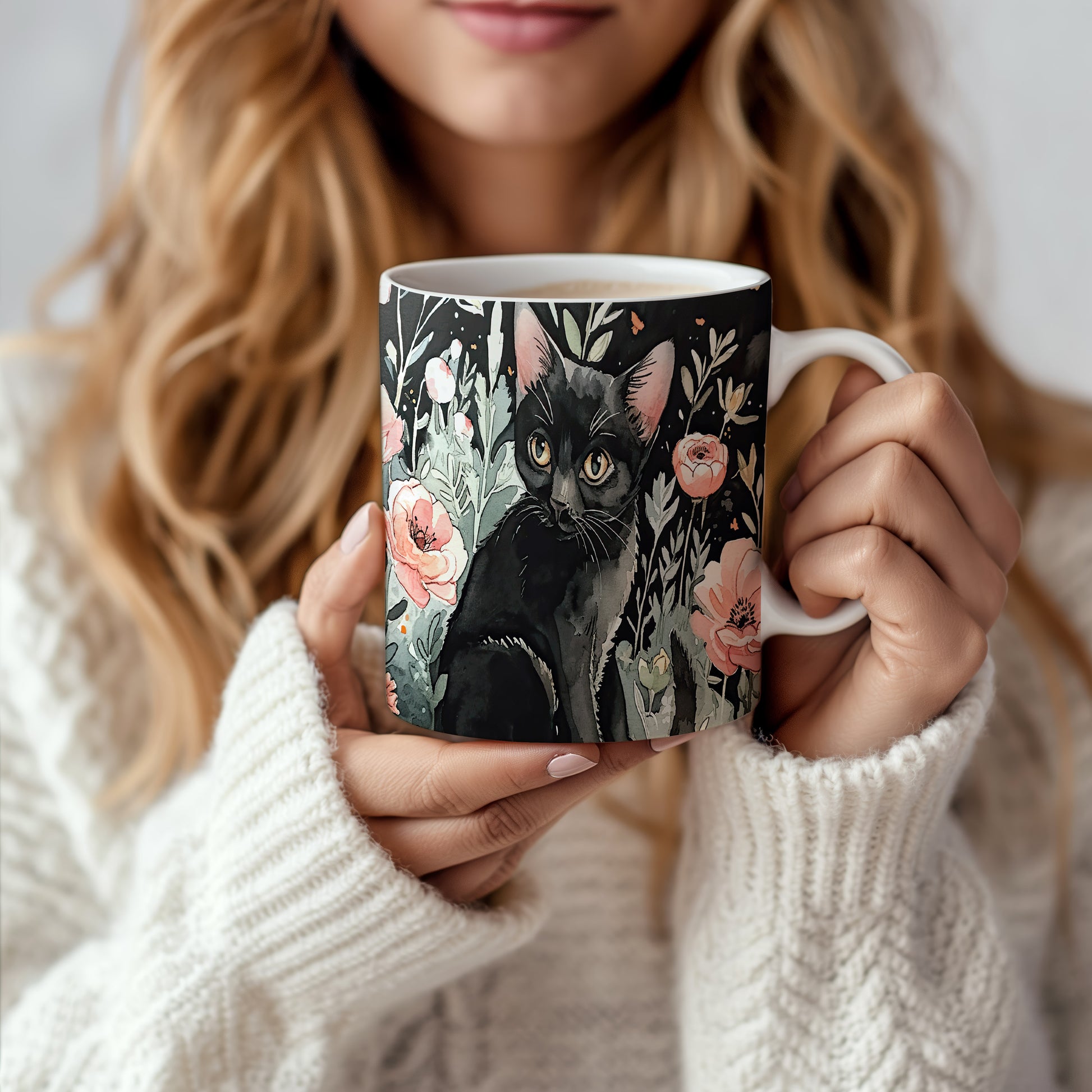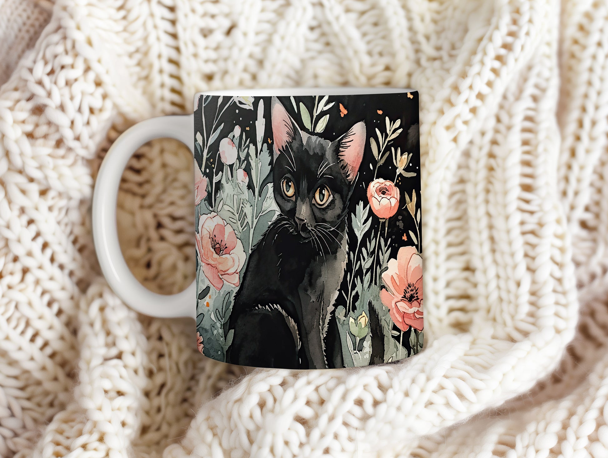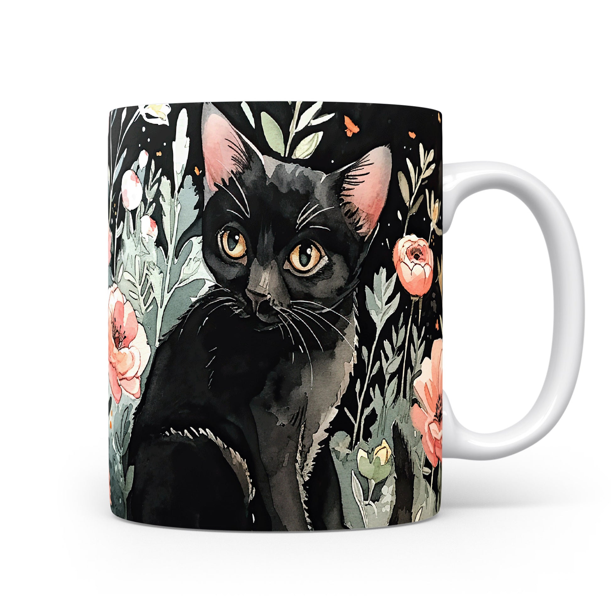 Tento hrnek zobrazuje černou kočku obklopenou krásnými květinami. Je ideální pro milovníky koček a přírody, skvělý tip na dárek pro přátele nebo rodinu. Materiál: keramika. Objem: 330 ml. Vhodné do myčky i mikrovlnky. Používání tohoto hrnku přináší radost a oživí každé pití.