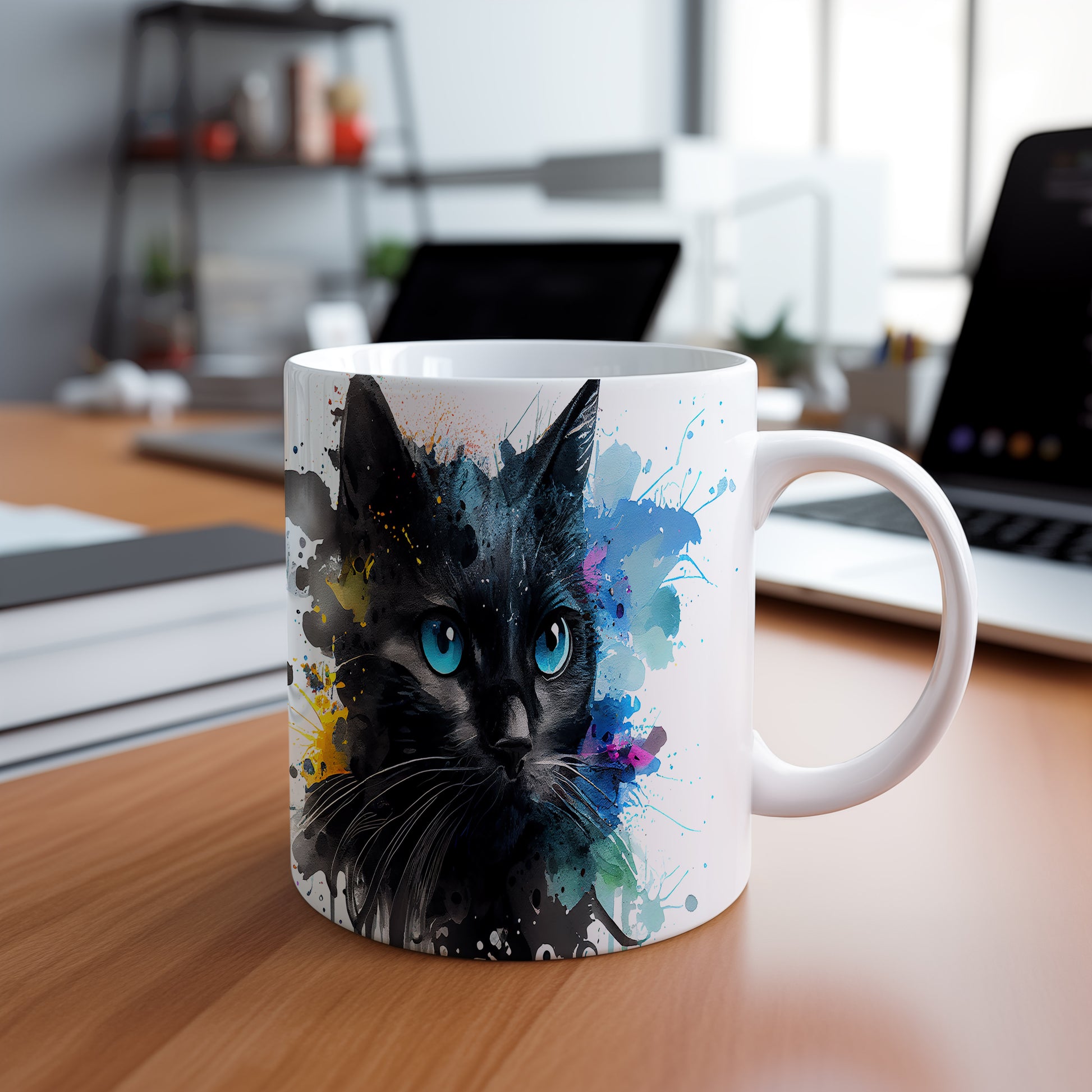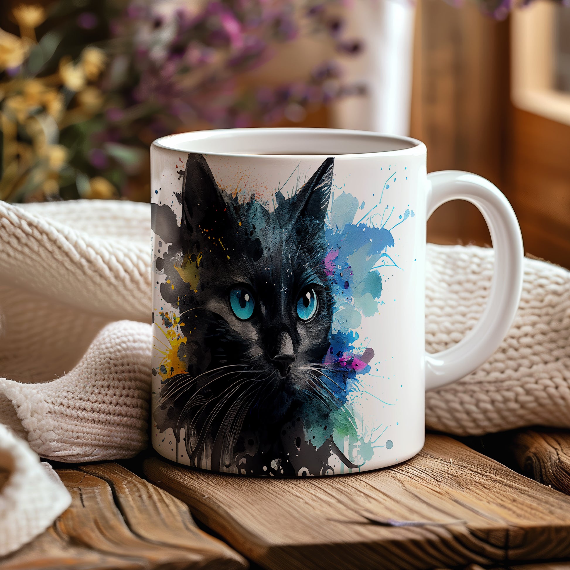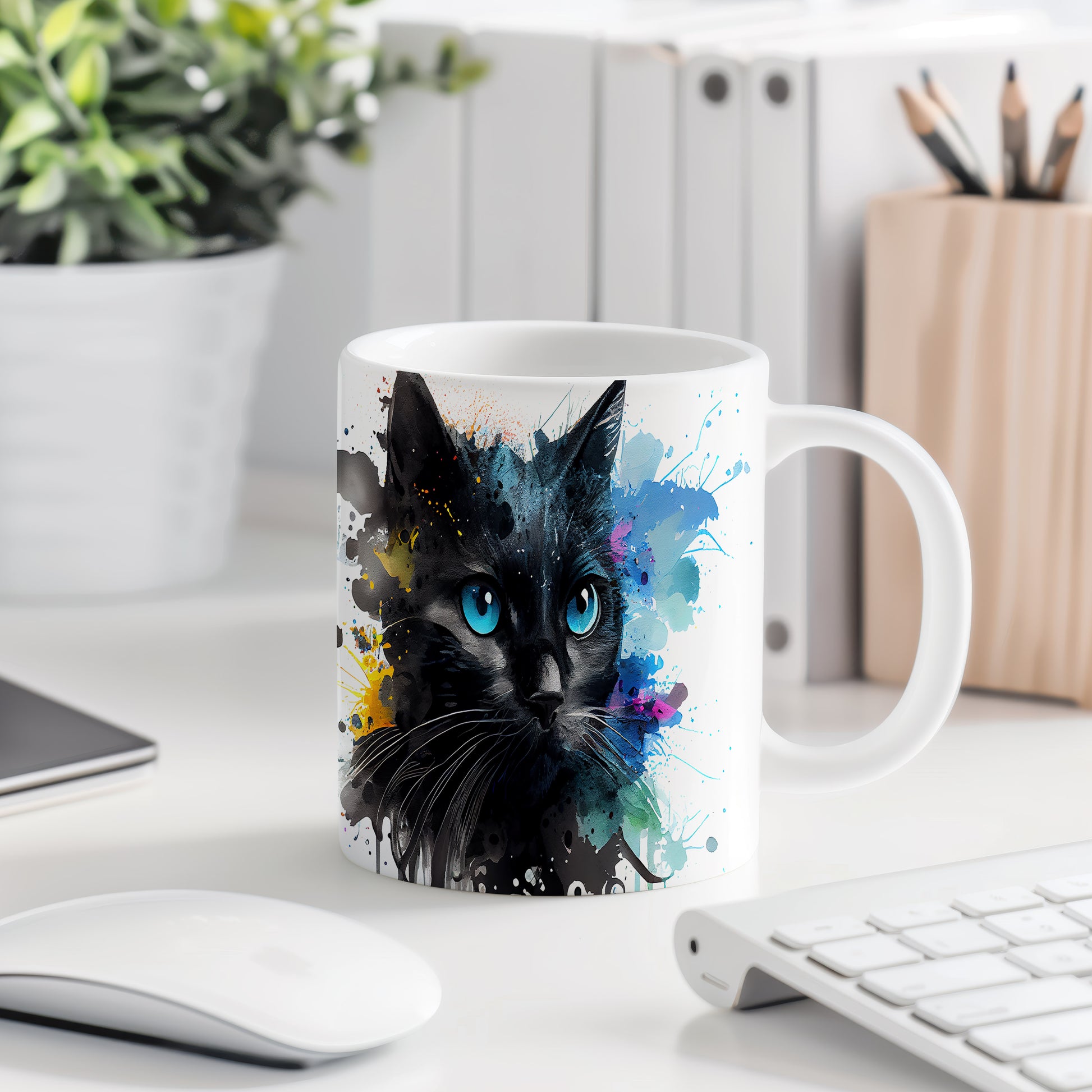 Stylový hrnek s realistickým portrétem černé kočky a jasně modrýma očima. Tento originální kousek potěší každého milovníka koček a skvěle se hodí jako dárek pro přátele či rodinu. Materiál: keramika. Objem: 330 ml. Vhodné do myčky i mikrovlnky. Používáním tohoto hrnku si užijete nejen skvělý design, ale i praktické vlastnosti.