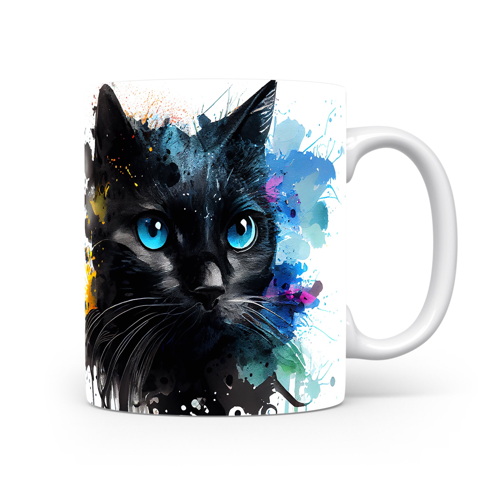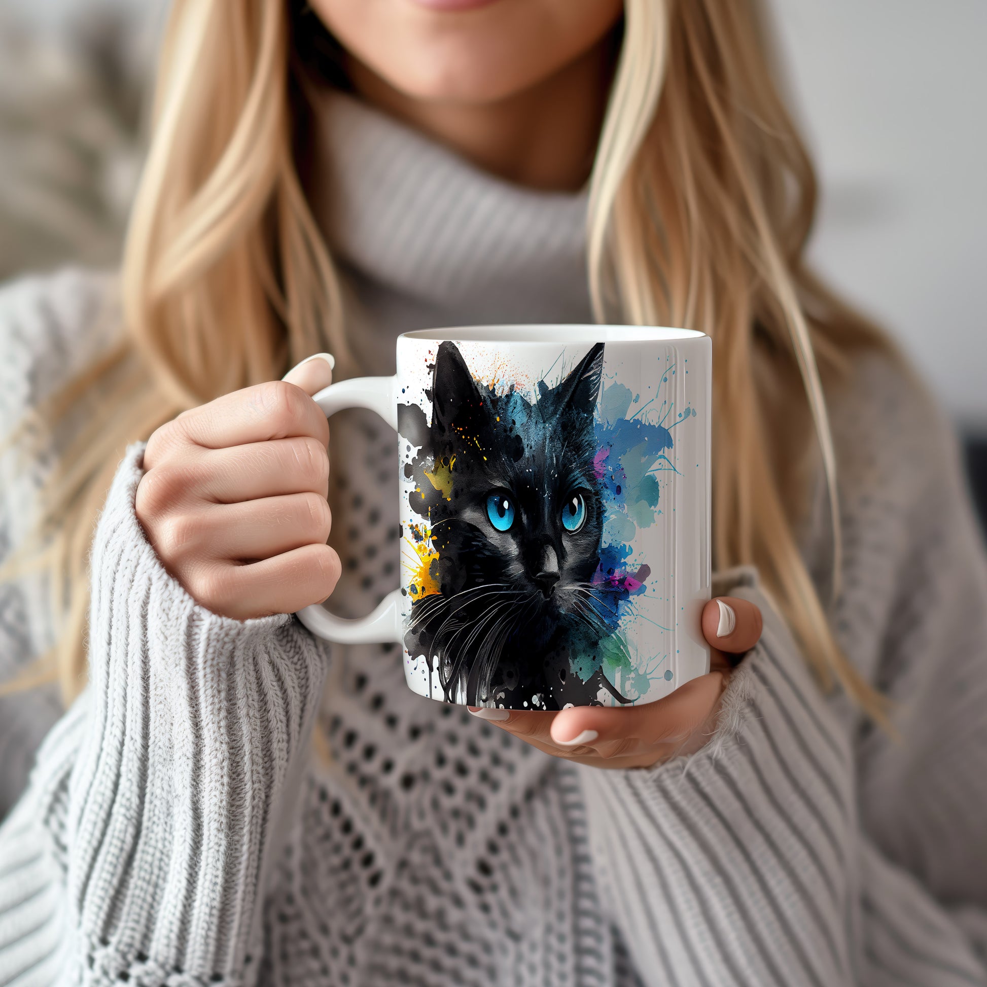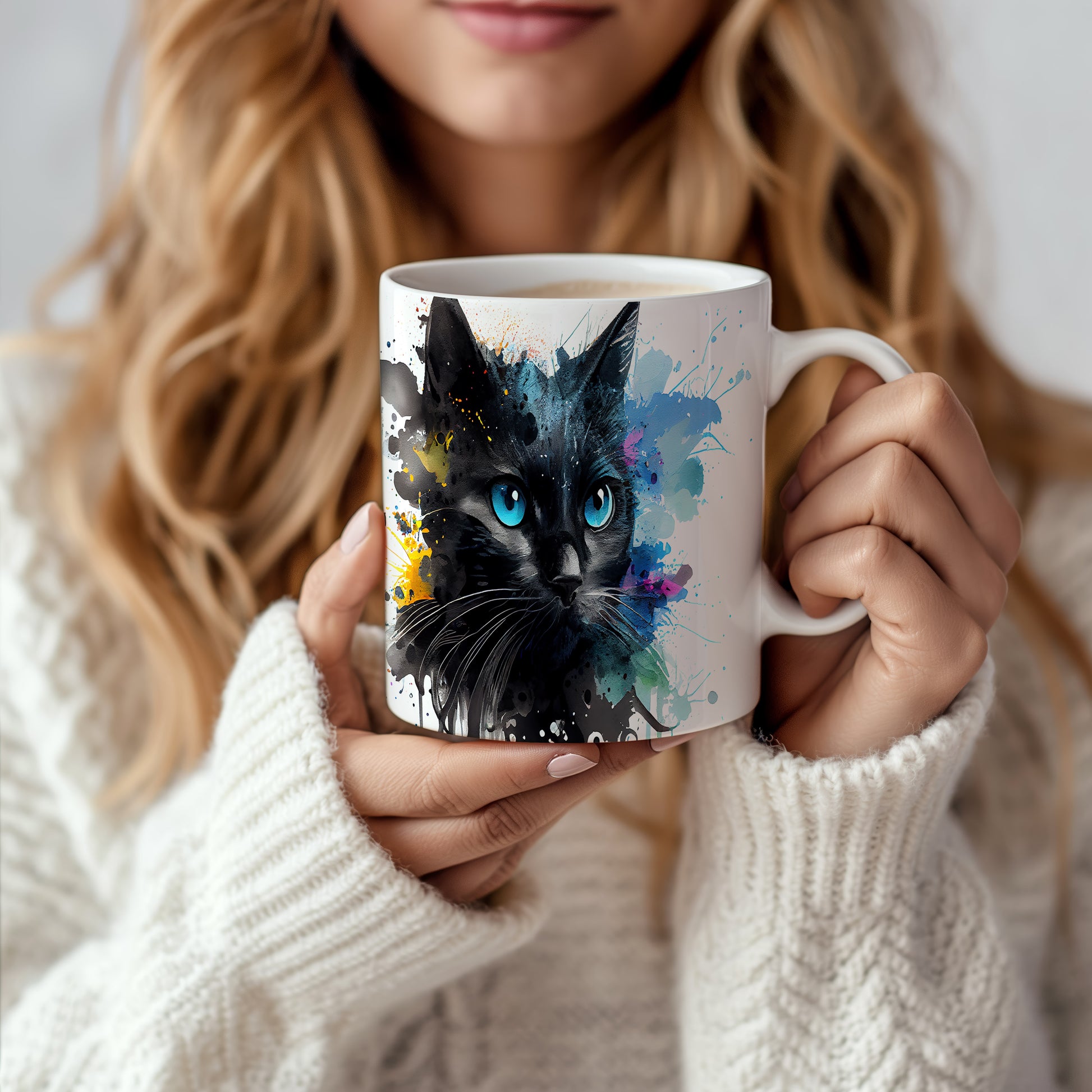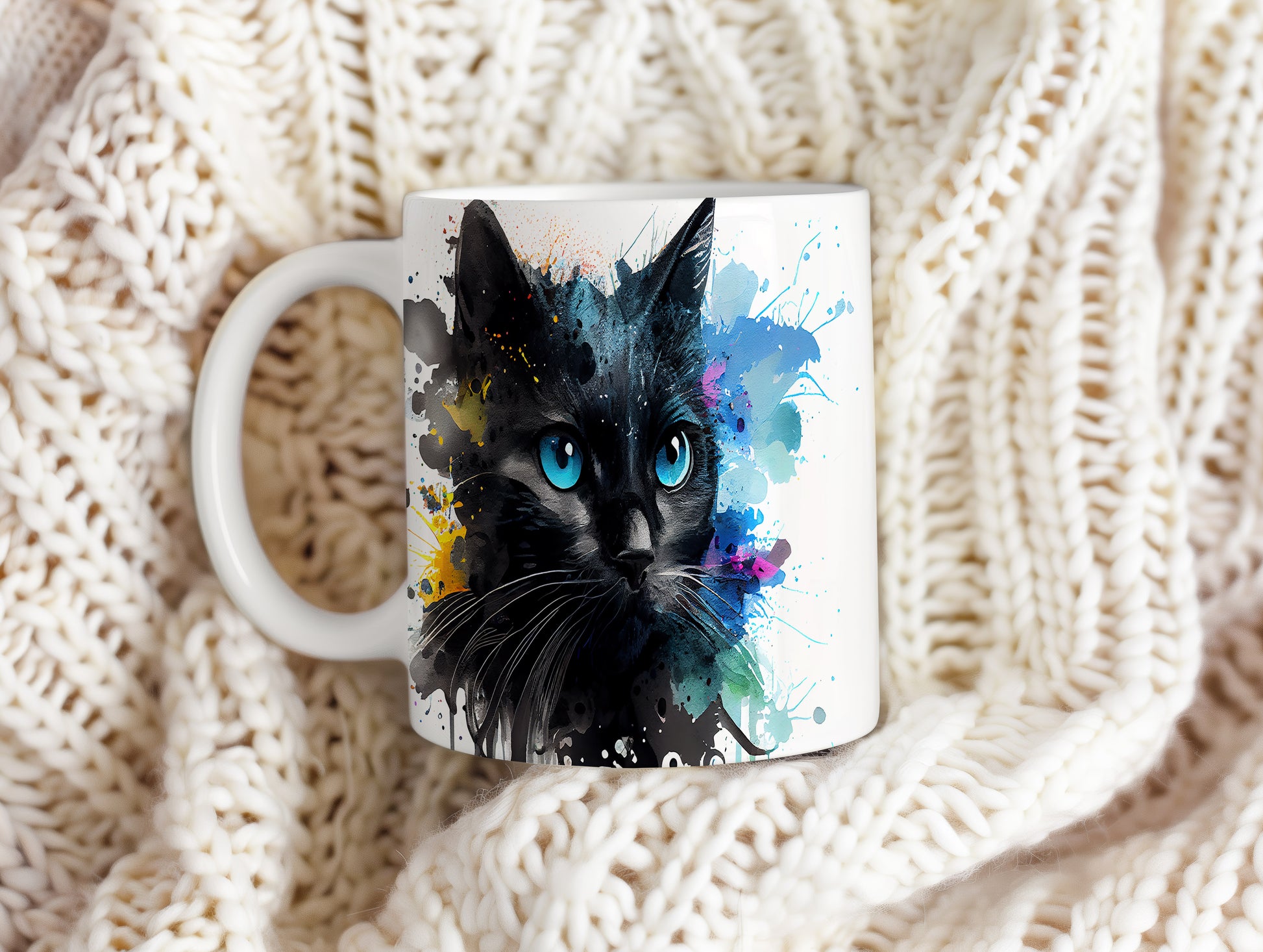 Stylový hrnek s realistickým portrétem černé kočky a jasně modrýma očima. Tento originální kousek potěší každého milovníka koček a skvěle se hodí jako dárek pro přátele či rodinu. Materiál: keramika. Objem: 330 ml. Vhodné do myčky i mikrovlnky. Používáním tohoto hrnku si užijete nejen skvělý design, ale i praktické vlastnosti.