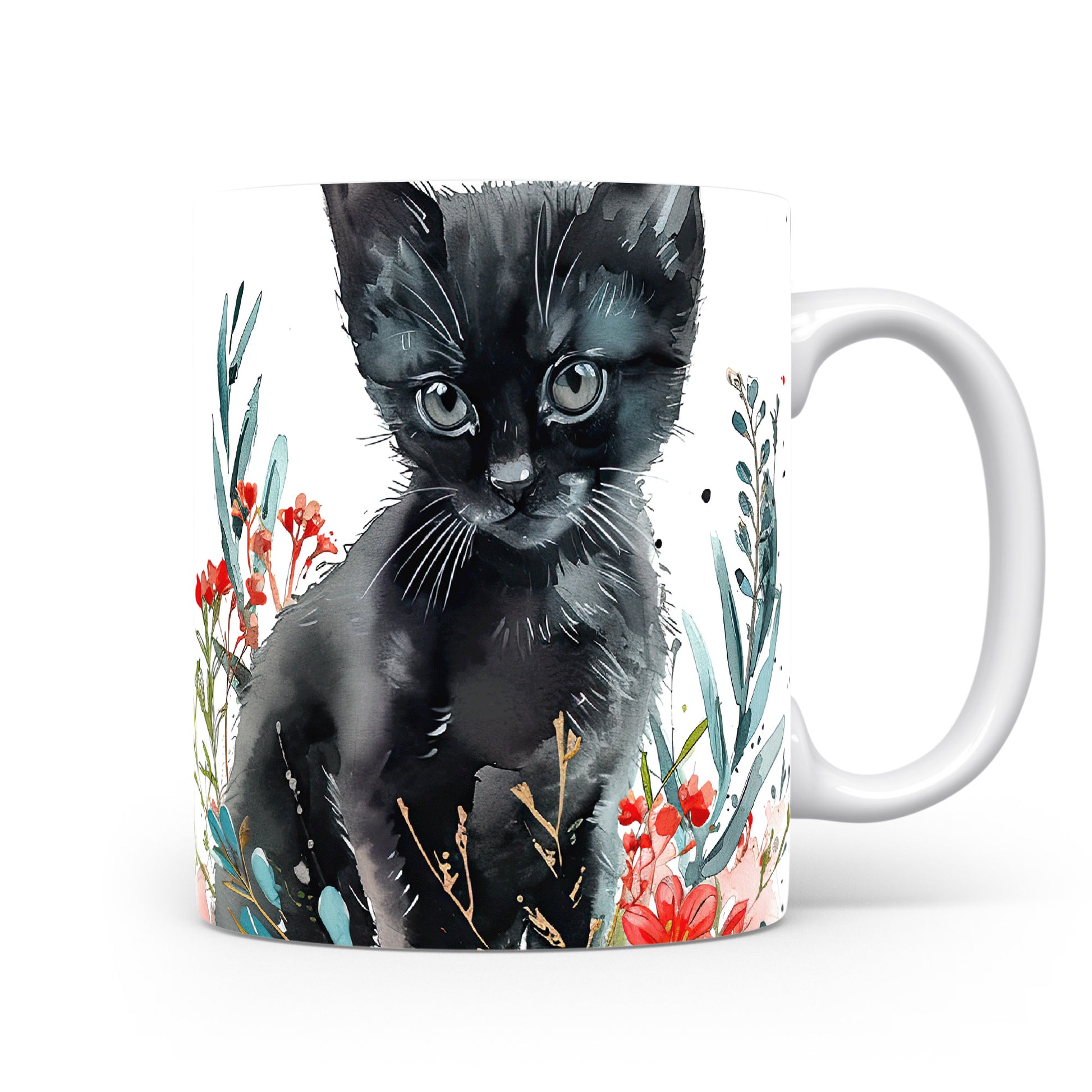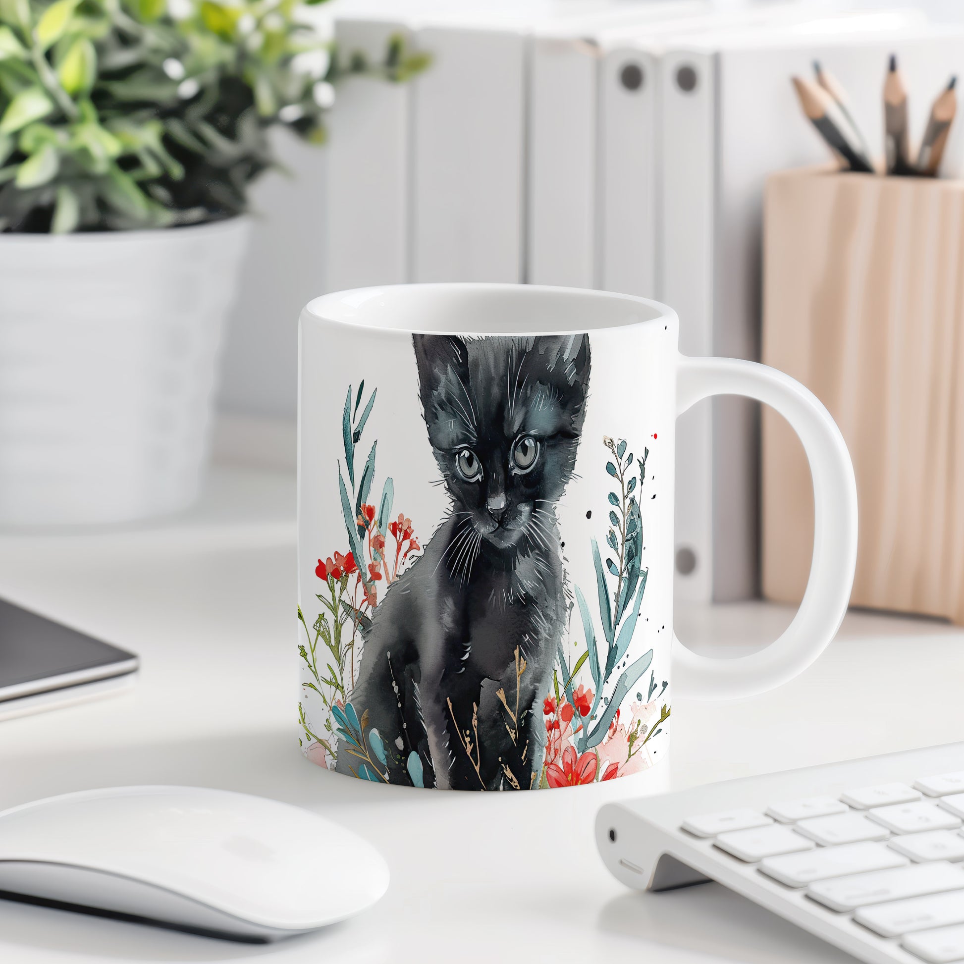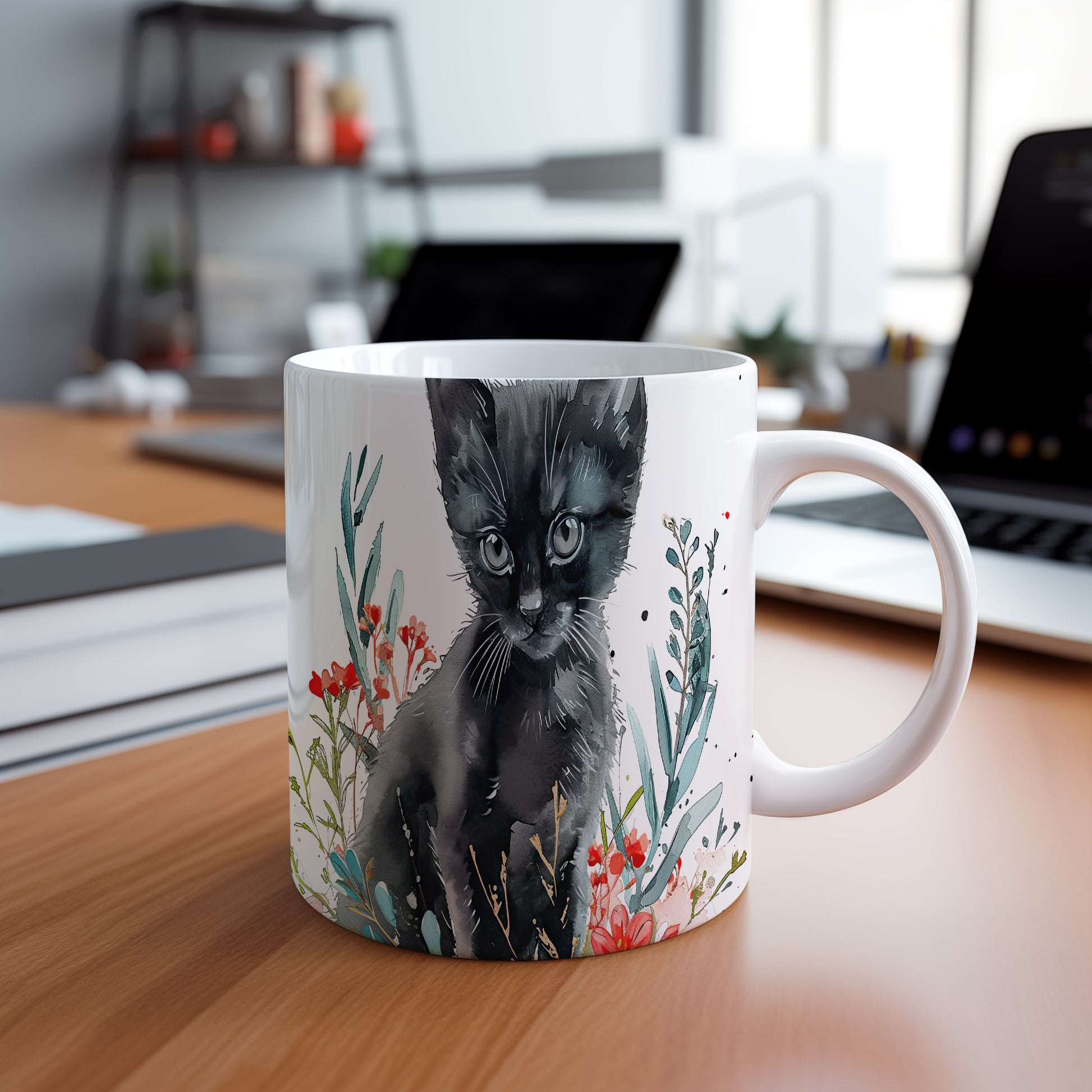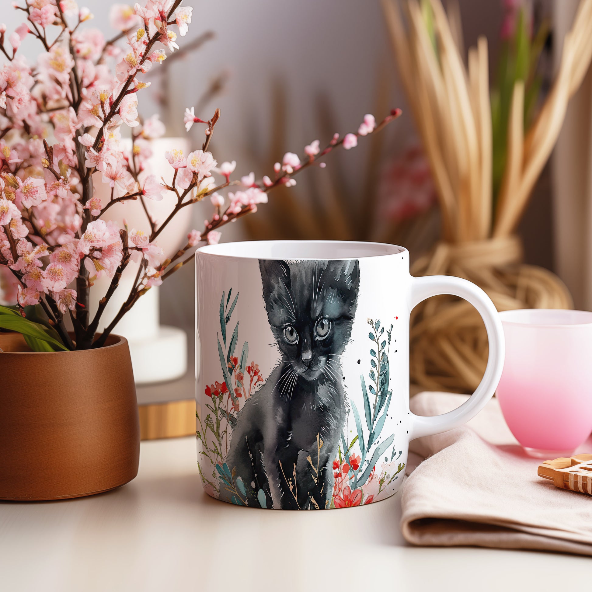 Tento hrnek zobrazuje černou kočku obklopenou barevnými květinami, což mu dodává hravý a veselý vzhled. Je ideální pro milovníky koček a květin, skvělý tip na dárek pro přátele nebo rodinu. Materiál: keramika. Objem: 330 ml. Vhodné do myčky i mikrovlnky. Používáním tohoto hrnku si užijete každý doušek vašeho oblíbeného nápoje.