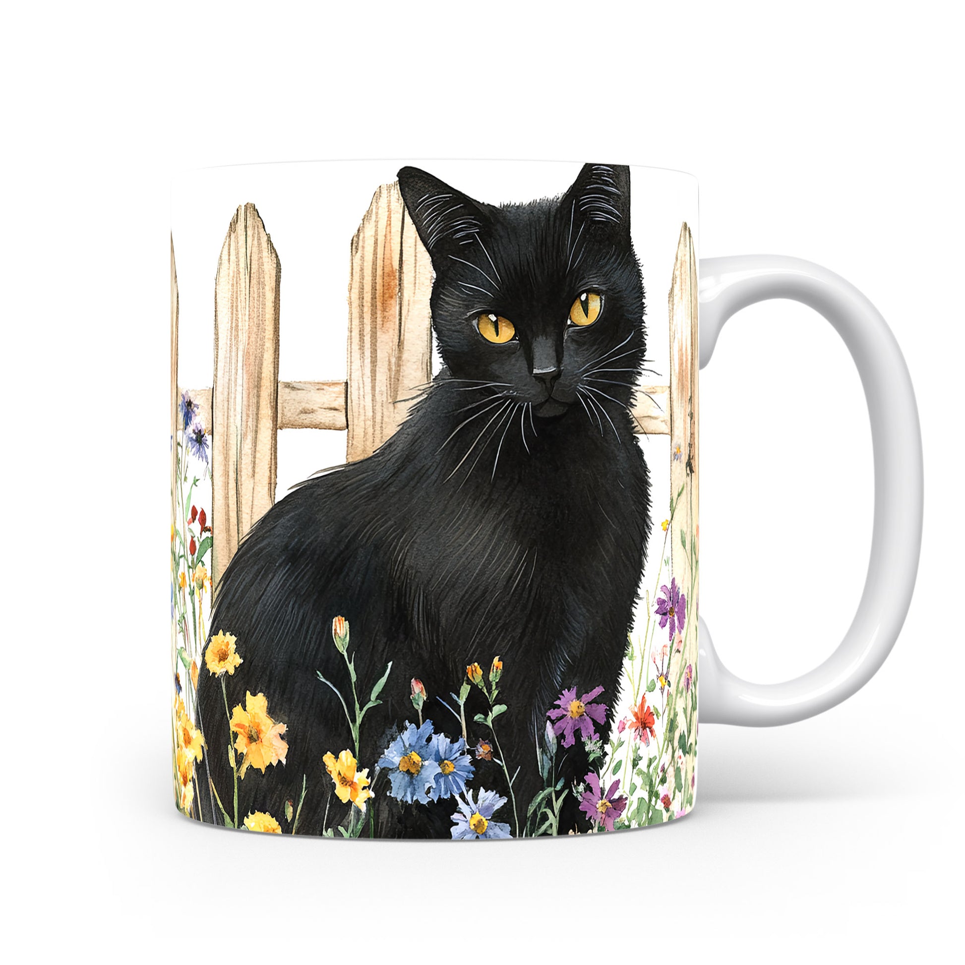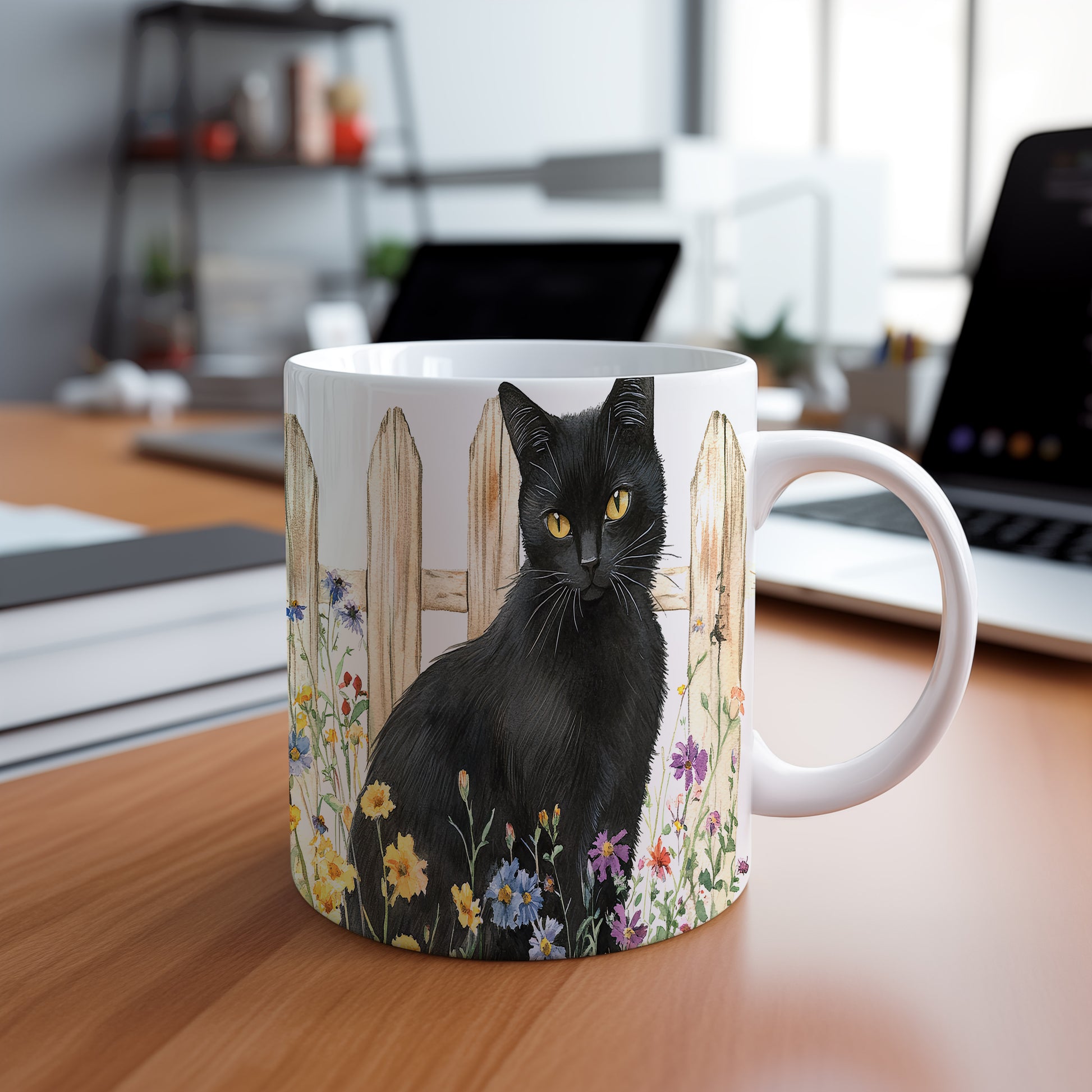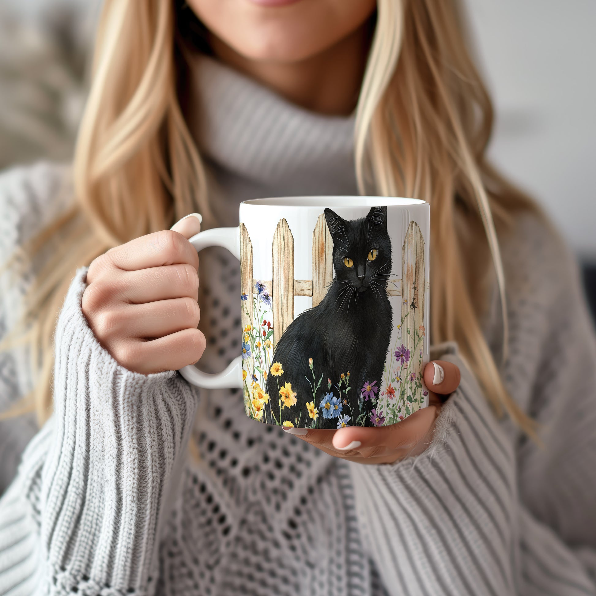 Tento hrnek zobrazuje elegantní černou kočku obklopenou rozkvetlými květinami. Je ideální pro milovníky zvířat a skvěle poslouží jako dárek pro přátele nebo rodinu. Materiál: keramika. Objem: 330 ml. Vhodné do myčky i mikrovlnky. Používání tohoto hrnku přináší radost z každého doušku.