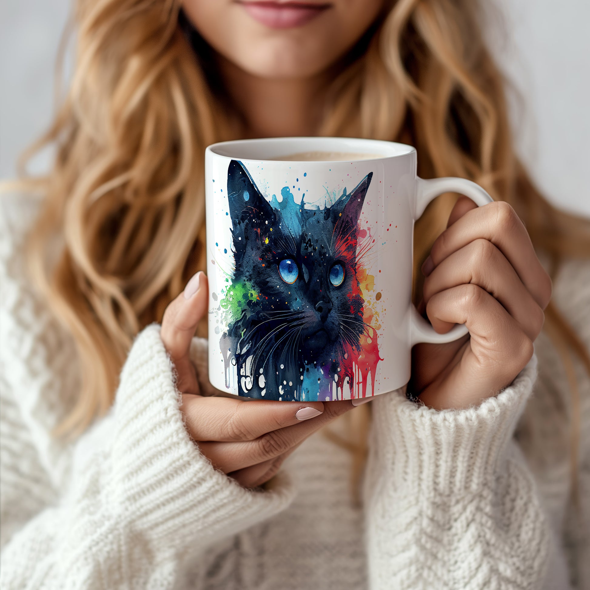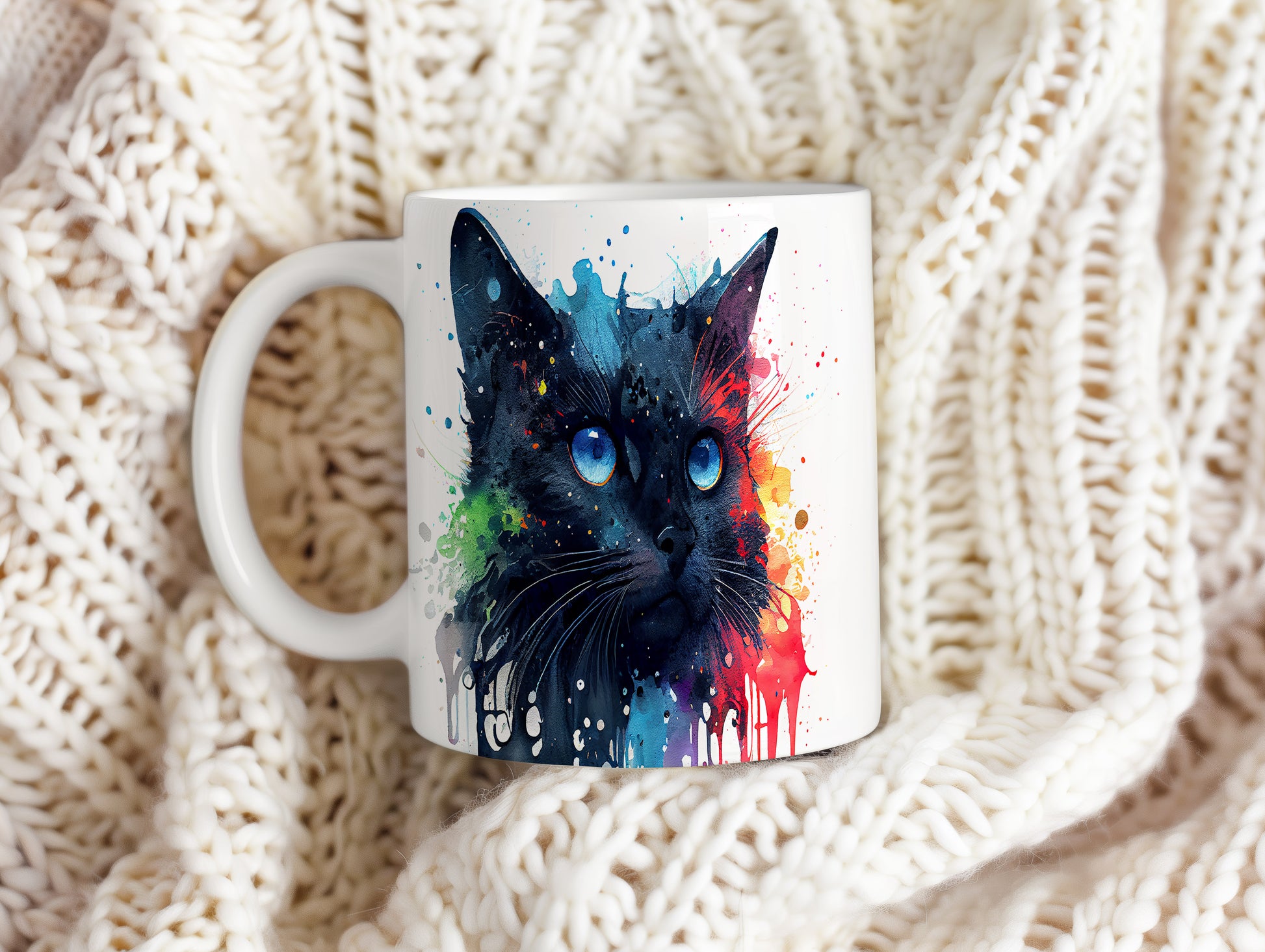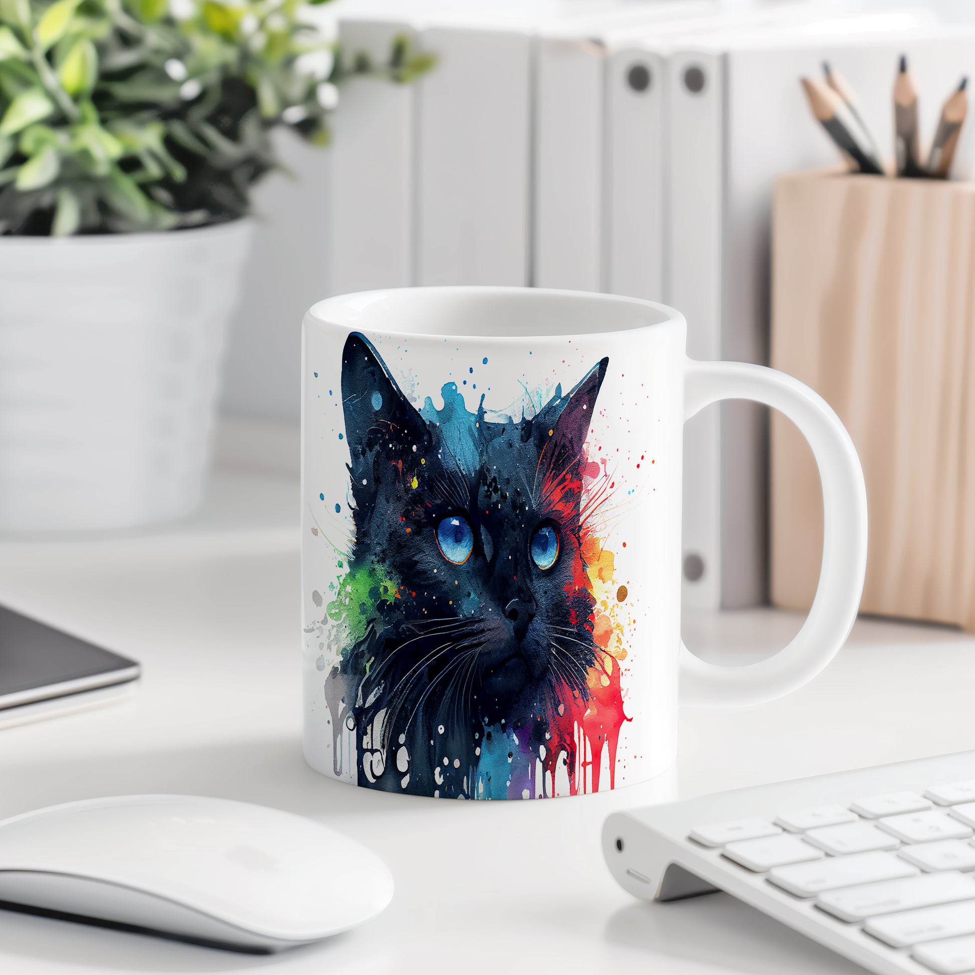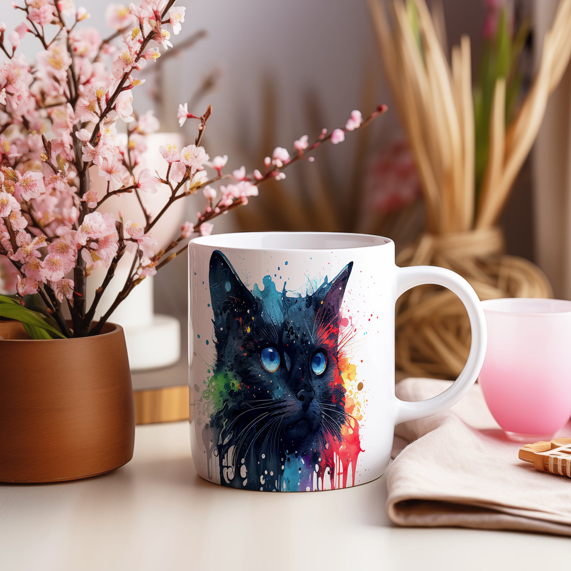 Stylový hrnek s motivem černé kočky, který je doplněn barevnými skvrnami. Tento hrnek je ideální pro milovníky zvířat a skvělý tip na dárek pro přátele. Materiál: keramika. Objem: 330 ml. Vhodné do myčky i mikrovlnky. Díky svému designu přináší radost při každém doušku.
