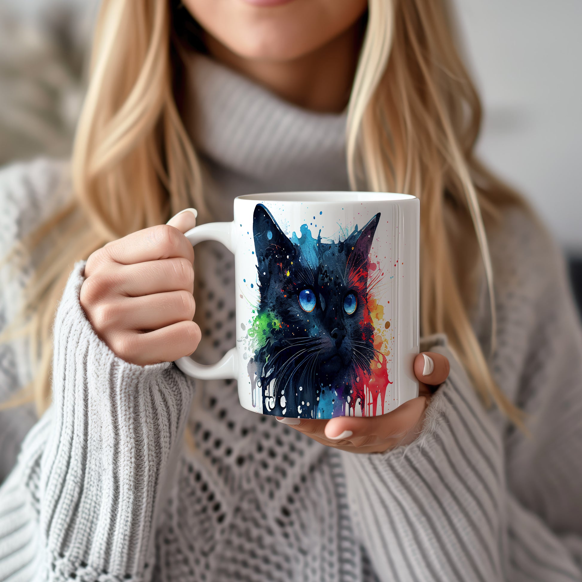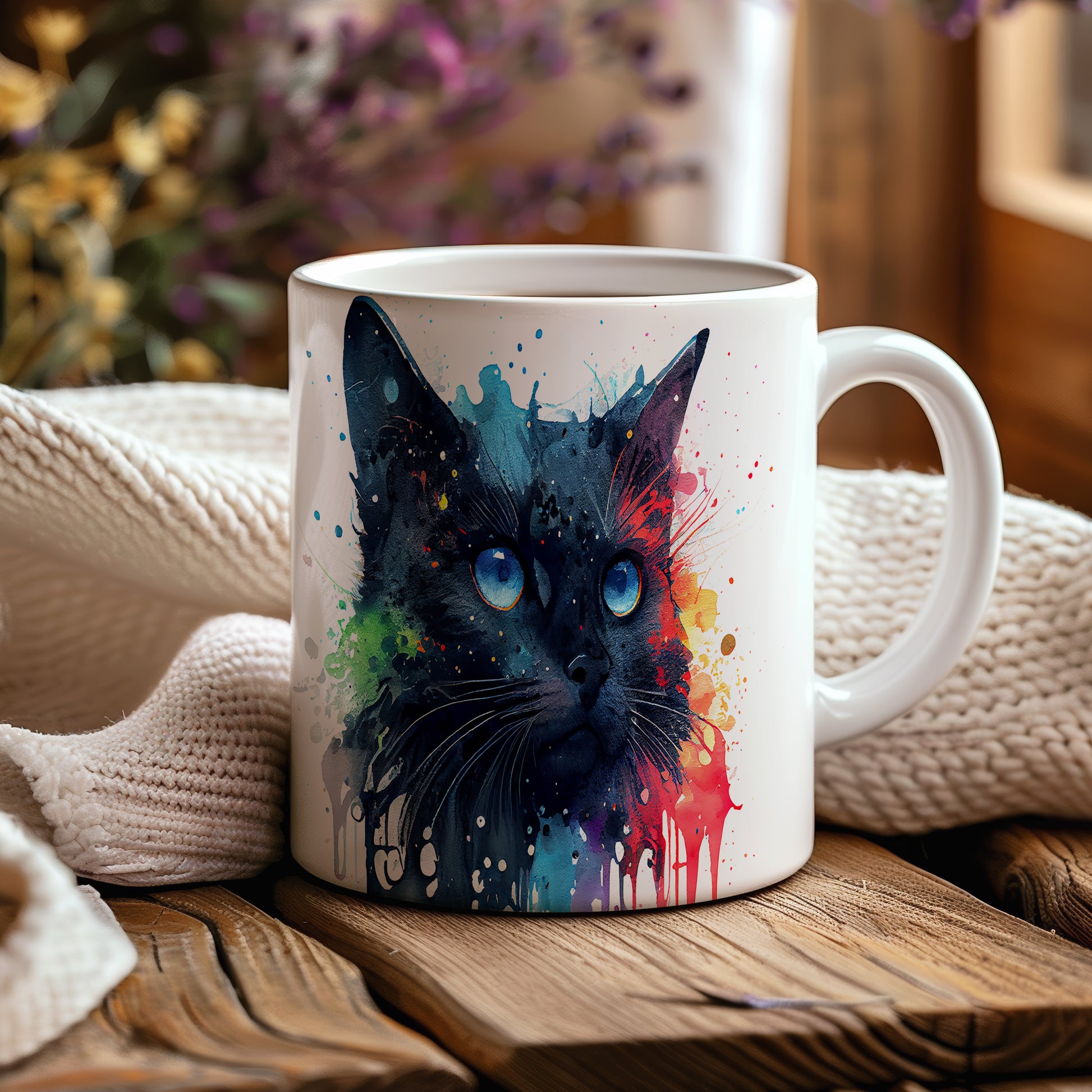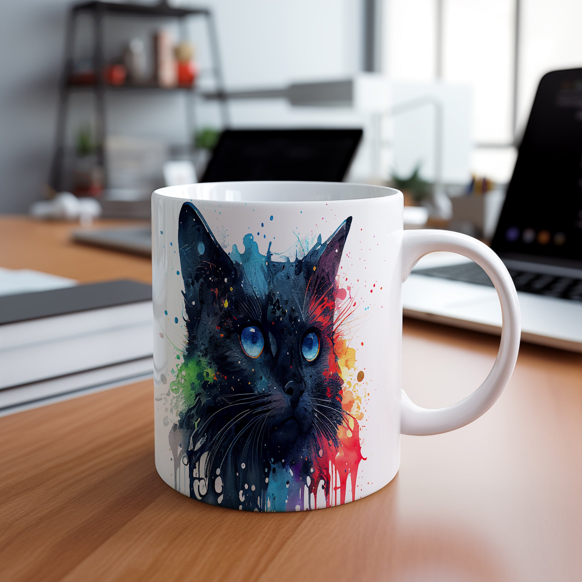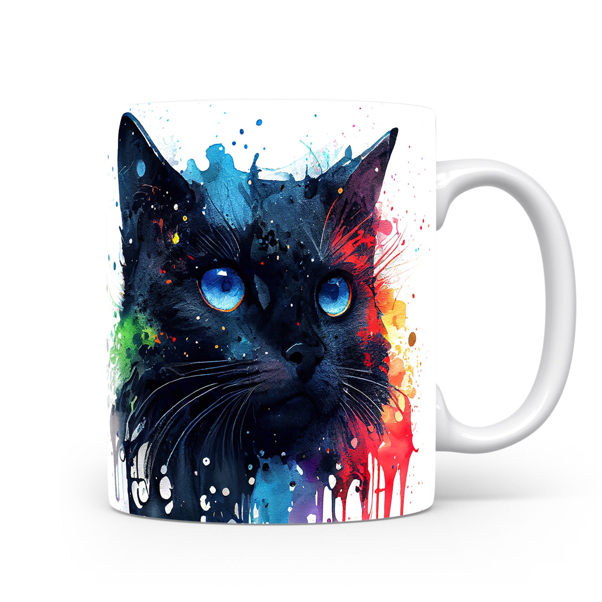 Stylový hrnek s motivem černé kočky, který je doplněn barevnými skvrnami. Tento hrnek je ideální pro milovníky zvířat a skvělý tip na dárek pro přátele. Materiál: keramika. Objem: 330 ml. Vhodné do myčky i mikrovlnky. Díky svému designu přináší radost při každém doušku.