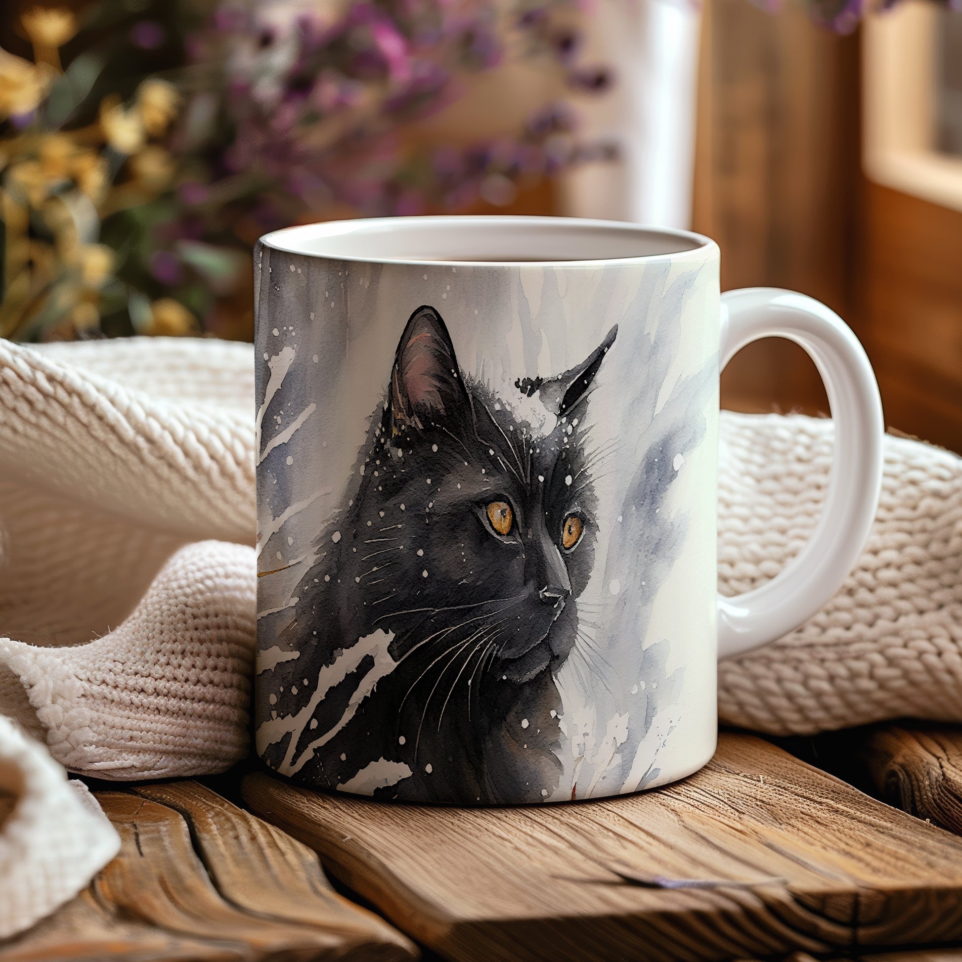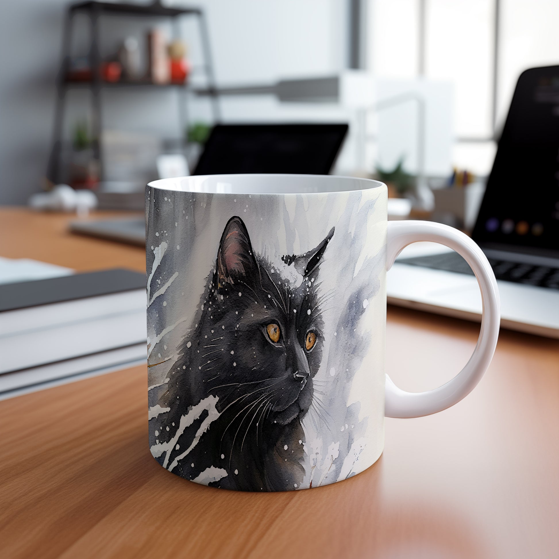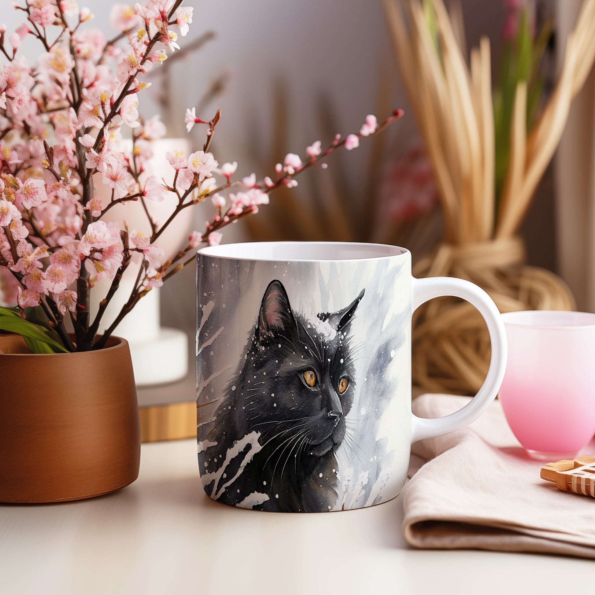 Hrnek s realistickým motivem černé kočky s oranžovýma očima. Tento hrnek je ideální pro milovníky koček a skvělý tip na dárek pro přátele nebo rodinu. Materiál: keramika. Objem: 330 ml. Vhodné do myčky i mikrovlnky. Užívejte si svůj oblíbený nápoj s tímto stylovým hrnkem.
