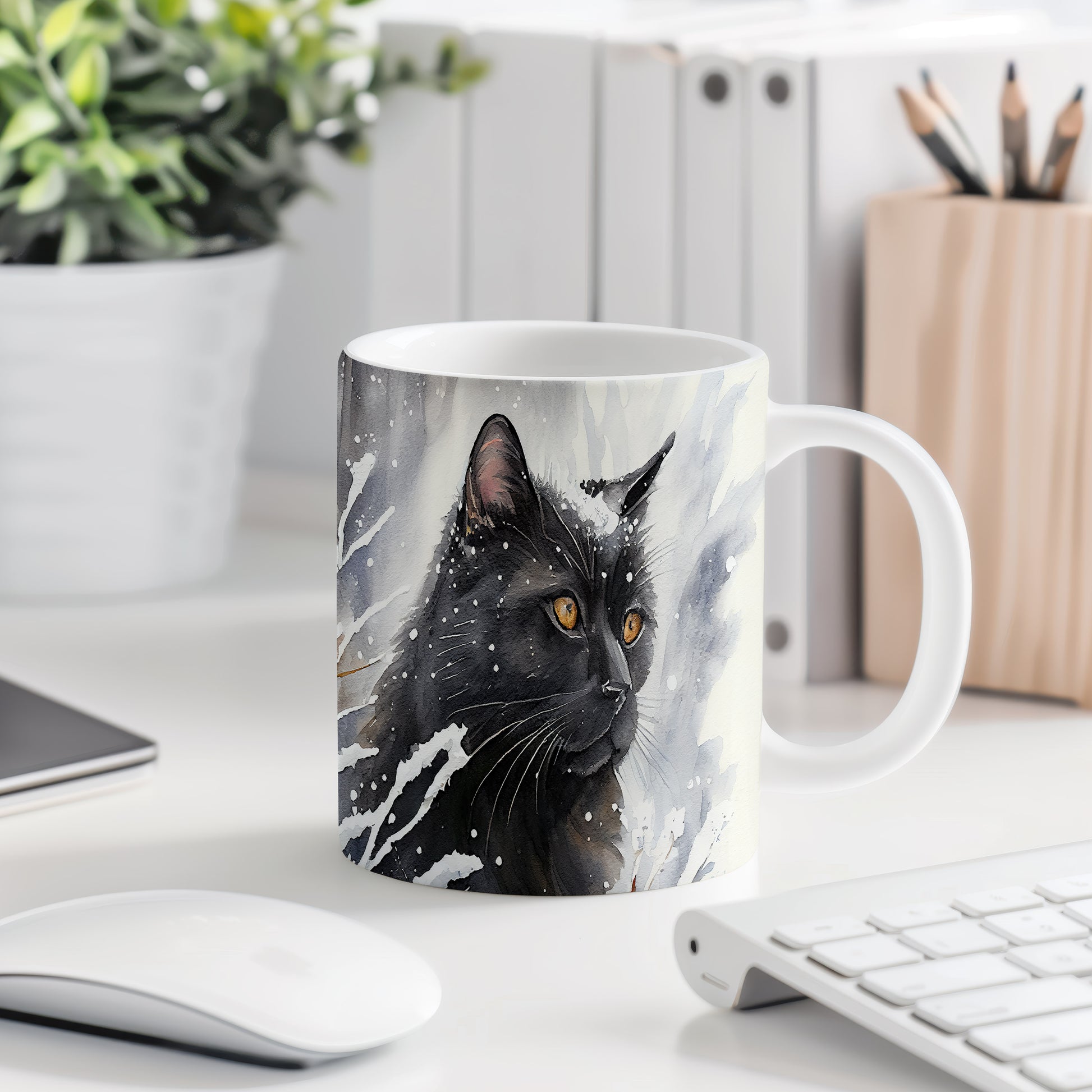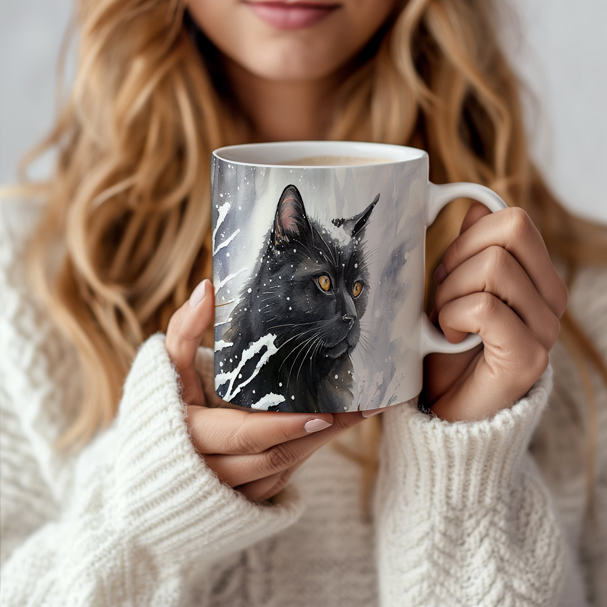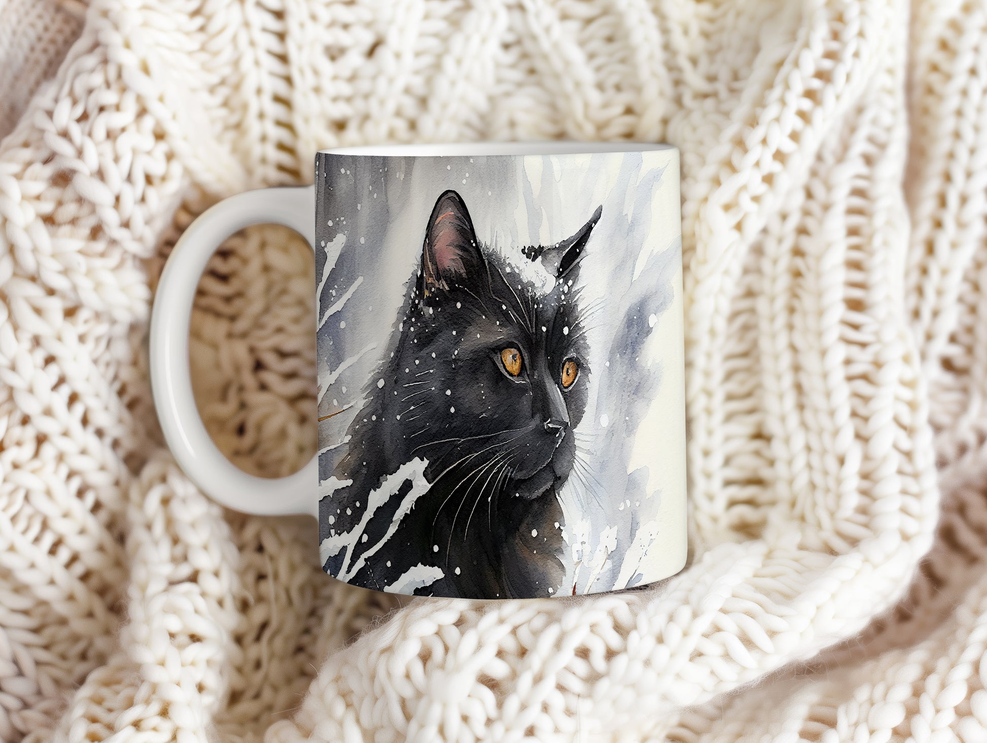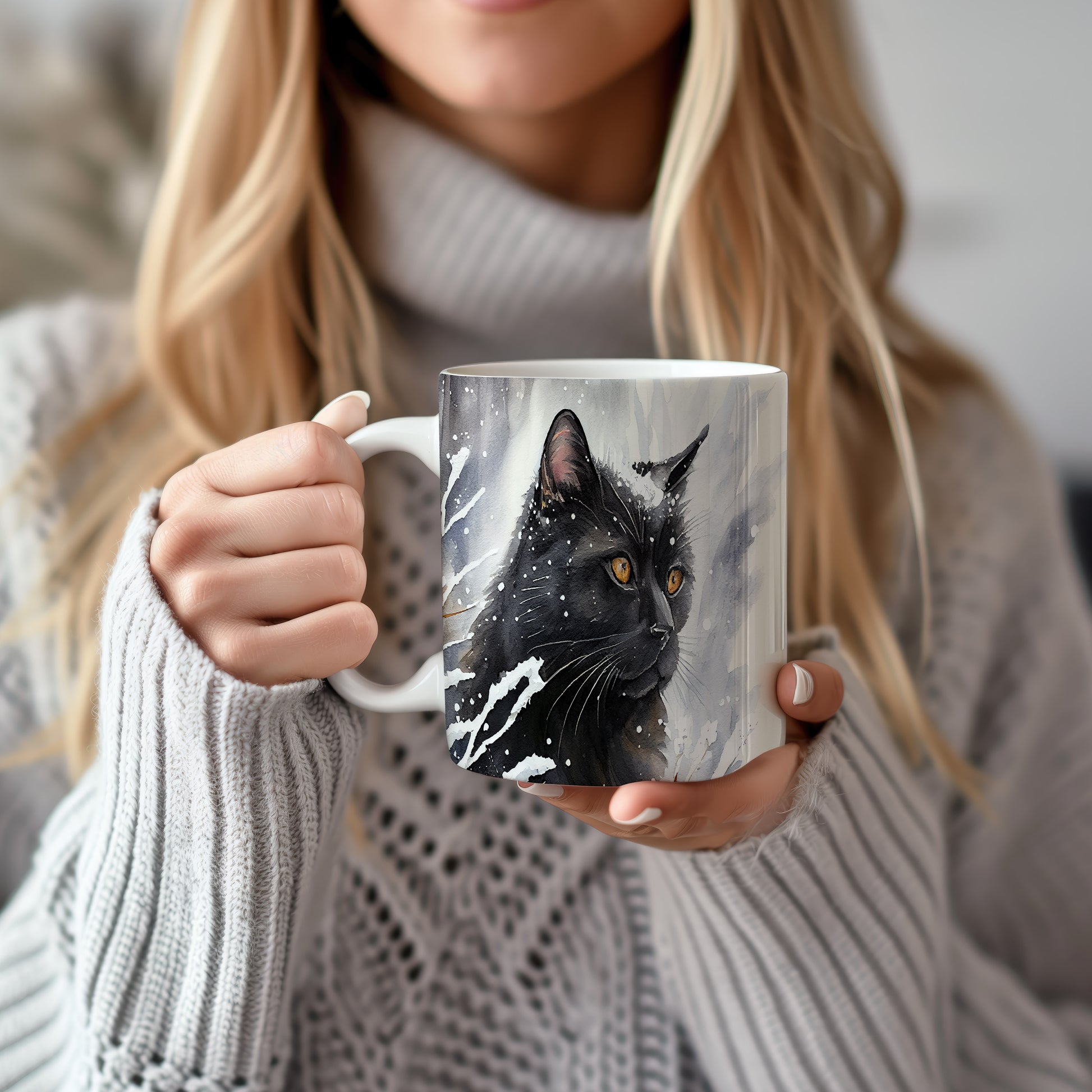 Hrnek s realistickým motivem černé kočky s oranžovýma očima. Tento hrnek je ideální pro milovníky koček a skvělý tip na dárek pro přátele nebo rodinu. Materiál: keramika. Objem: 330 ml. Vhodné do myčky i mikrovlnky. Užívejte si svůj oblíbený nápoj s tímto stylovým hrnkem.