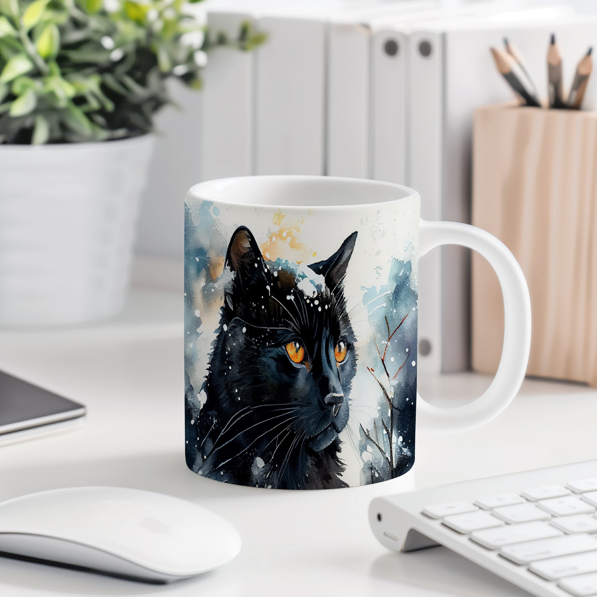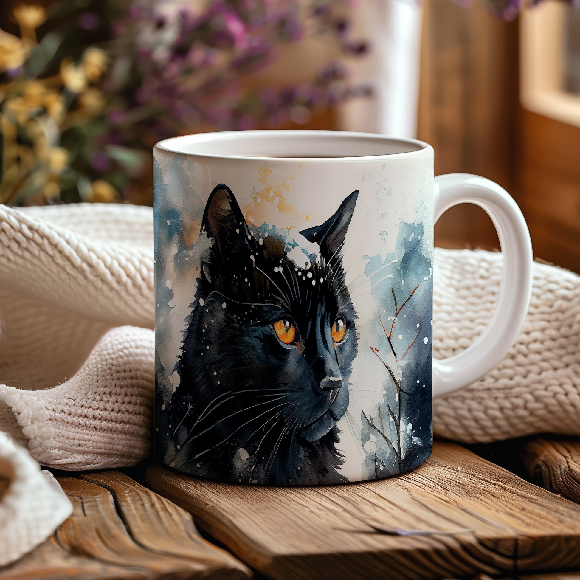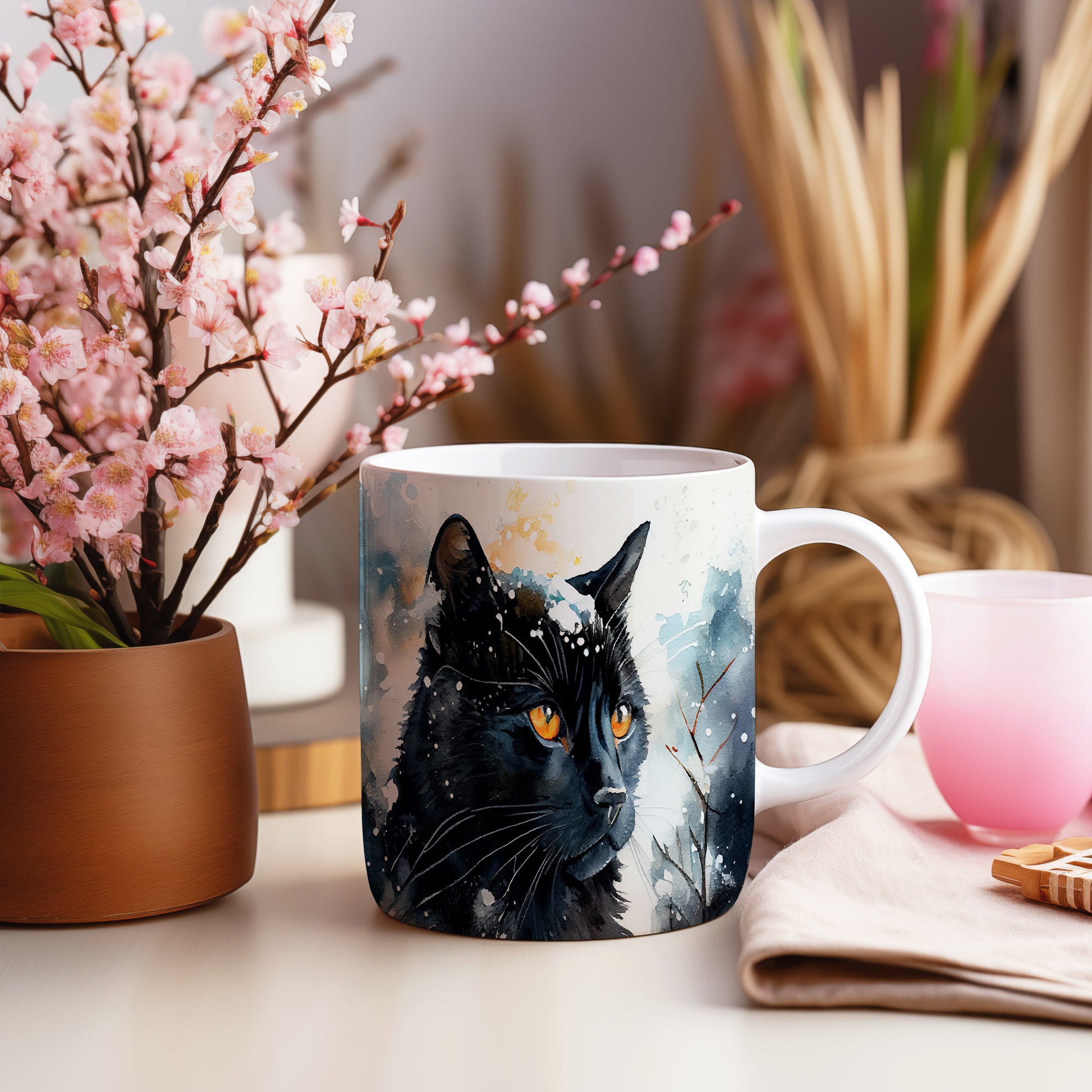 Hrnek s motivem černé kočky v akvarelovém stylu je skvělou volbou pro milovníky koček a umění. Tento hrnek potěší každého, kdo ocení originální design, a je ideálním dárkem pro přátele či rodinu. Materiál: keramika. Objem: 330 ml. Vhodné do myčky i mikrovlnky. Díky svému jedinečnému vzhledu přinese do vašeho každodenního pití špetku elegance.