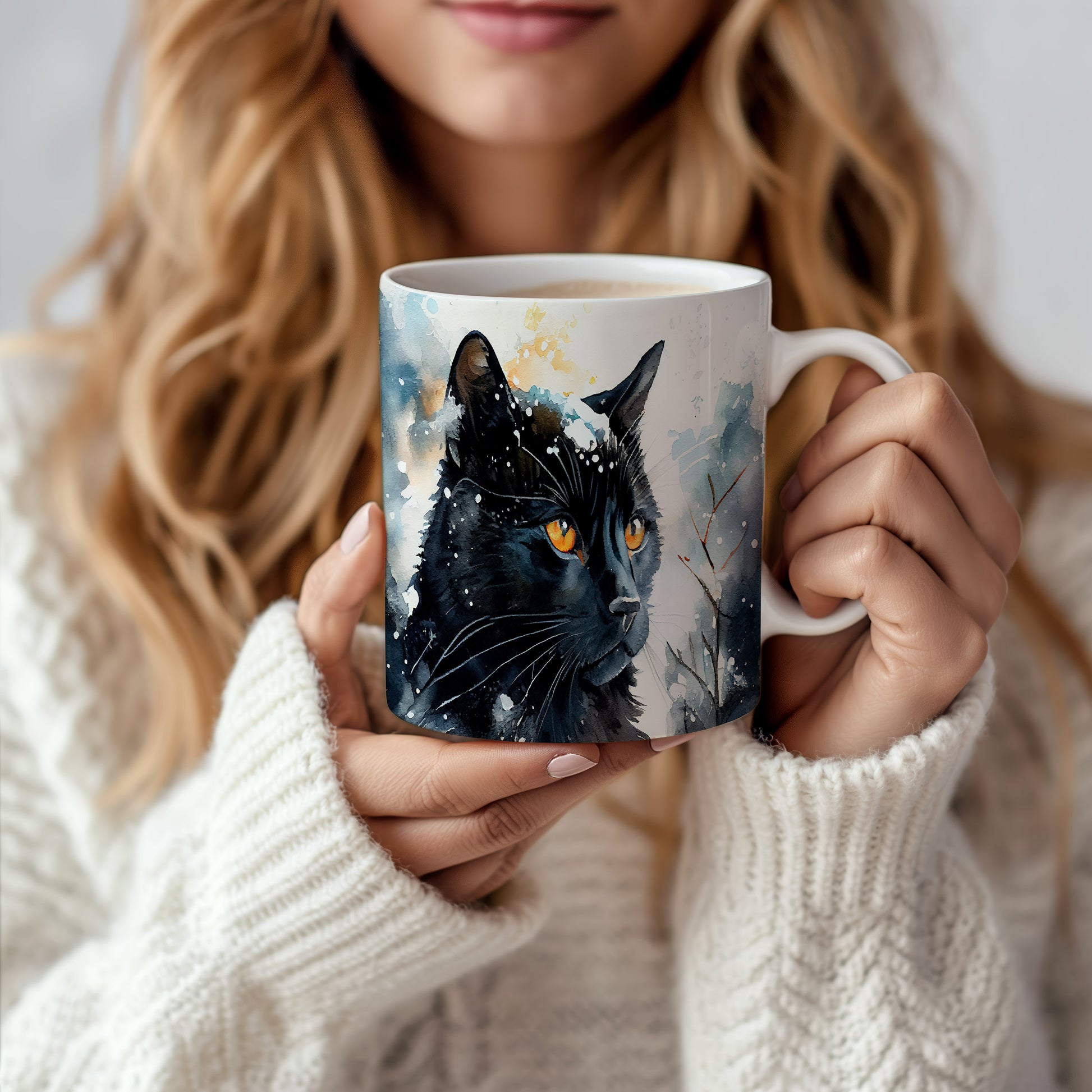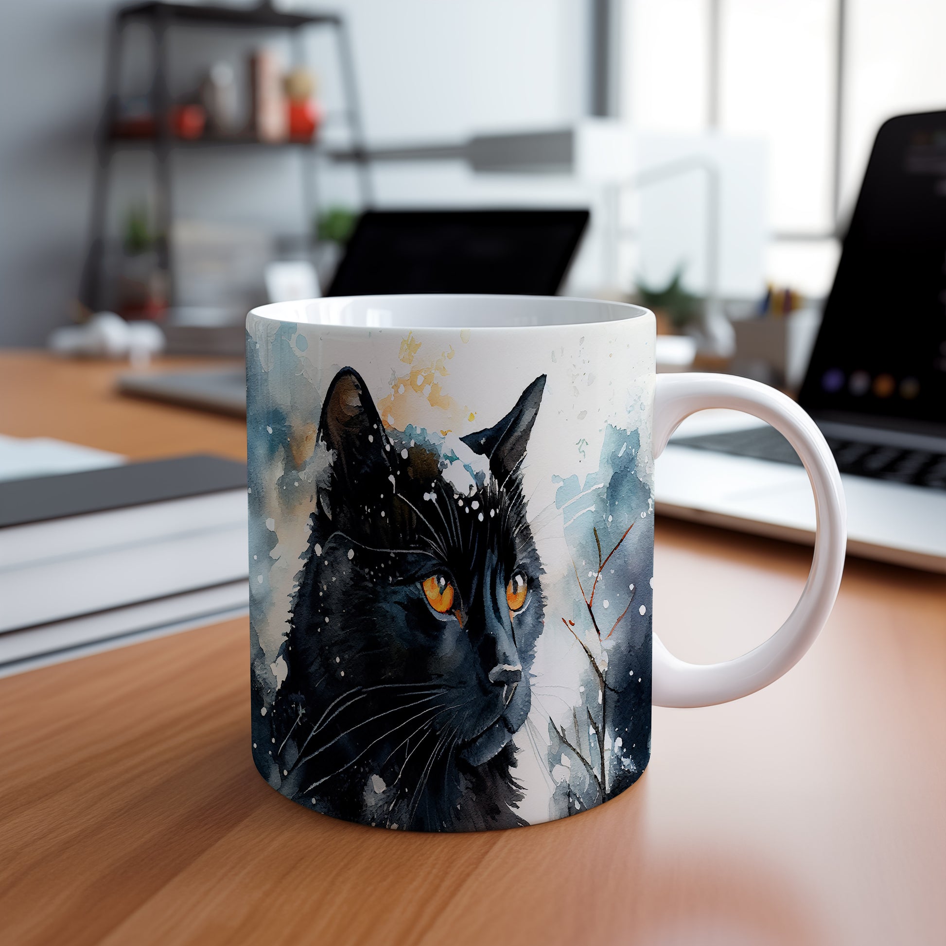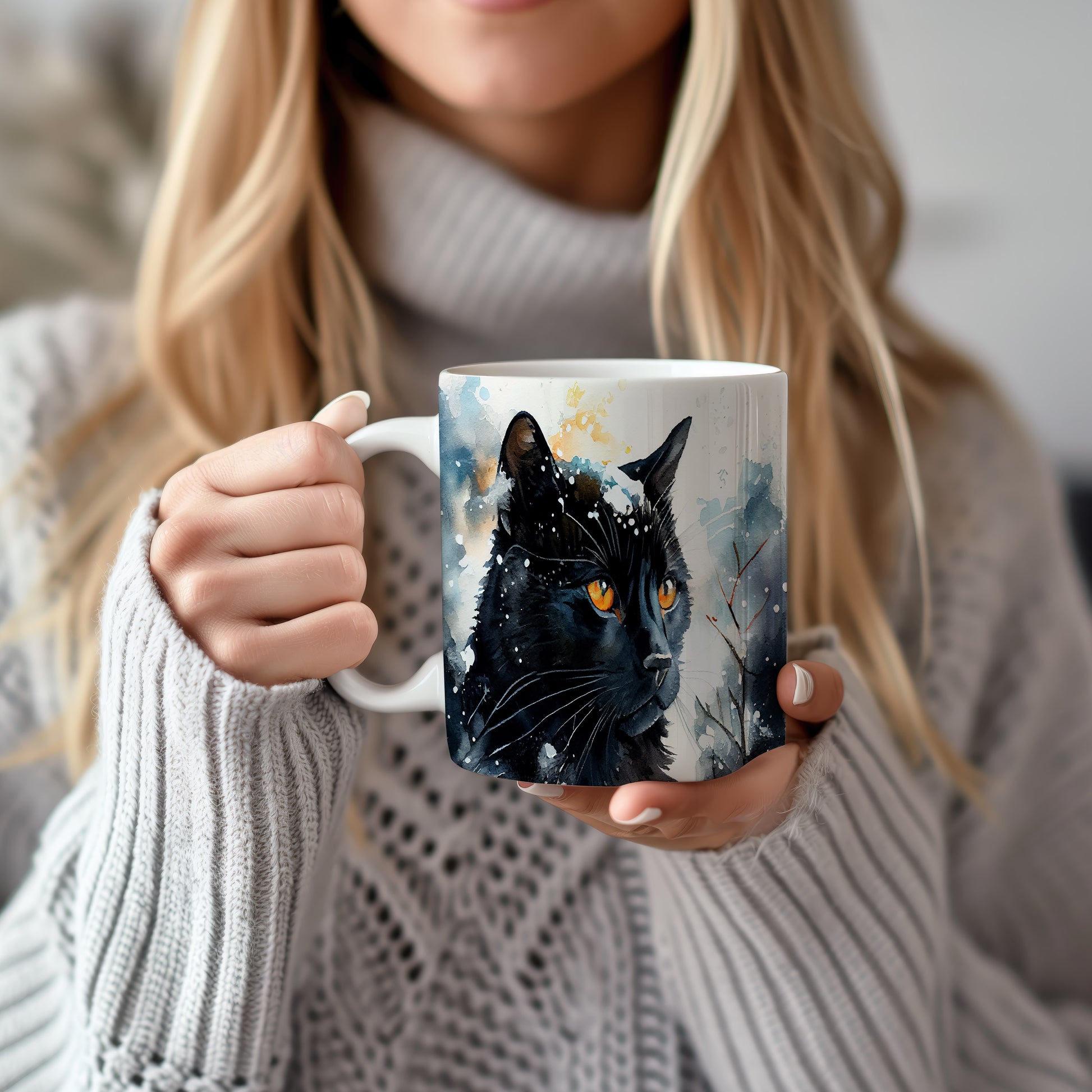 Hrnek s motivem černé kočky v akvarelovém stylu je skvělou volbou pro milovníky koček a umění. Tento hrnek potěší každého, kdo ocení originální design, a je ideálním dárkem pro přátele či rodinu. Materiál: keramika. Objem: 330 ml. Vhodné do myčky i mikrovlnky. Díky svému jedinečnému vzhledu přinese do vašeho každodenního pití špetku elegance.