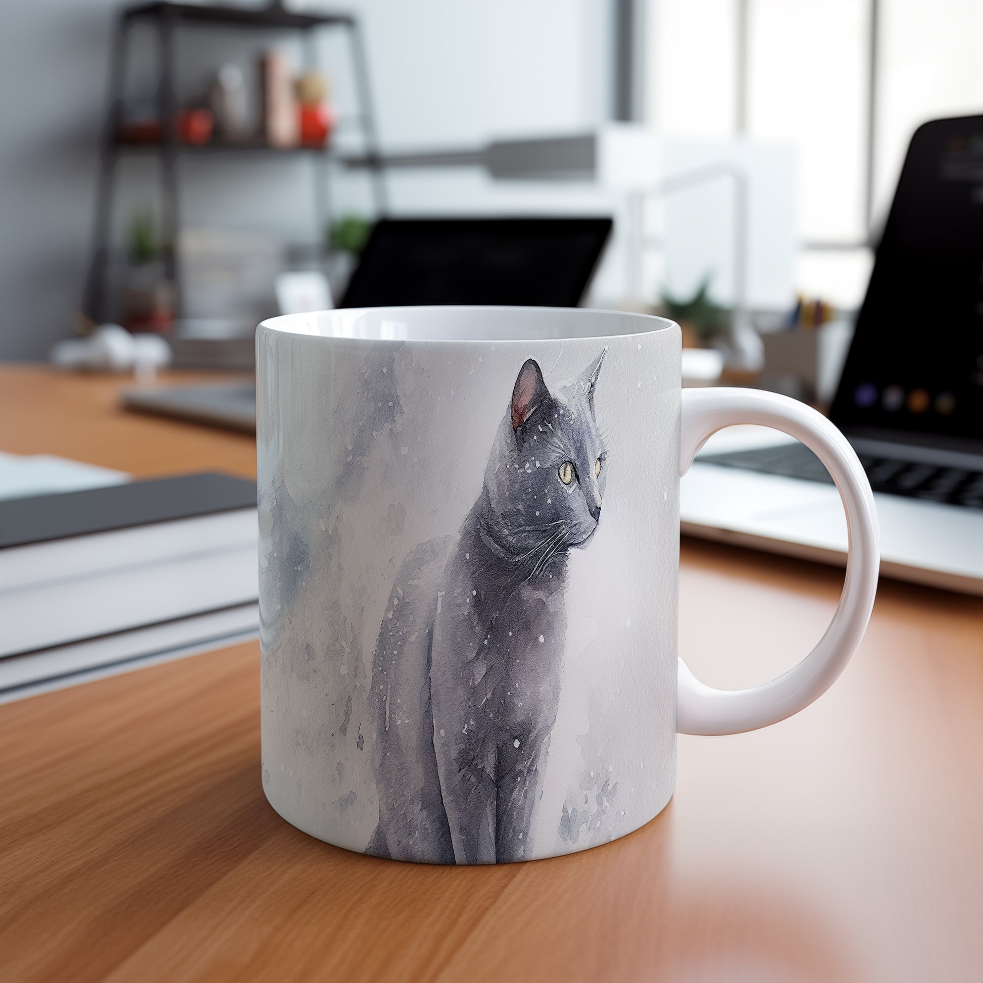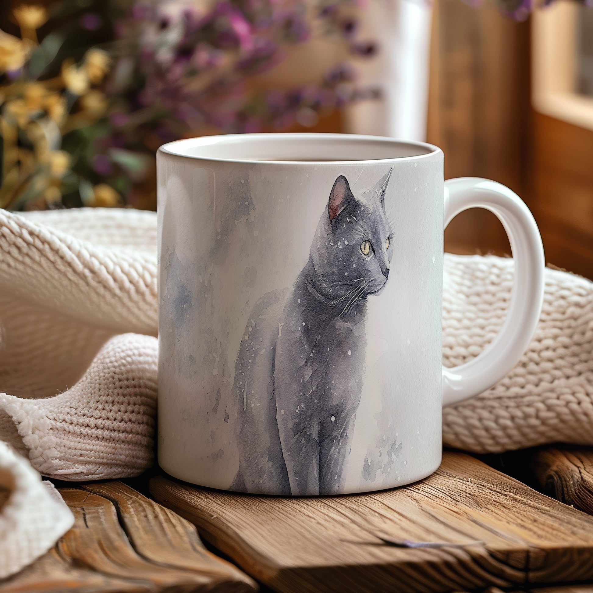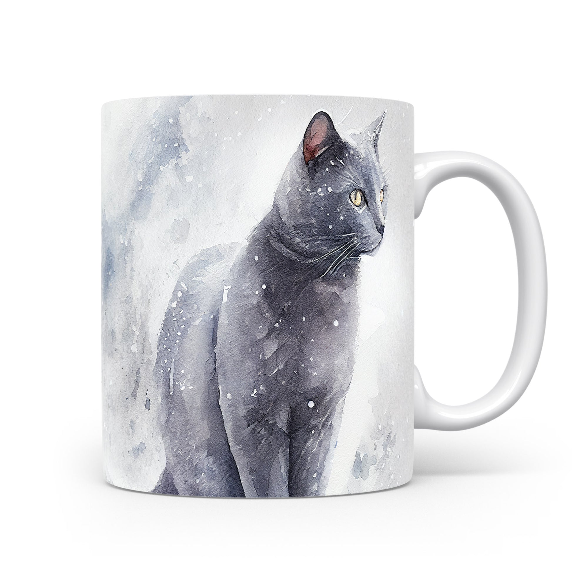 Hrnek se černou kočkou v akvarelovém stylu – akvarelovým motivem