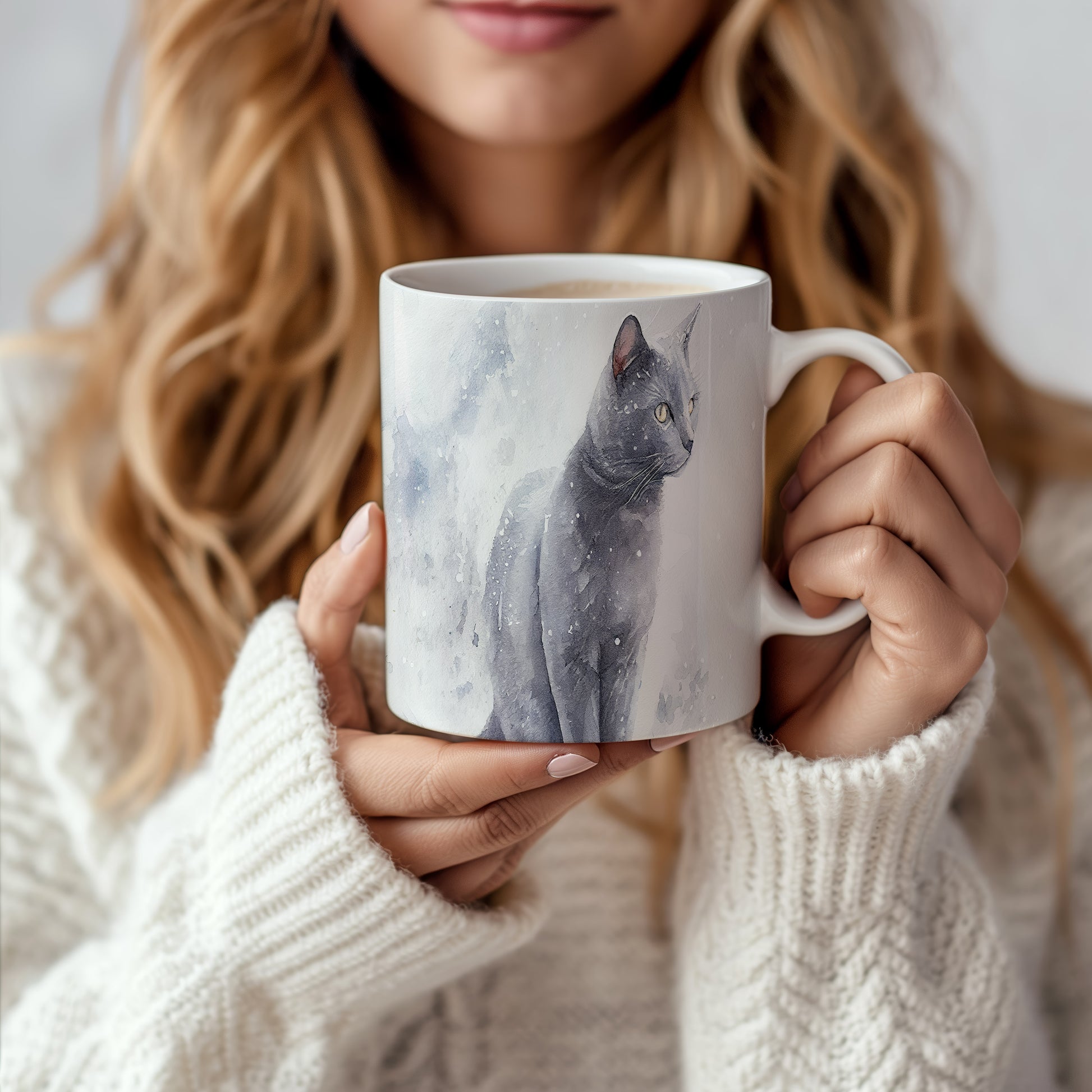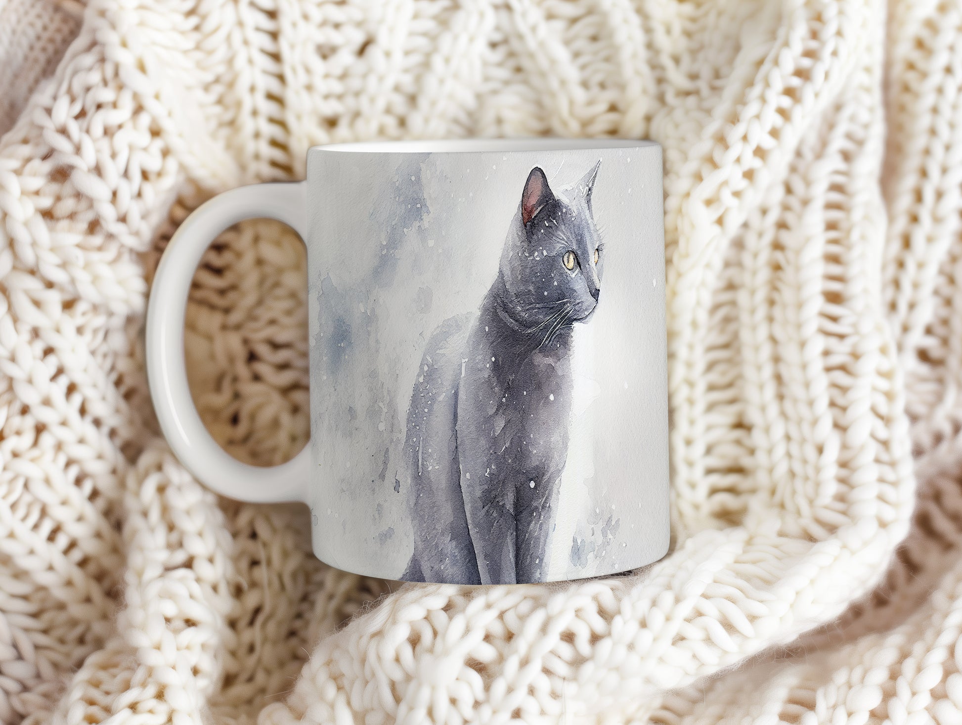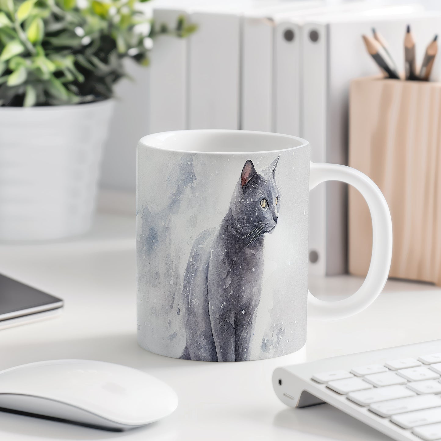 Hrnek se černou kočkou v akvarelovém stylu – akvarelovým motivem
