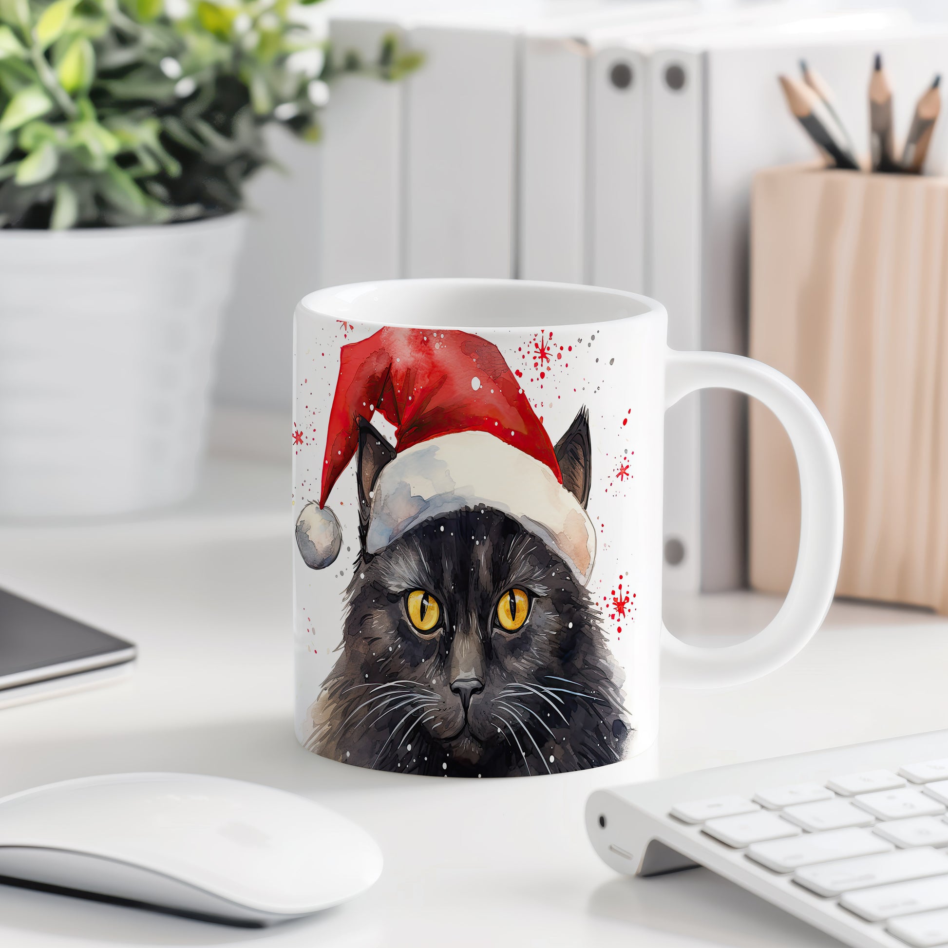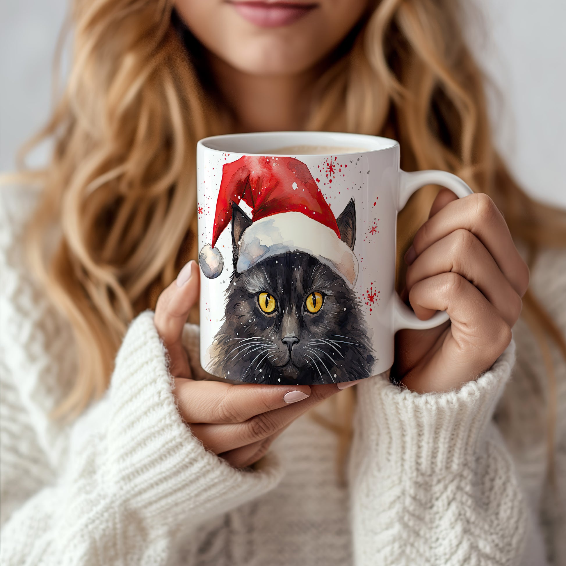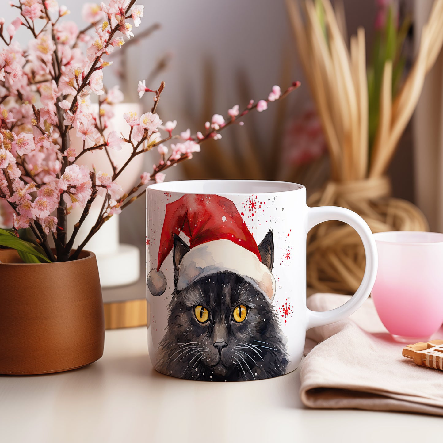 Hrnek s motivem černé kočky v čepici je skvělým kouskem pro milovníky těchto mazlíčků. Tento hrnek potěší nejen během zimních svátků, ale i jako originální dárek pro přátele a rodinu. Materiál: keramika. Objem: 330 ml. Vhodné do myčky i mikrovlnky. Užívejte si svůj oblíbený nápoj s tímto stylovým hrnkem, který dodá každému dni šmrnc.