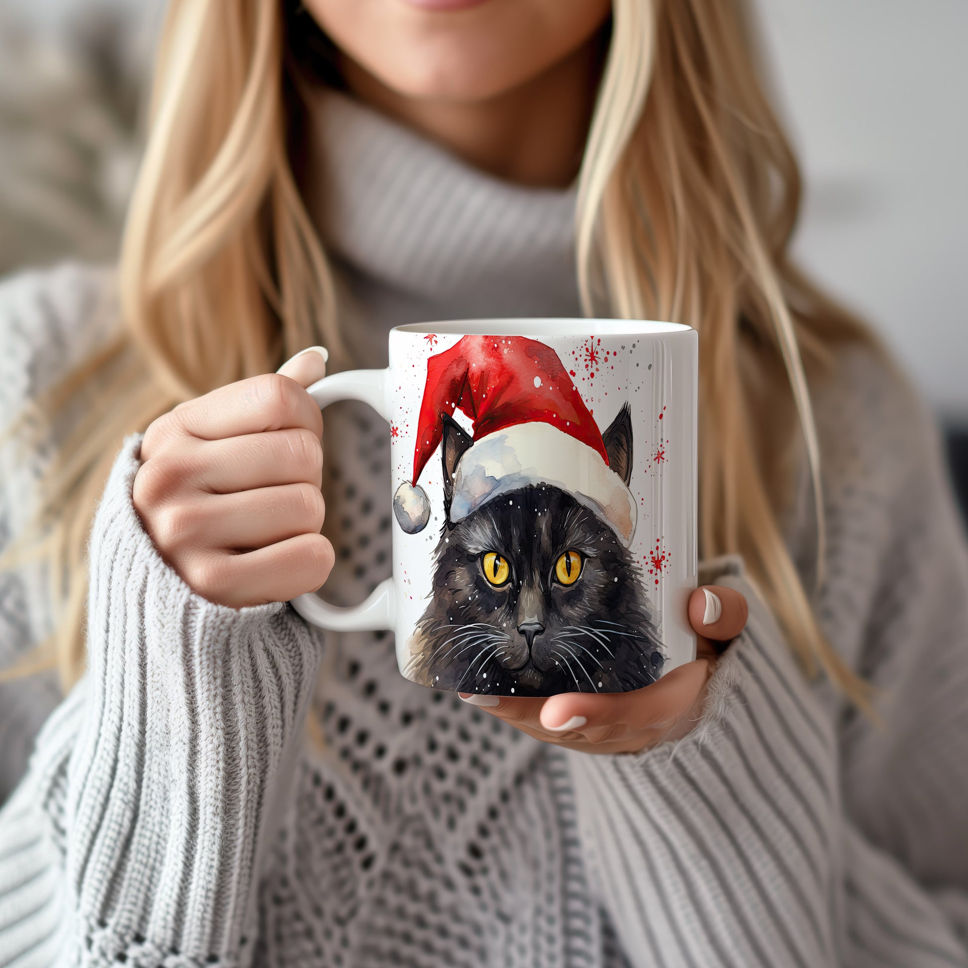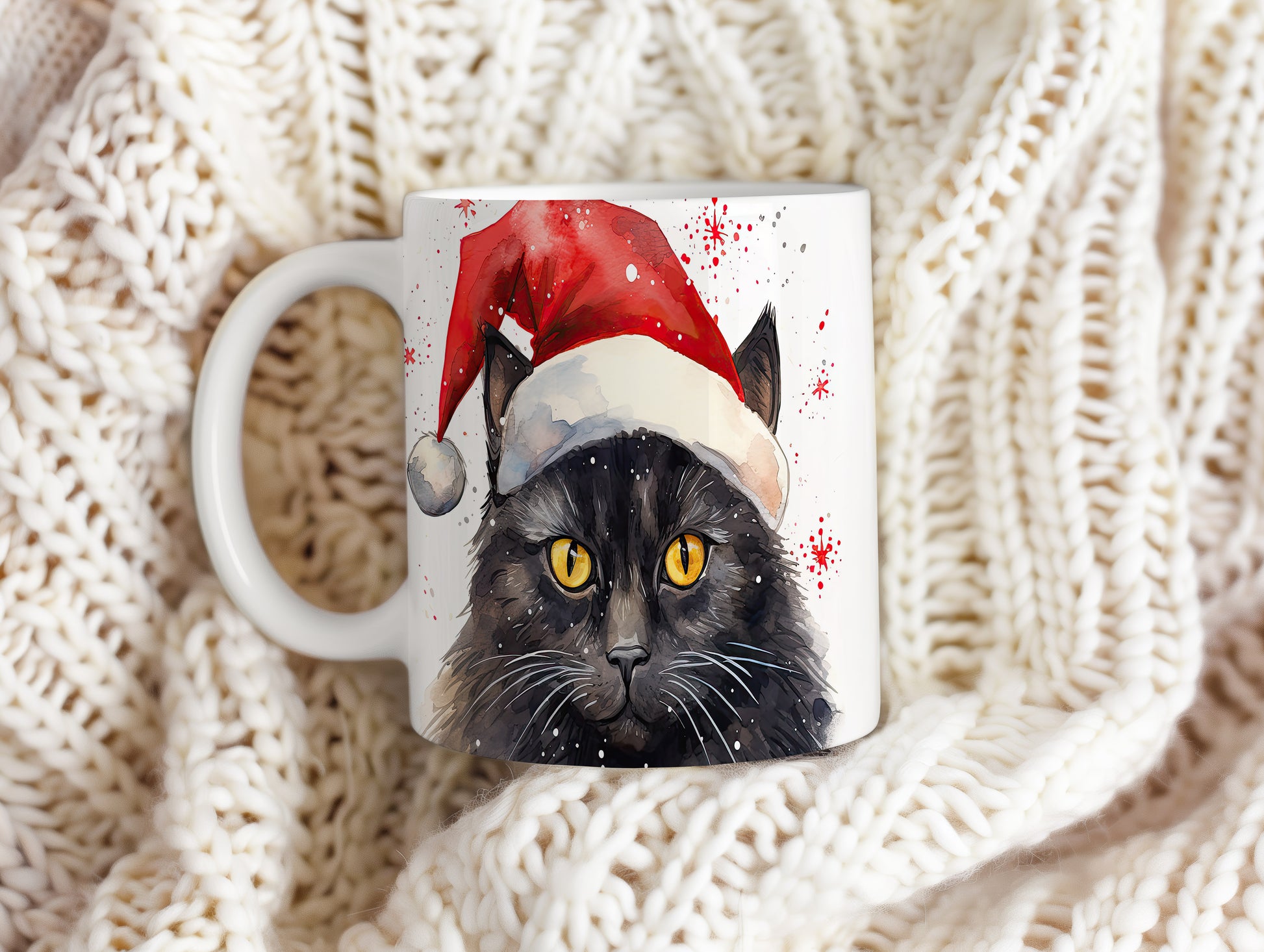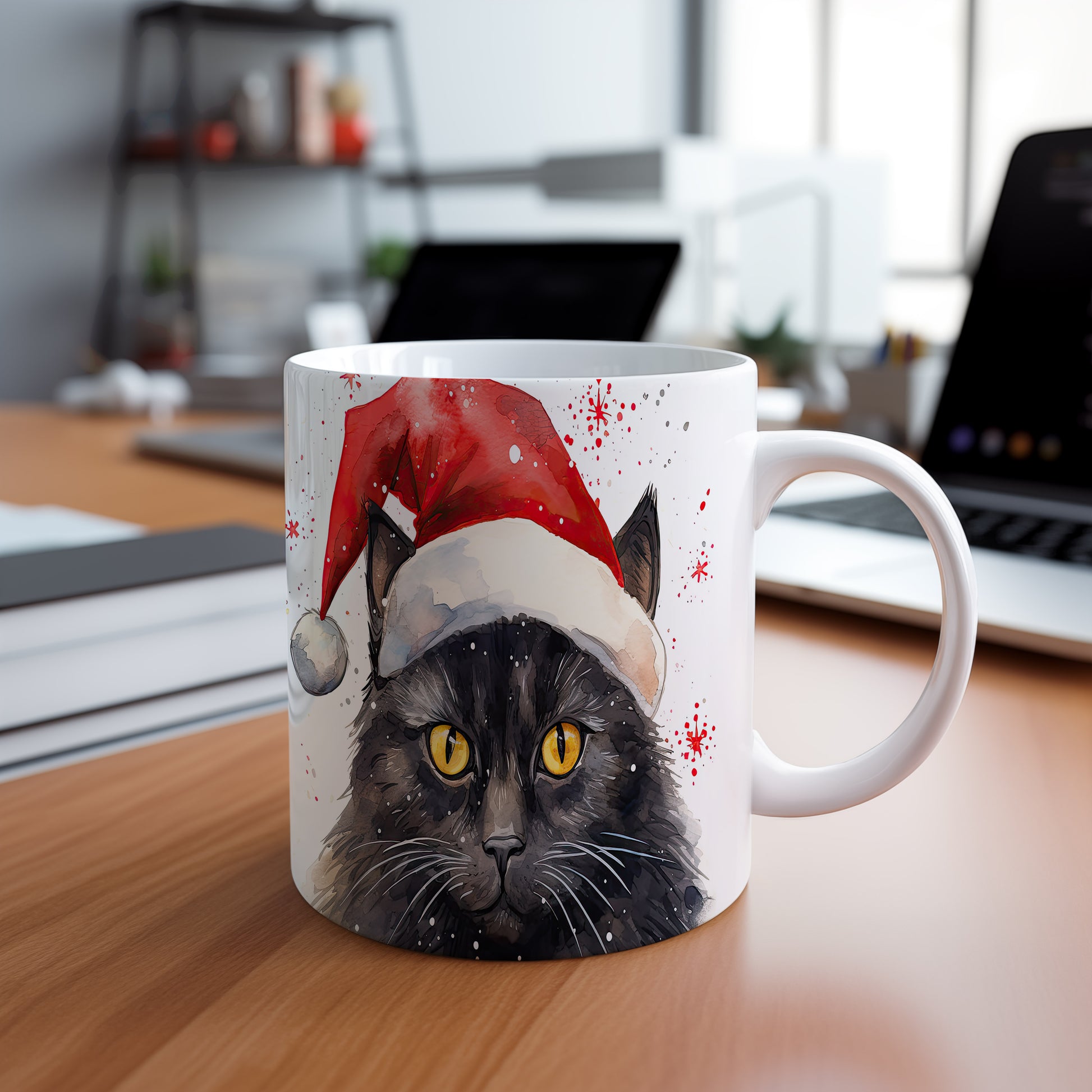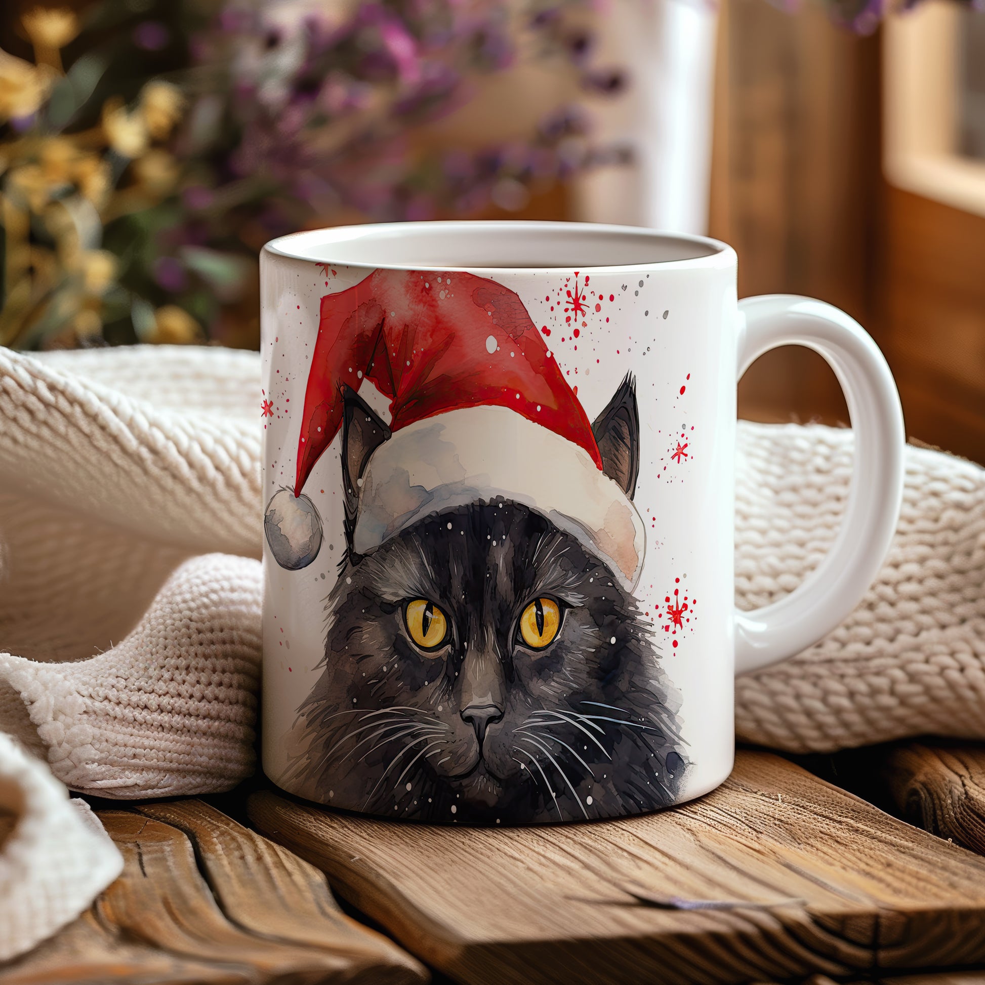Hrnek s motivem černé kočky v čepici je skvělým kouskem pro milovníky těchto mazlíčků. Tento hrnek potěší nejen během zimních svátků, ale i jako originální dárek pro přátele a rodinu. Materiál: keramika. Objem: 330 ml. Vhodné do myčky i mikrovlnky. Užívejte si svůj oblíbený nápoj s tímto stylovým hrnkem, který dodá každému dni šmrnc.