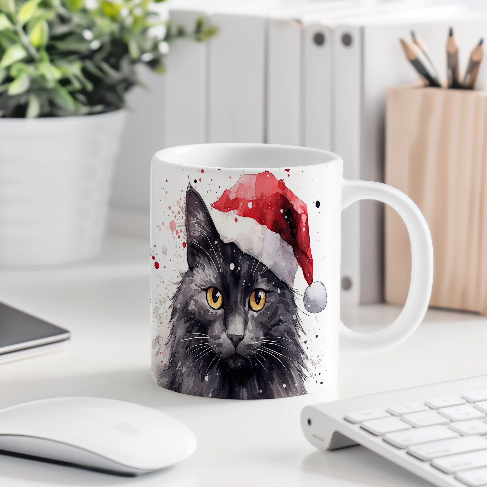 Keramický hrnek s motivem černé kočky v vánoční čepici. Tento hrnek je ideální pro milovníky koček a skvělý tip na vánoční dárek. Materiál: keramika. Objem: 330 ml. Vhodné do myčky i mikrovlnky. Užívejte si svůj oblíbený nápoj s tímto roztomilým designem.
