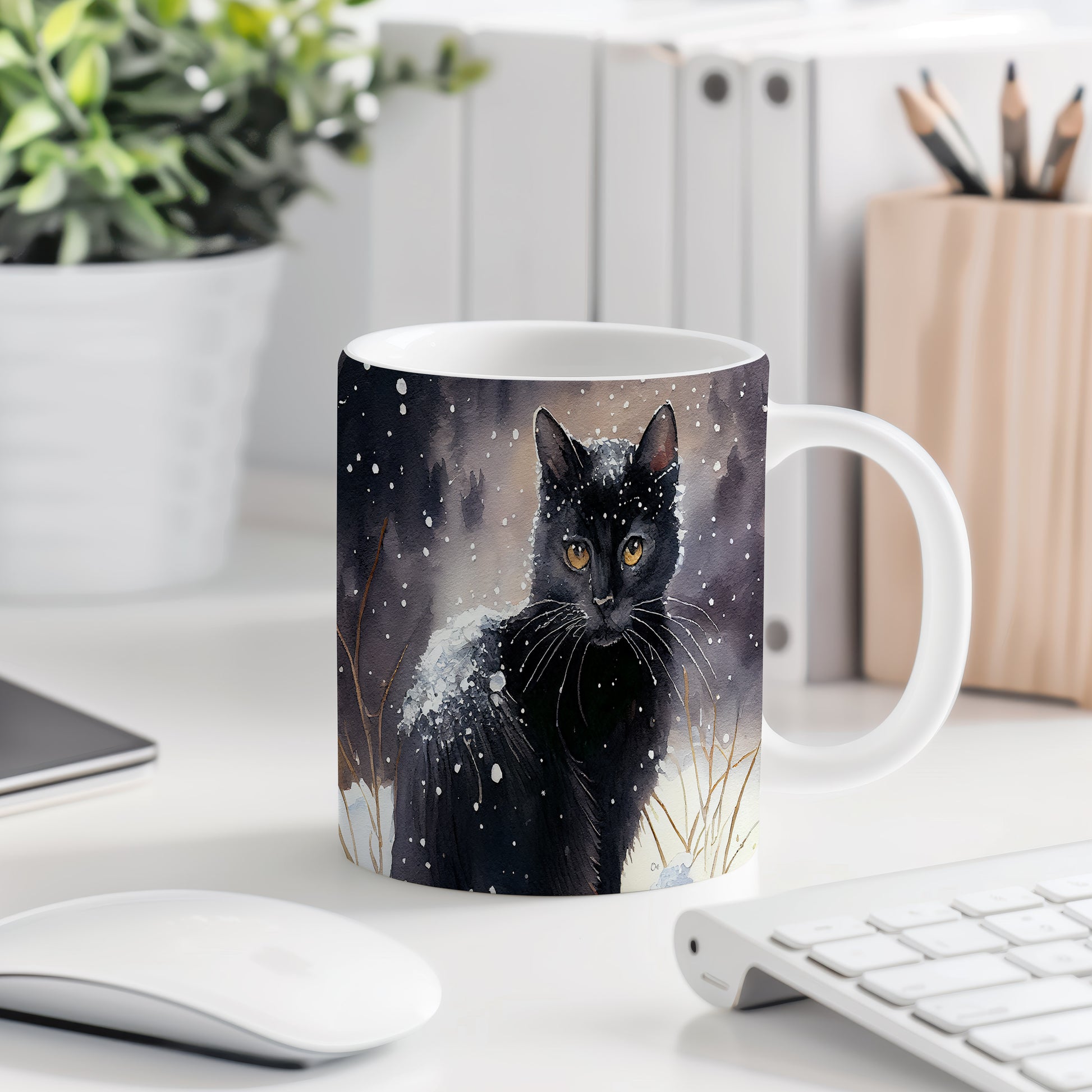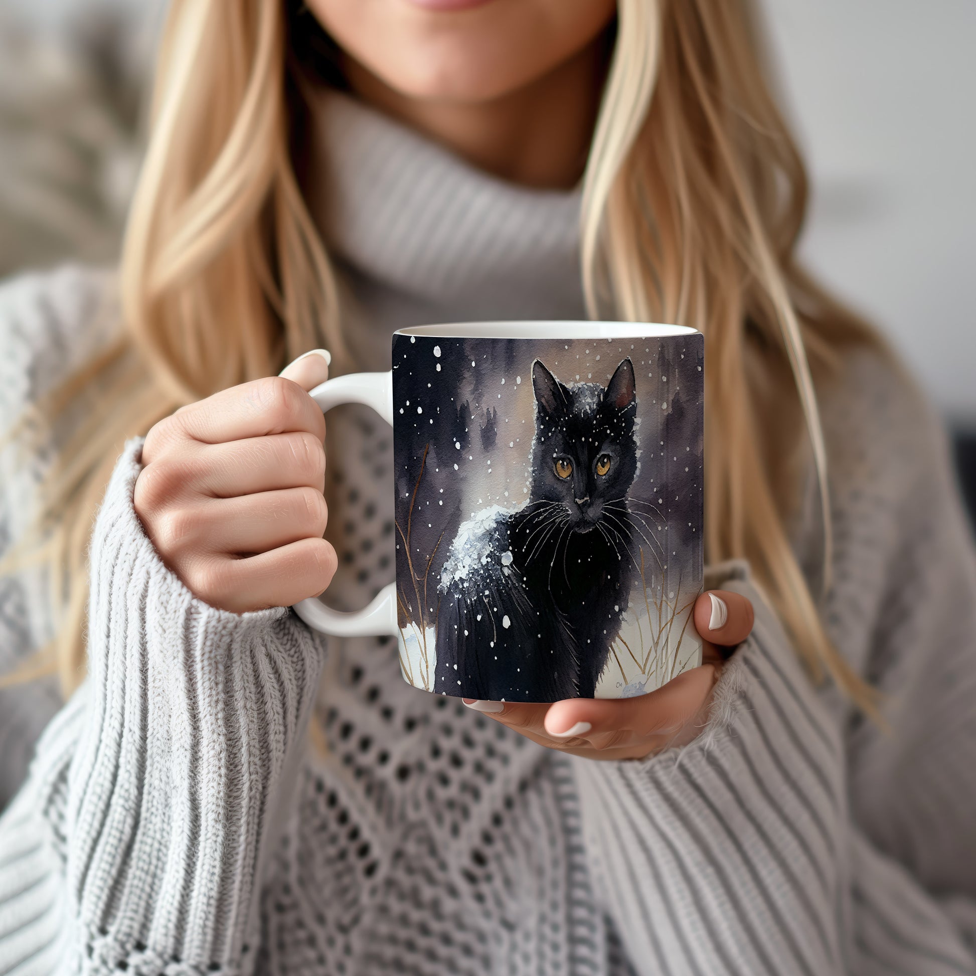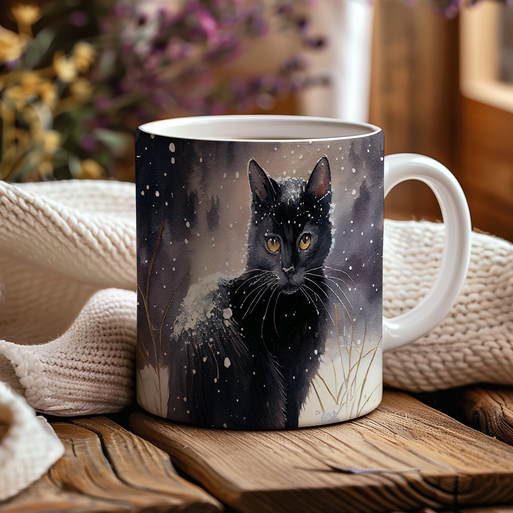 Keramický hrnek s motivem černé kočky v zasněžené krajině. Tento hrnek je ideální pro milovníky koček a skvělým dárkem pro přátele či rodinu. Materiál: keramika. Objem: 330 ml. Vhodné do myčky i mikrovlnky. Používání tohoto hrnku přináší radost a útulnost do každého dne.