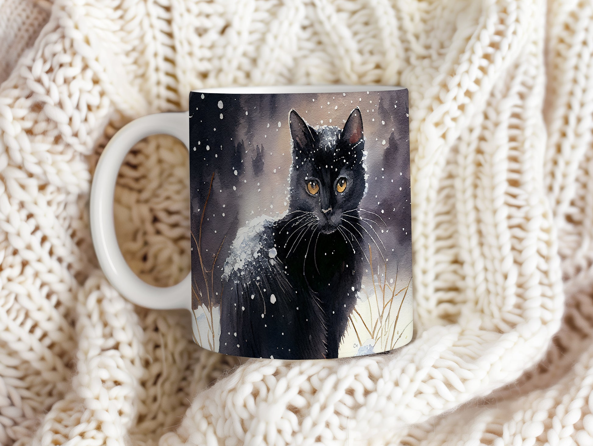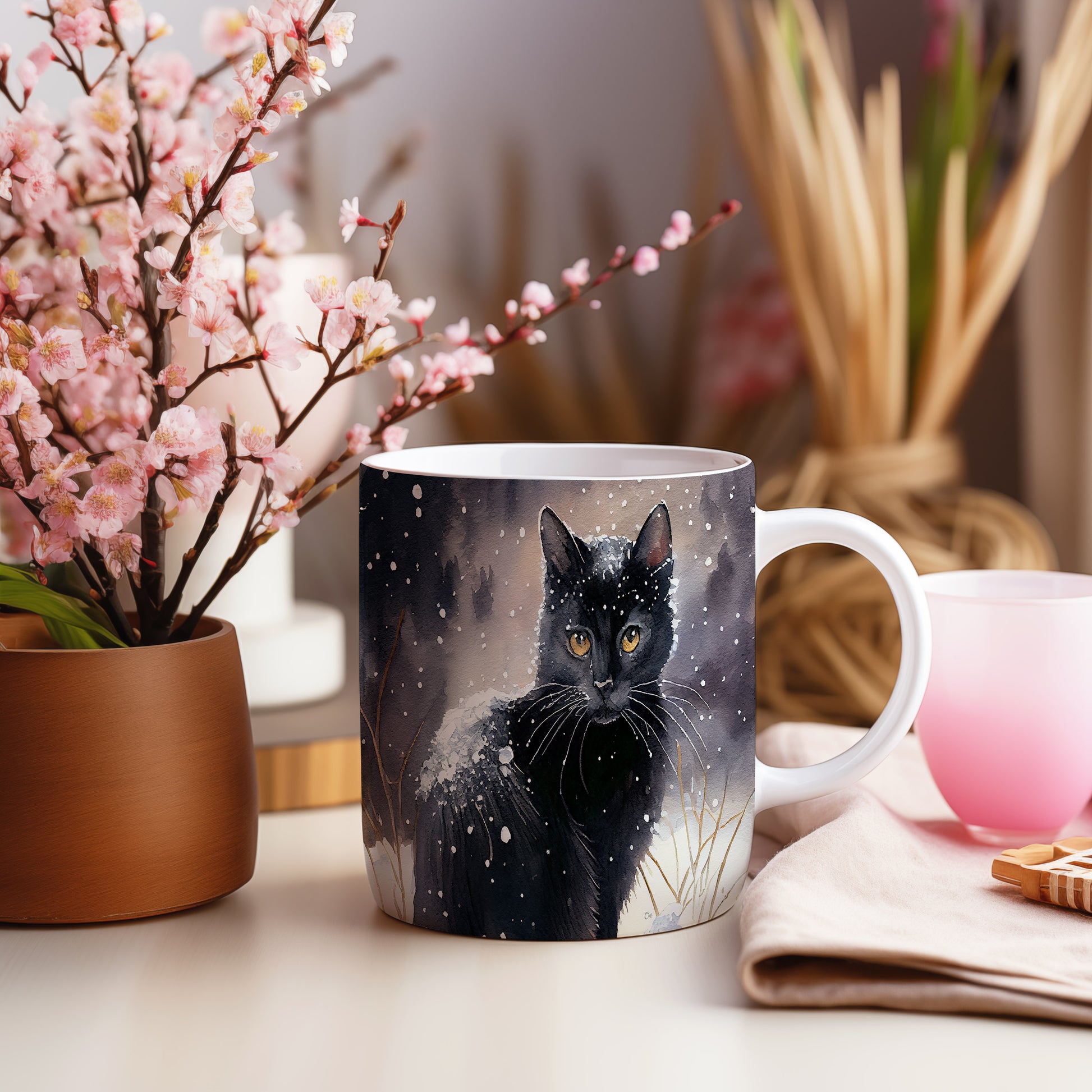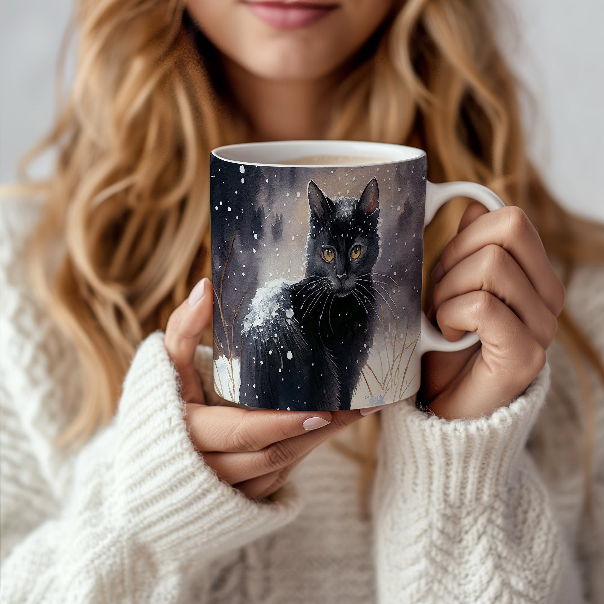 Keramický hrnek s motivem černé kočky v zasněžené krajině. Tento hrnek je ideální pro milovníky koček a skvělým dárkem pro přátele či rodinu. Materiál: keramika. Objem: 330 ml. Vhodné do myčky i mikrovlnky. Používání tohoto hrnku přináší radost a útulnost do každého dne.