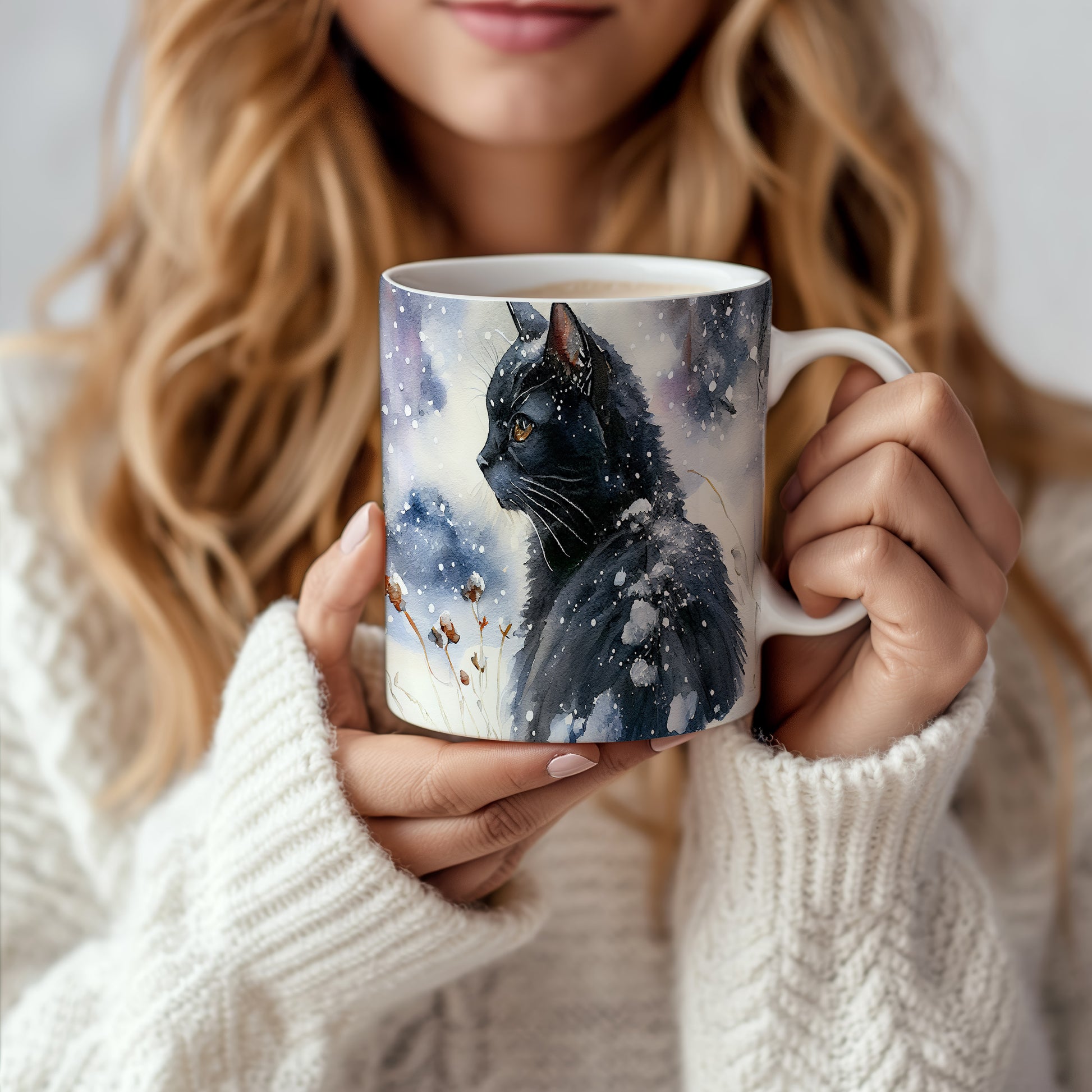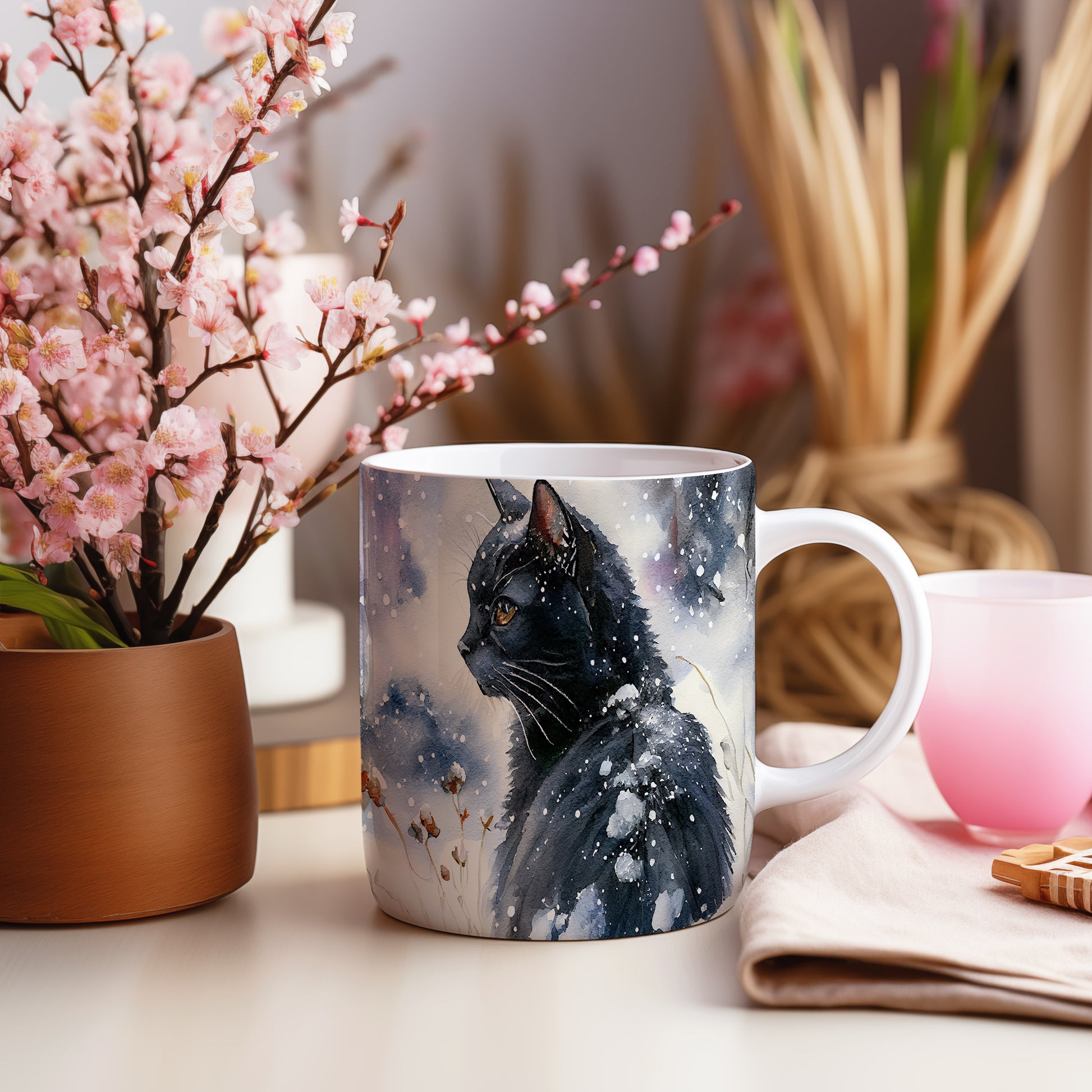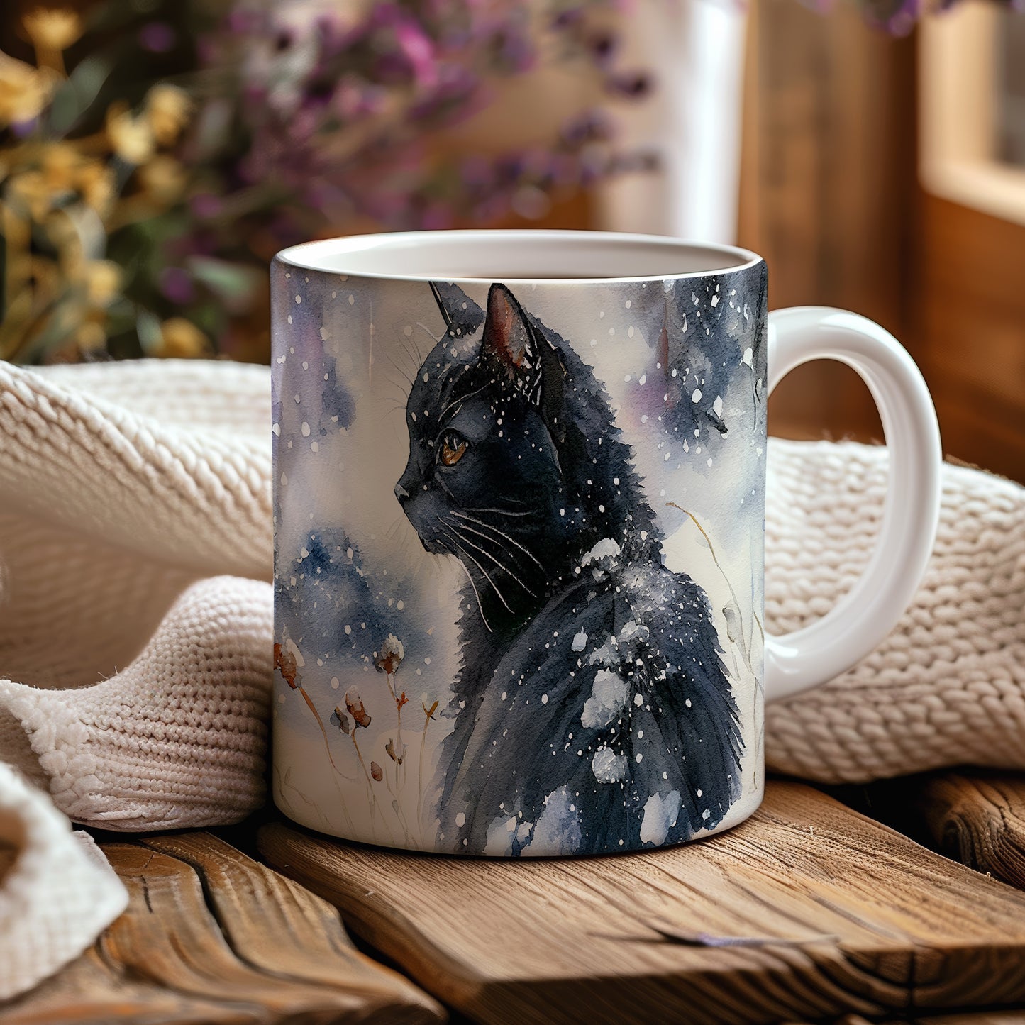 Hrnek s motivem černé kočky v zimní scenérii je elegantním kouskem pro každého milovníka těchto zvířat. Skvělý tip na dárek pro přátele nebo rodinu, kteří ocení krásu přírody. Materiál: keramika. Objem: 330 ml. Vhodné do myčky i mikrovlnky. Tento hrnek přináší radost z každého doušku a dodává osobitý styl vašemu pití.
