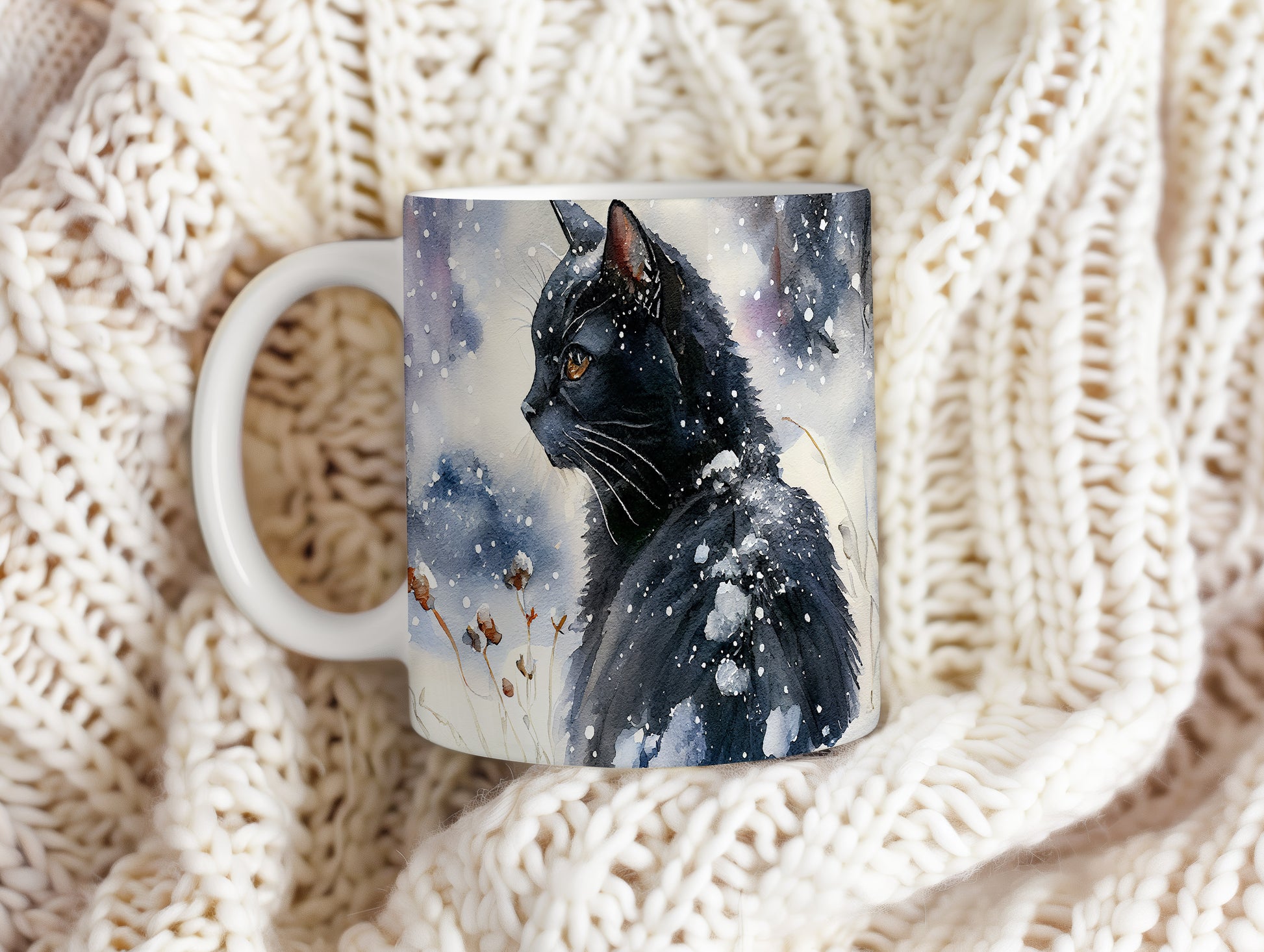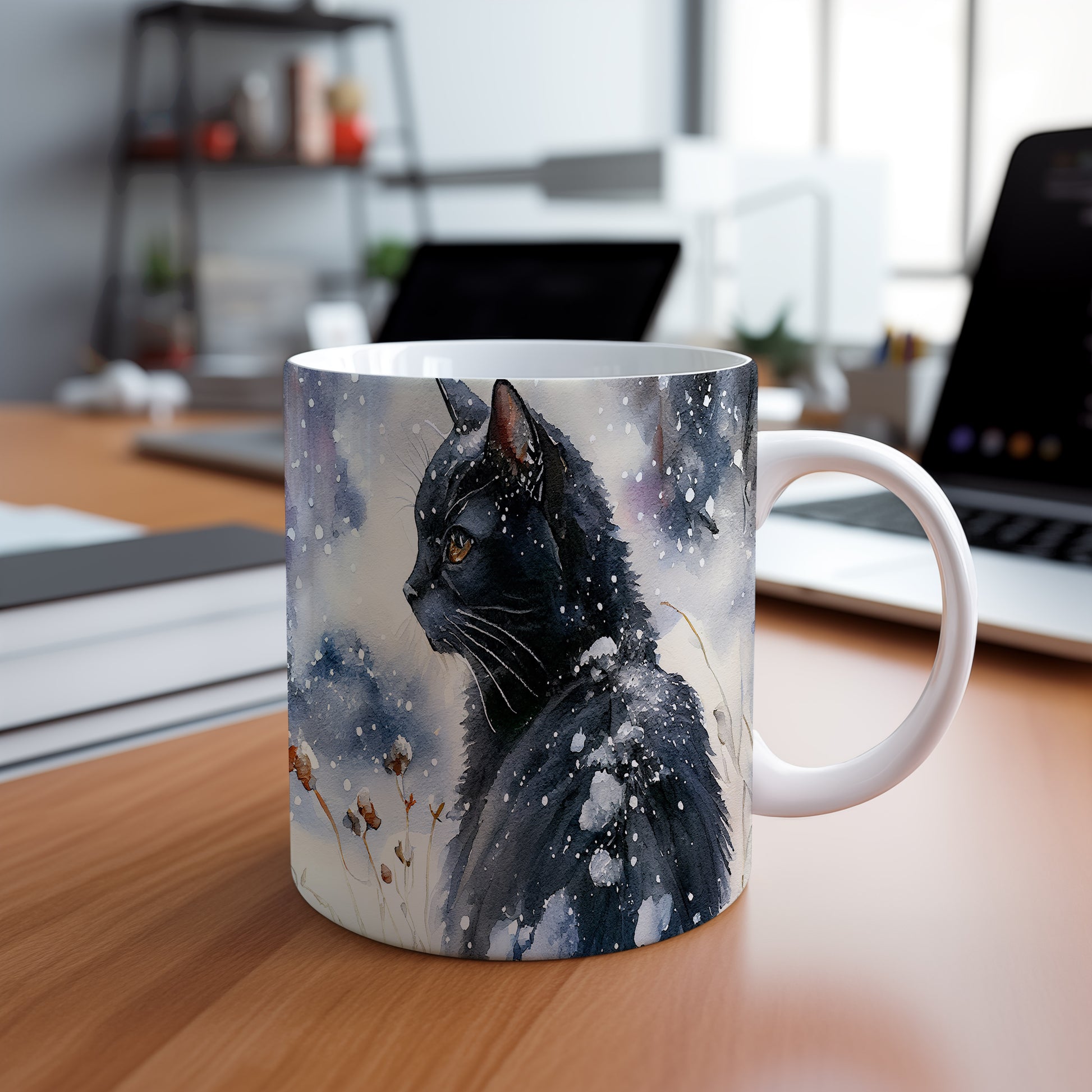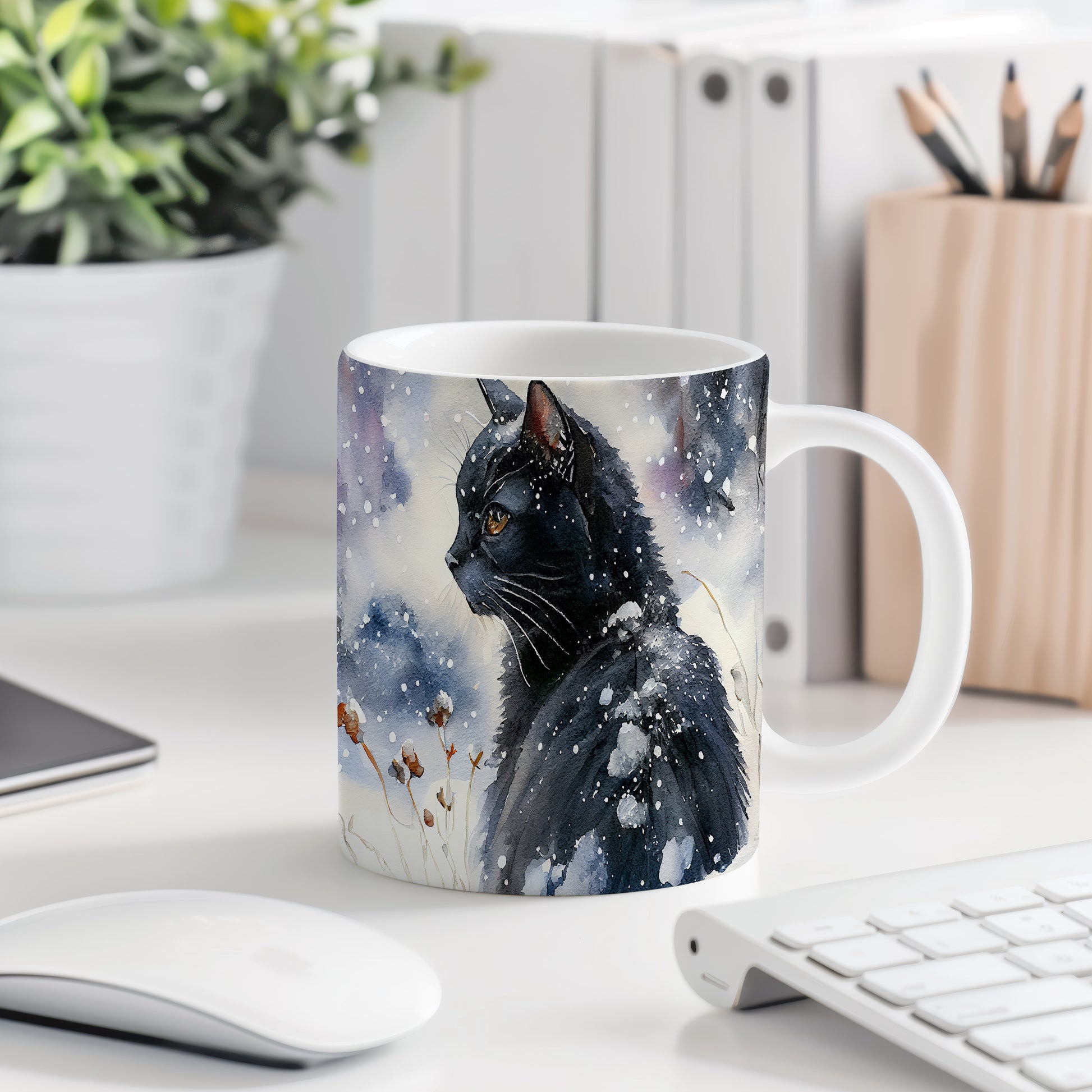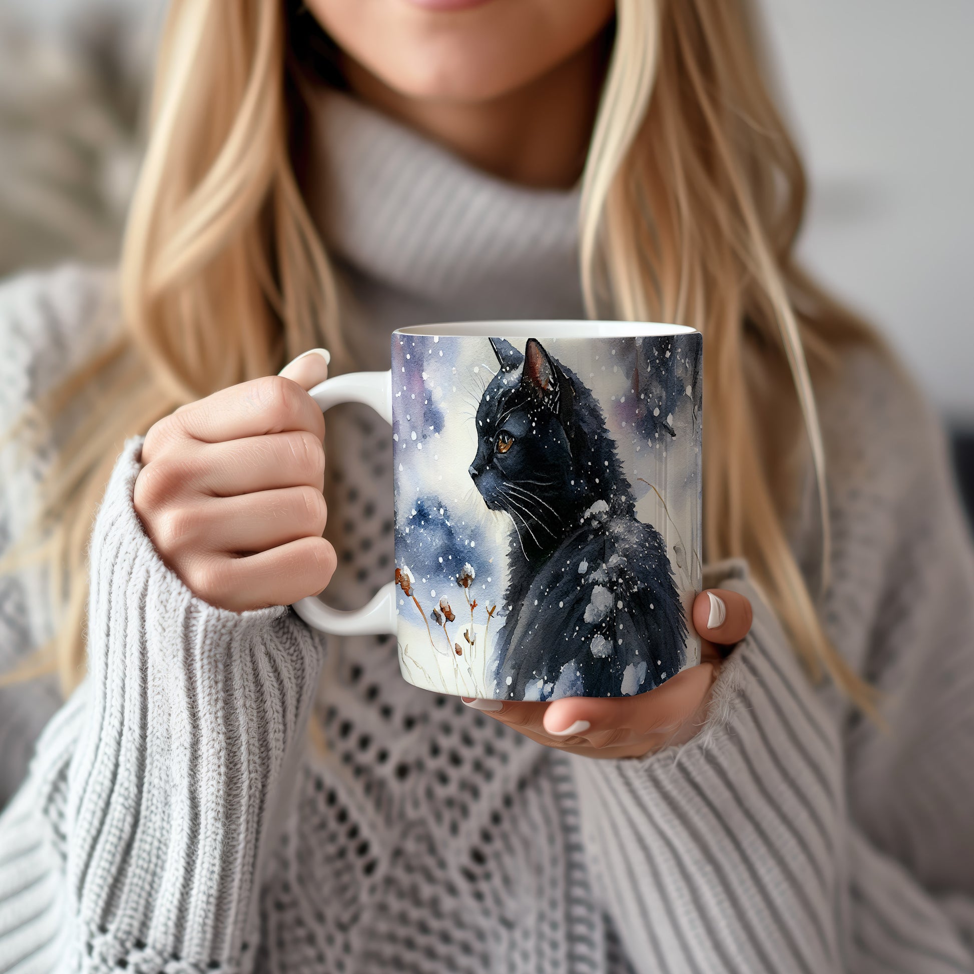 Hrnek s motivem černé kočky v zimní scenérii je elegantním kouskem pro každého milovníka těchto zvířat. Skvělý tip na dárek pro přátele nebo rodinu, kteří ocení krásu přírody. Materiál: keramika. Objem: 330 ml. Vhodné do myčky i mikrovlnky. Tento hrnek přináší radost z každého doušku a dodává osobitý styl vašemu pití.
