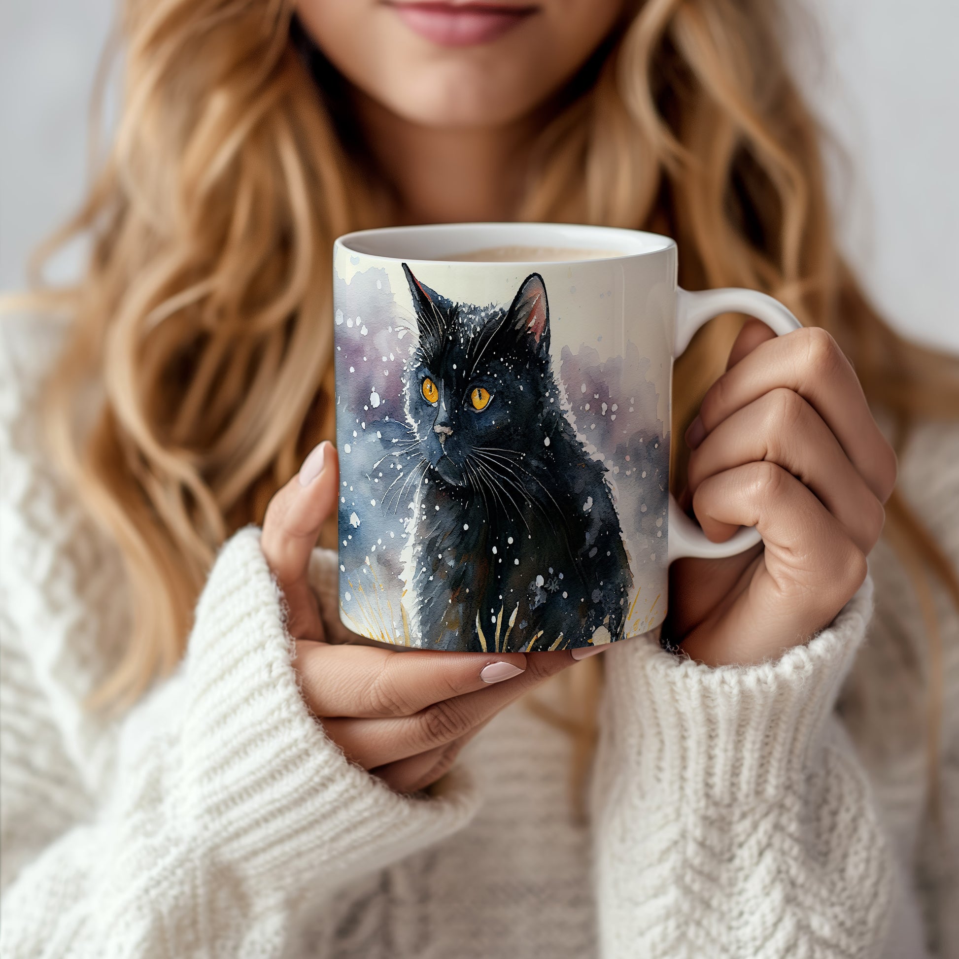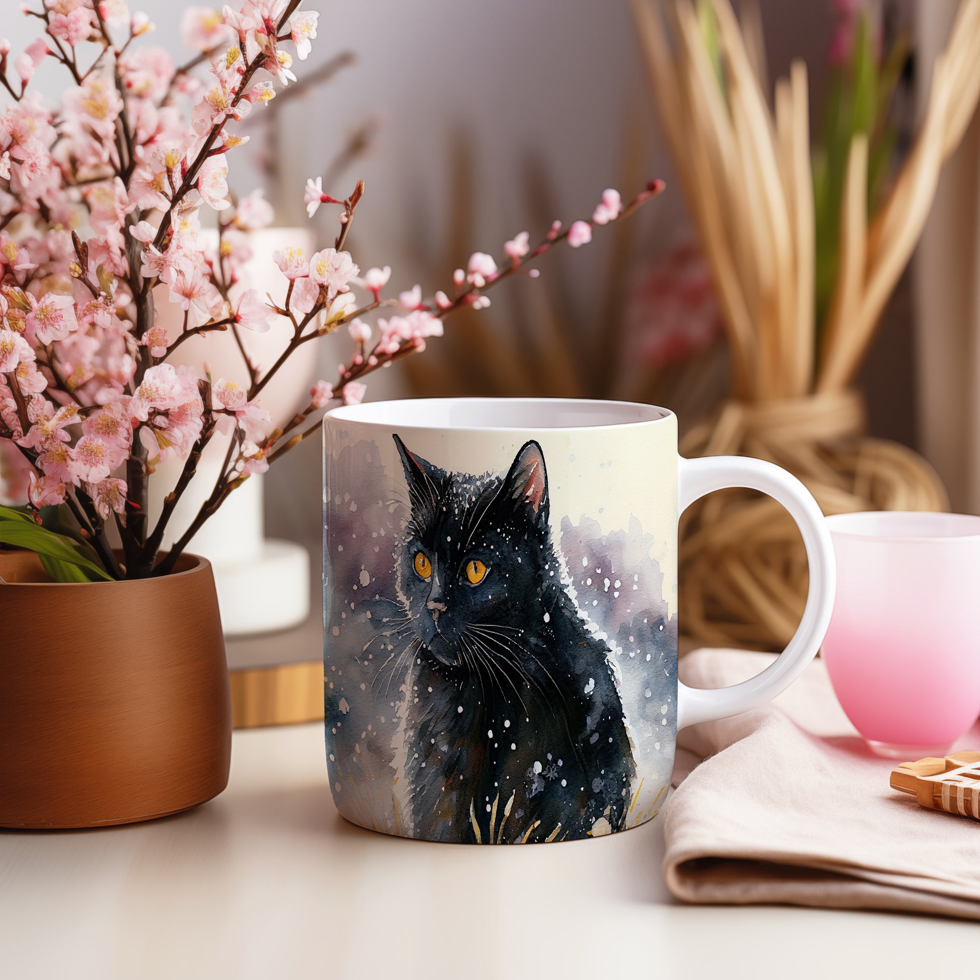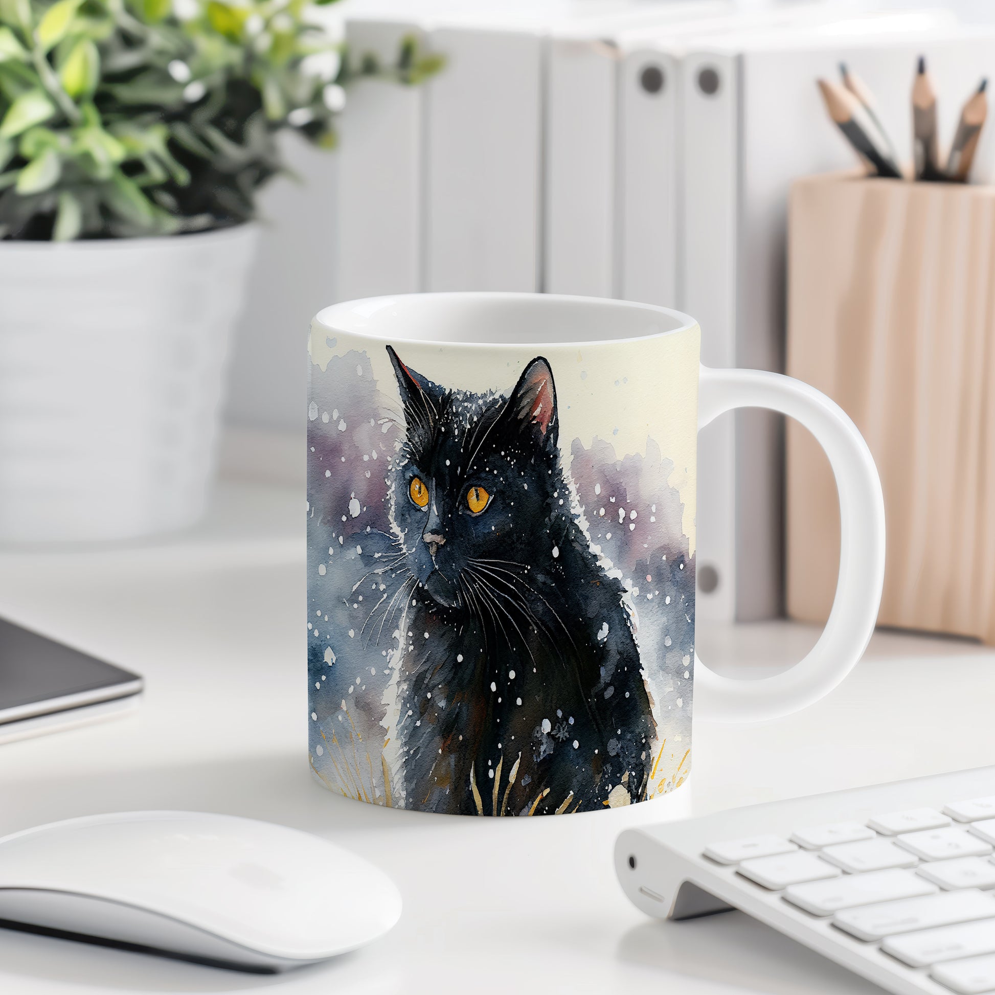 Hrnek s motivem černé kočky ve sněhu je stylovým kouskem pro milovníky těchto zvířat. Tento hrnek potěší každého, kdo má rád kočky a zimní atmosféru, a skvěle se hodí jako dárek. Materiál: keramika. Objem: 330 ml. Vhodné do myčky i mikrovlnky. Používání tohoto hrnku přináší radost z každého doušku horkého nápoje.