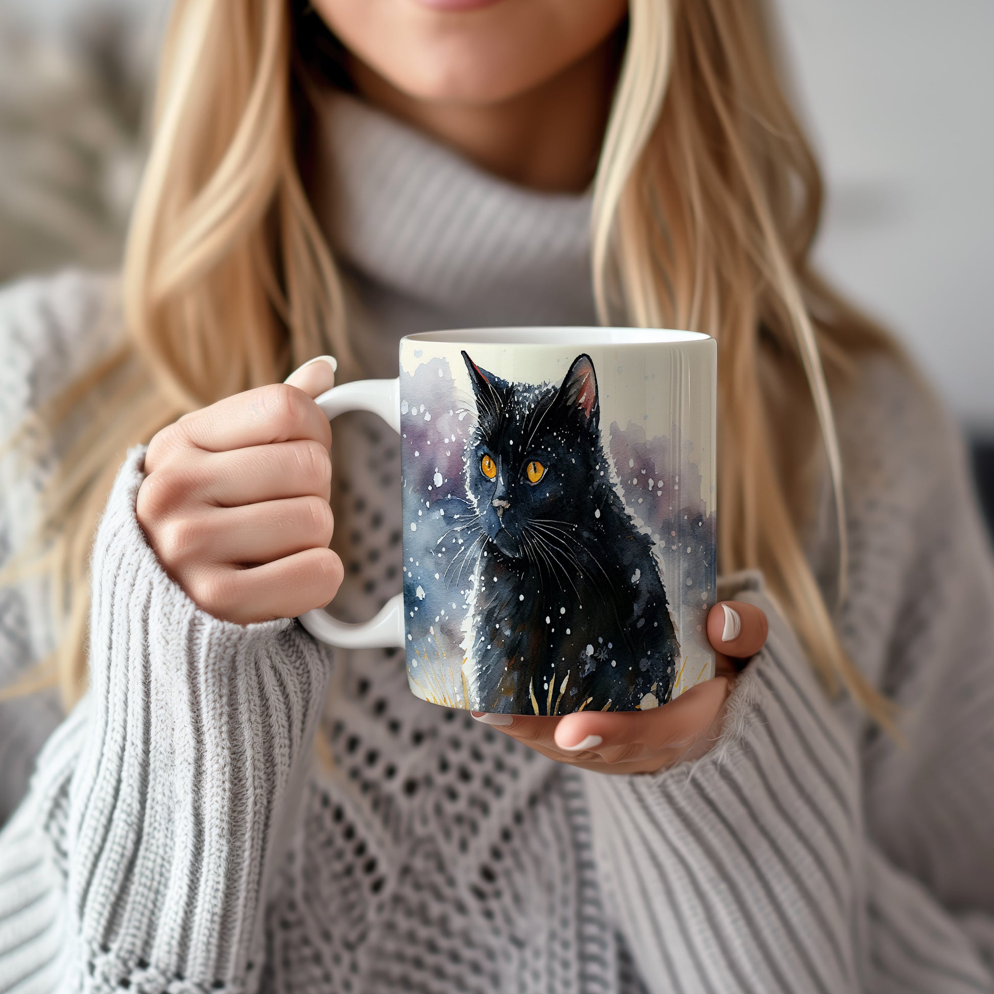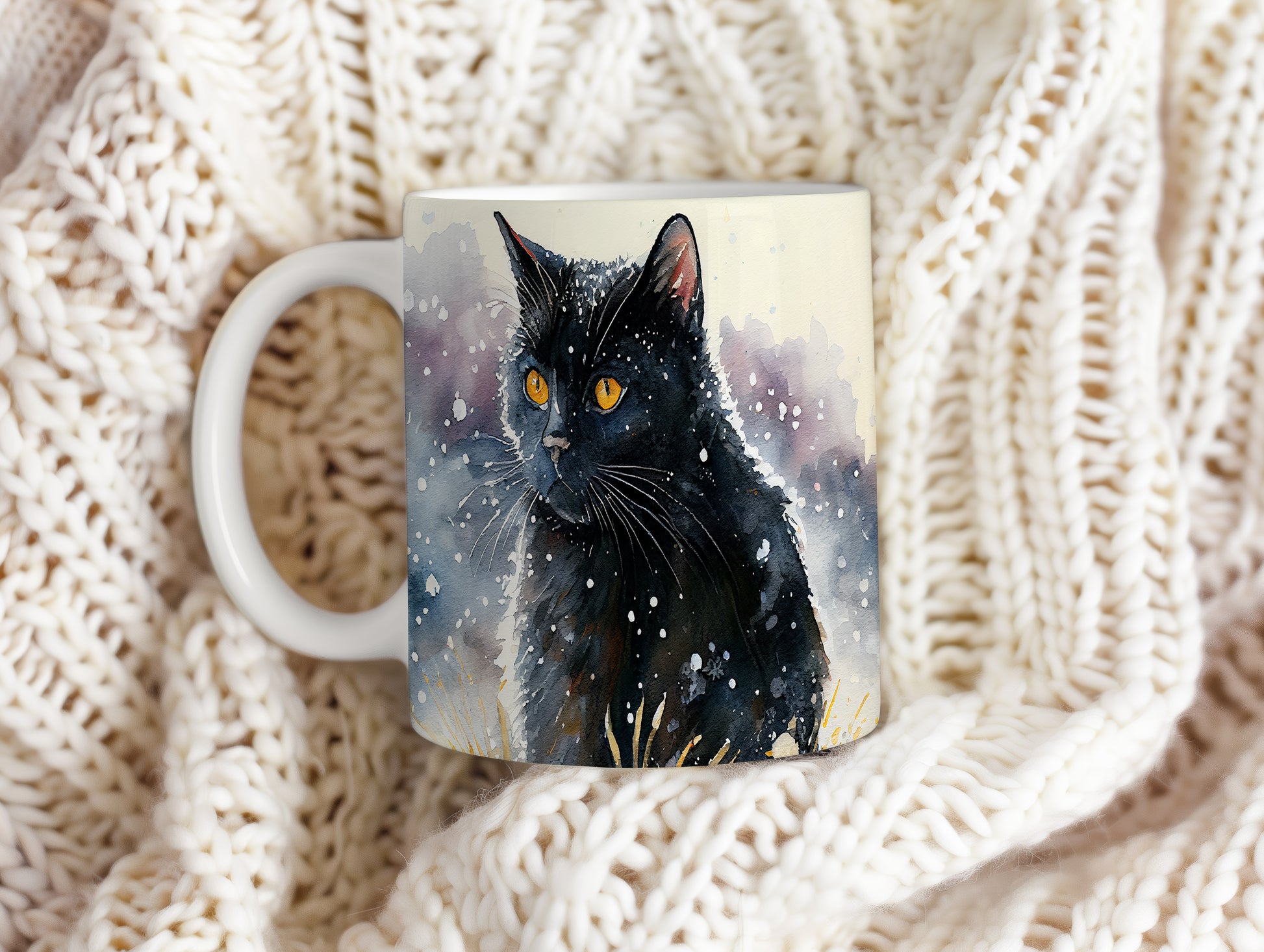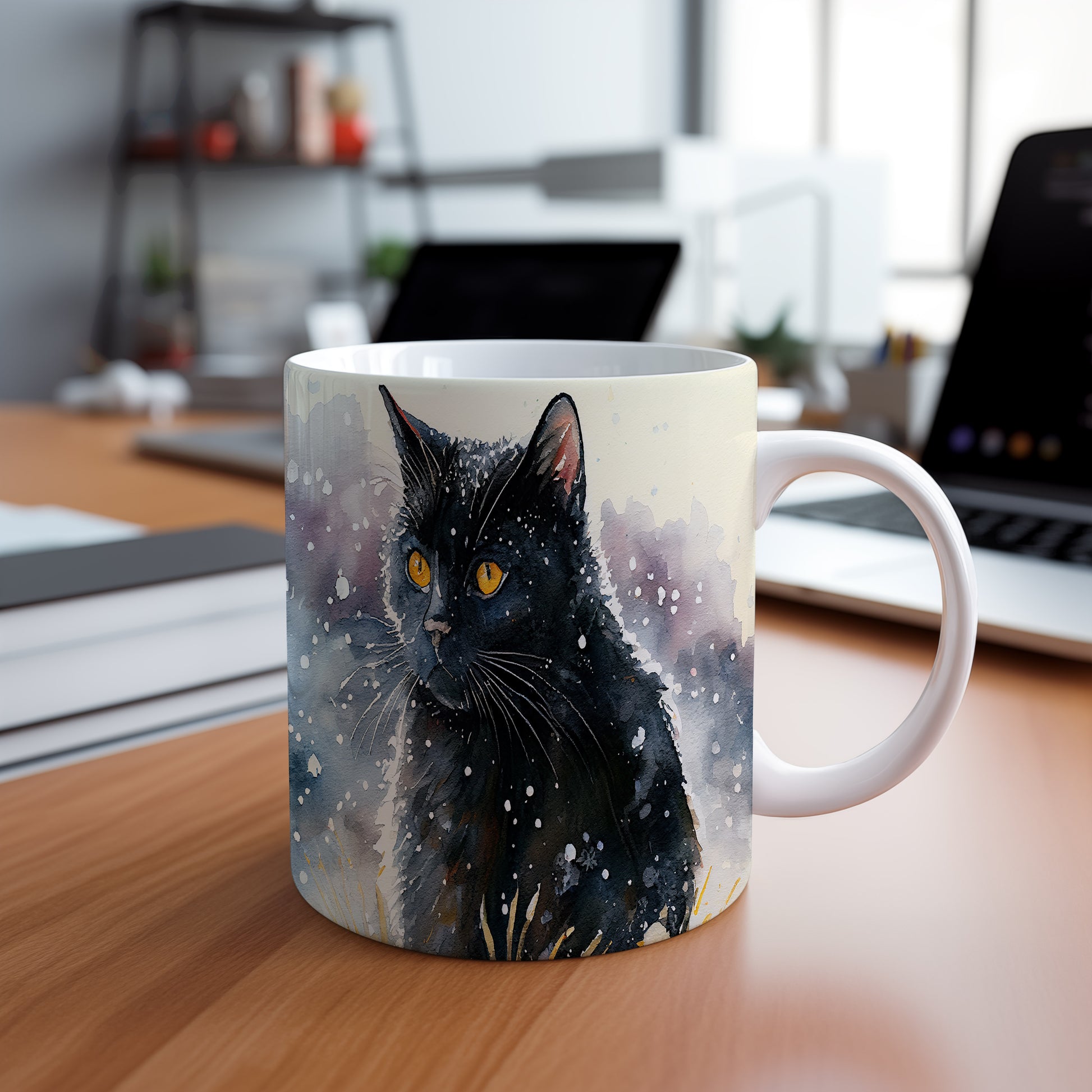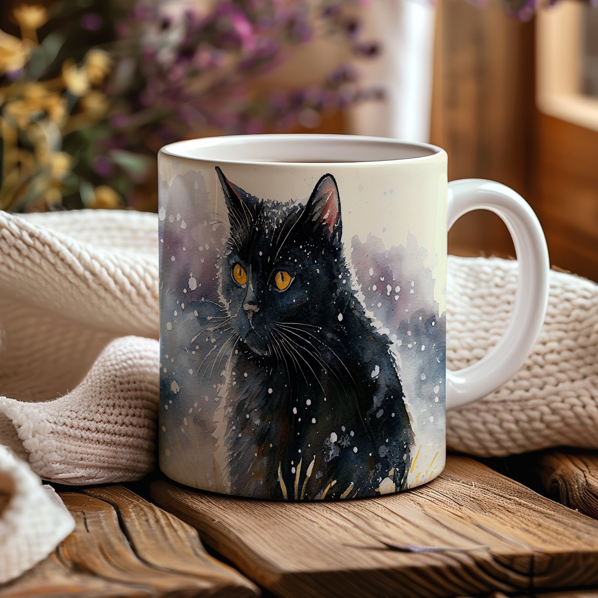 Hrnek s motivem černé kočky ve sněhu je stylovým kouskem pro milovníky těchto zvířat. Tento hrnek potěší každého, kdo má rád kočky a zimní atmosféru, a skvěle se hodí jako dárek. Materiál: keramika. Objem: 330 ml. Vhodné do myčky i mikrovlnky. Používání tohoto hrnku přináší radost z každého doušku horkého nápoje.