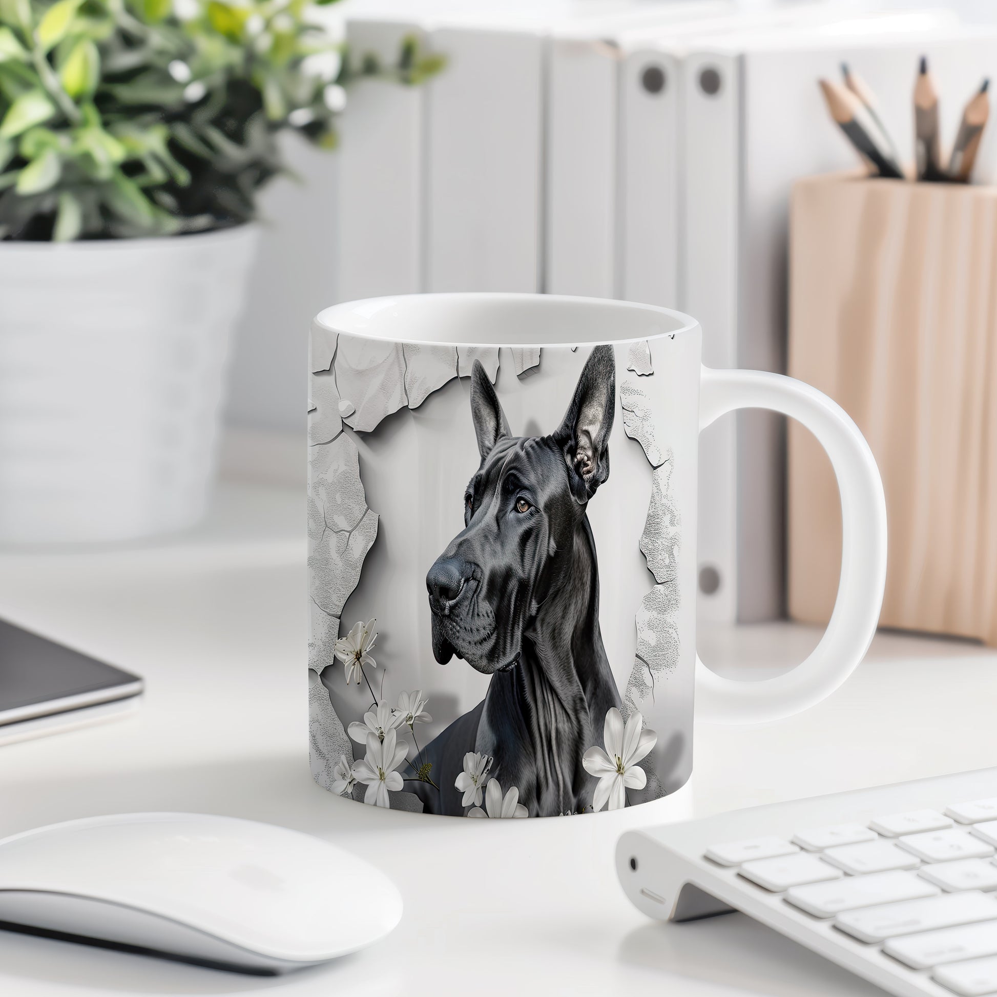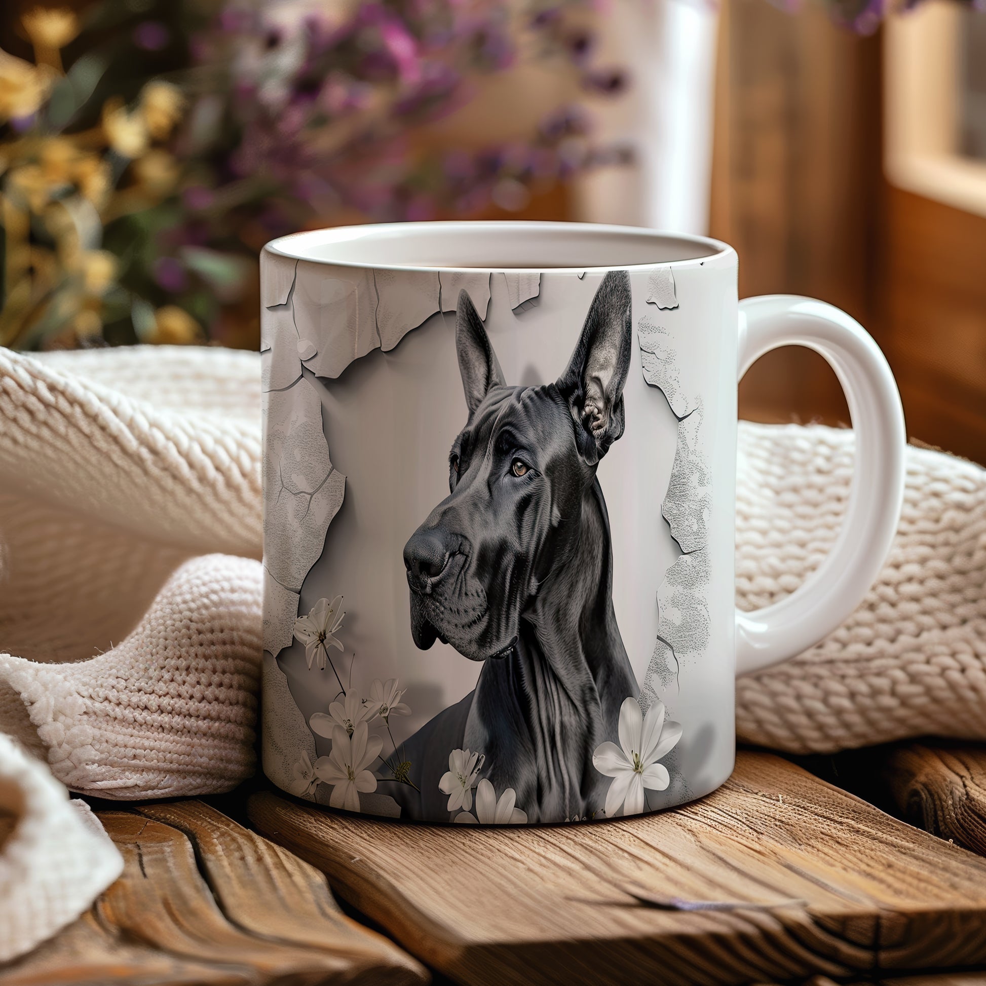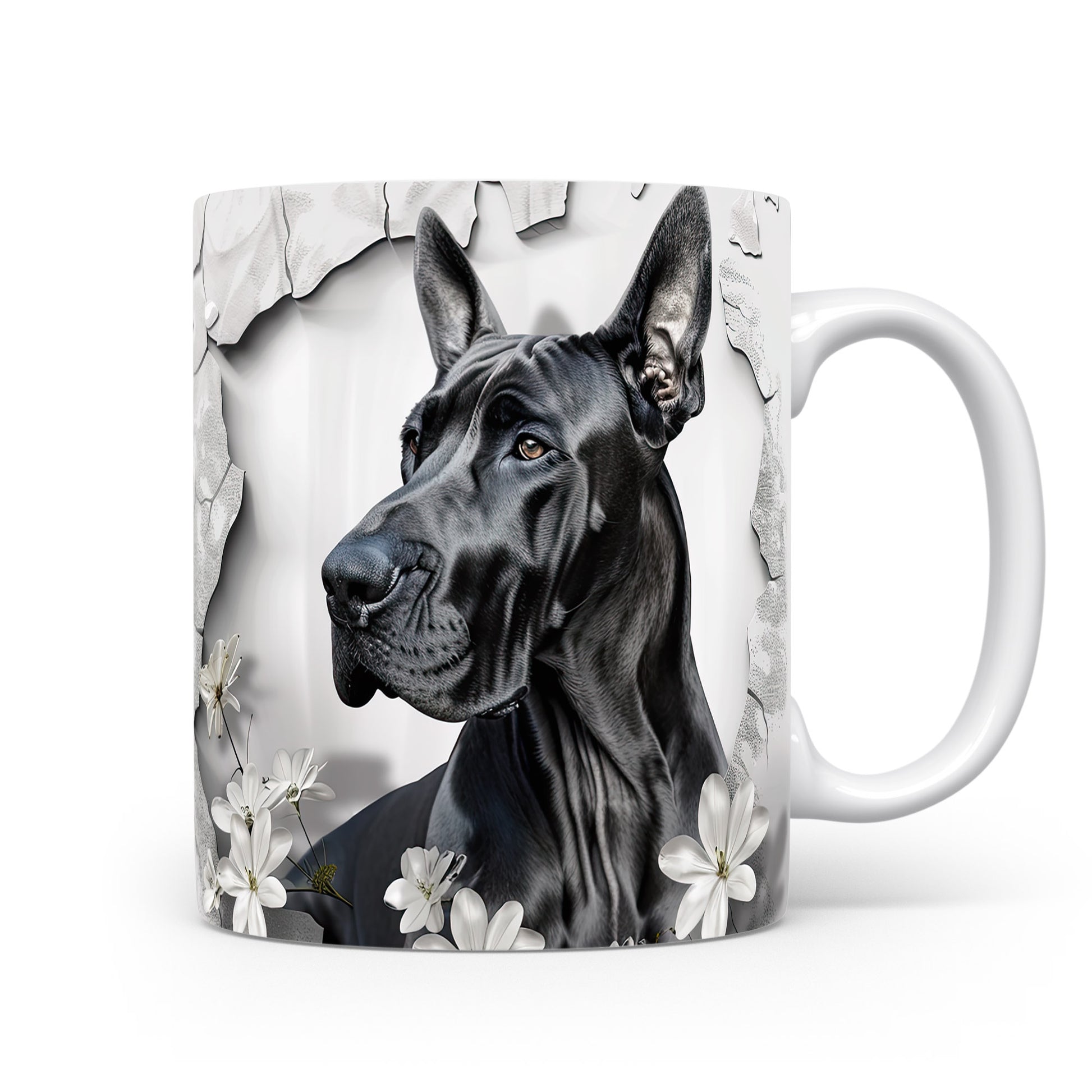 Tento keramický hrnek s realistickým motivem černého doga a bílými květy je skvělou volbou pro milovníky psů a přírody. Je ideálním dárkem pro přátele nebo rodinu, kteří ocení originální design. Materiál: keramika. Objem: 330 ml. Vhodné do myčky i mikrovlnky. Používání tohoto hrnku přináší radost z každého doušku oblíbeného nápoje.