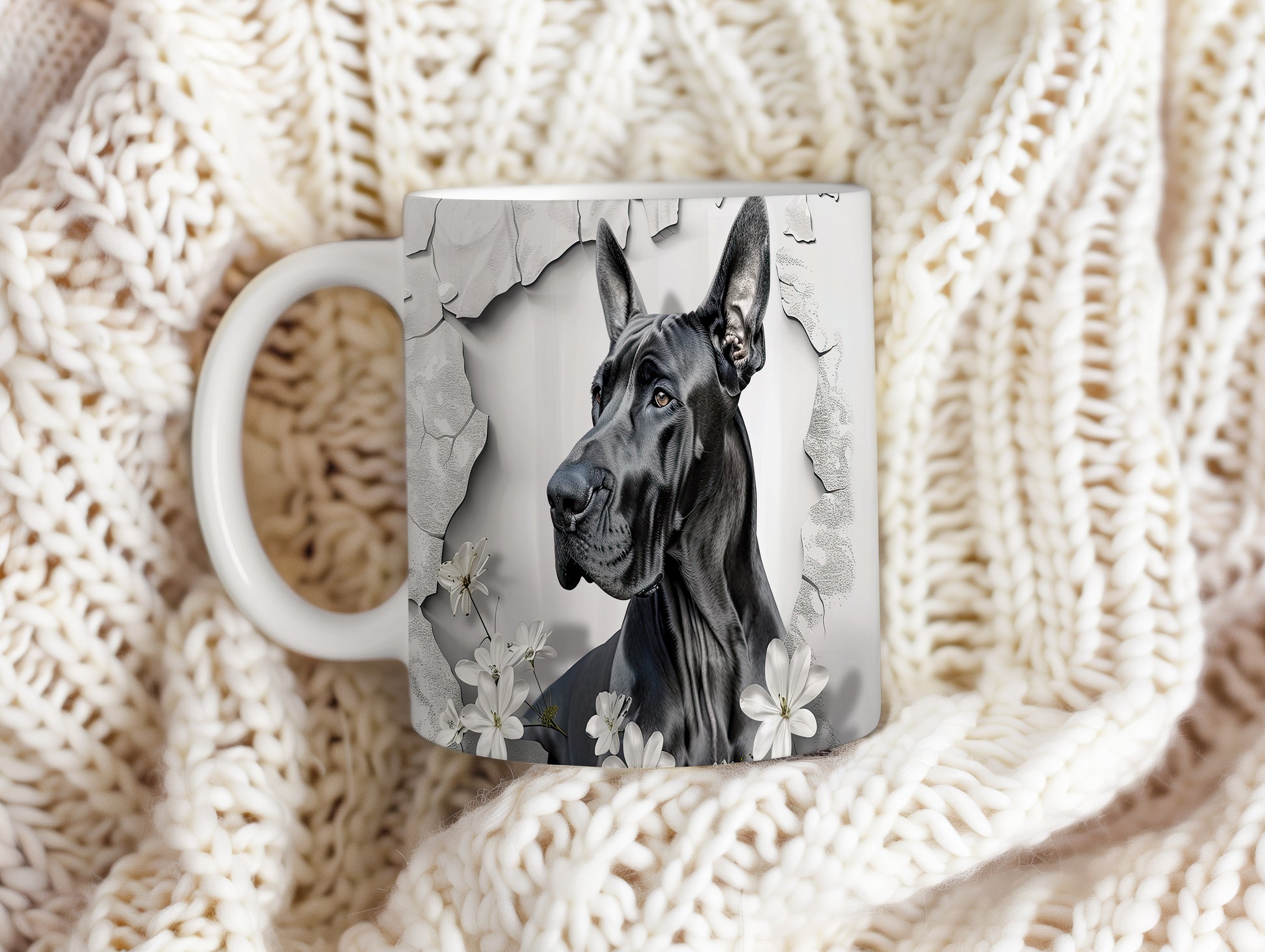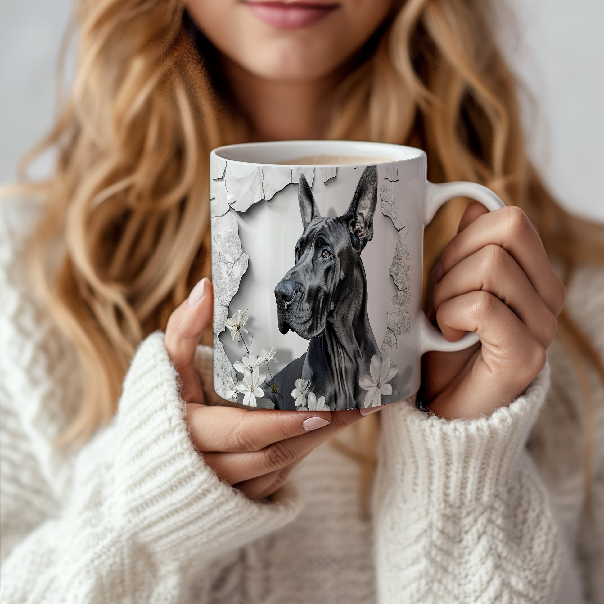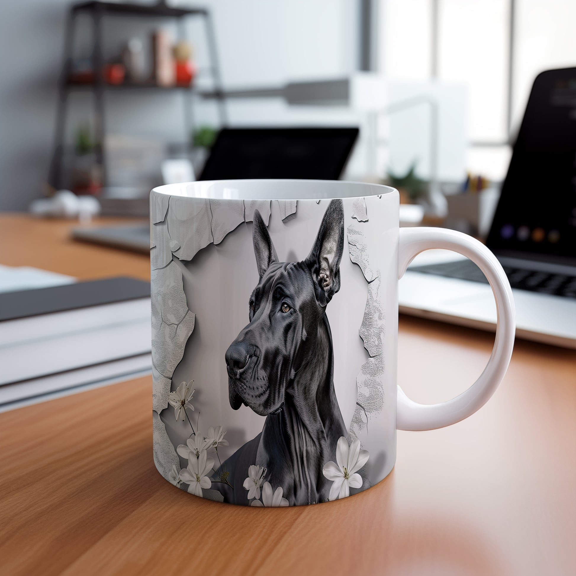 Tento keramický hrnek s realistickým motivem černého doga a bílými květy je skvělou volbou pro milovníky psů a přírody. Je ideálním dárkem pro přátele nebo rodinu, kteří ocení originální design. Materiál: keramika. Objem: 330 ml. Vhodné do myčky i mikrovlnky. Používání tohoto hrnku přináší radost z každého doušku oblíbeného nápoje.