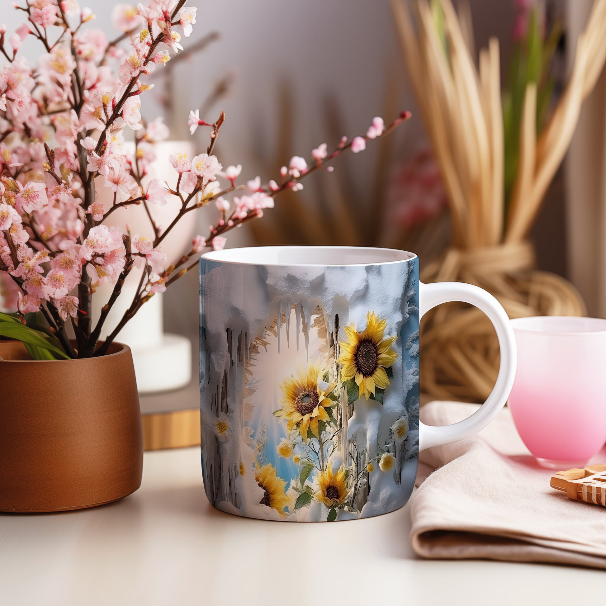 Tento keramický hrnek je zdobený motivem černých slunečnic, které přinášejí do vašeho domova kousek přírody. Je ideální pro milovníky květin a přírodních motivů, skvělý tip na dárek pro přátele nebo rodinu. Materiál: keramika. Objem: 330 ml. Vhodné do myčky i mikrovlnky. Používání tohoto hrnku přináší radost z každého doušku.