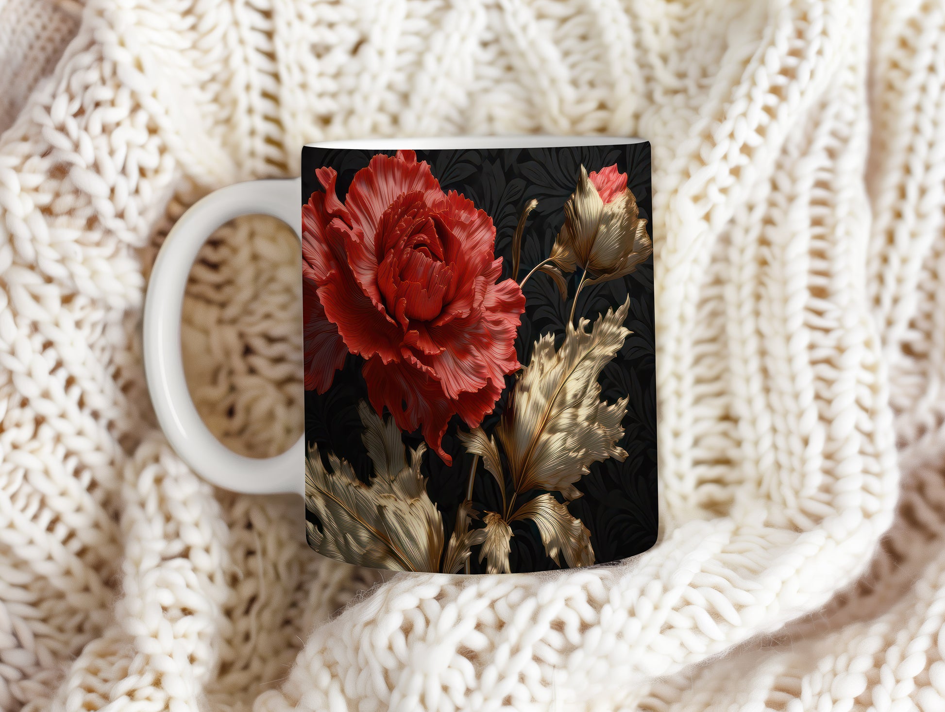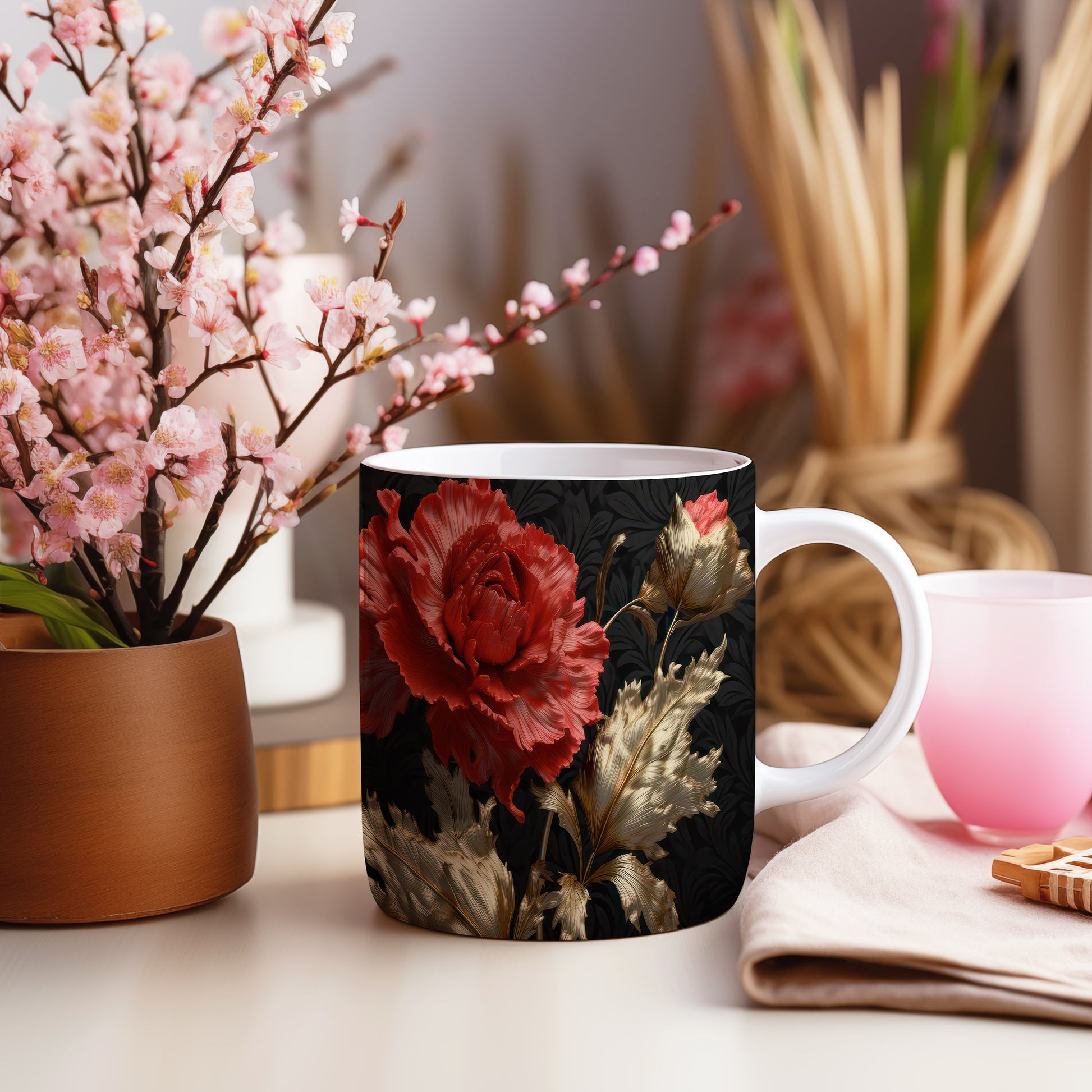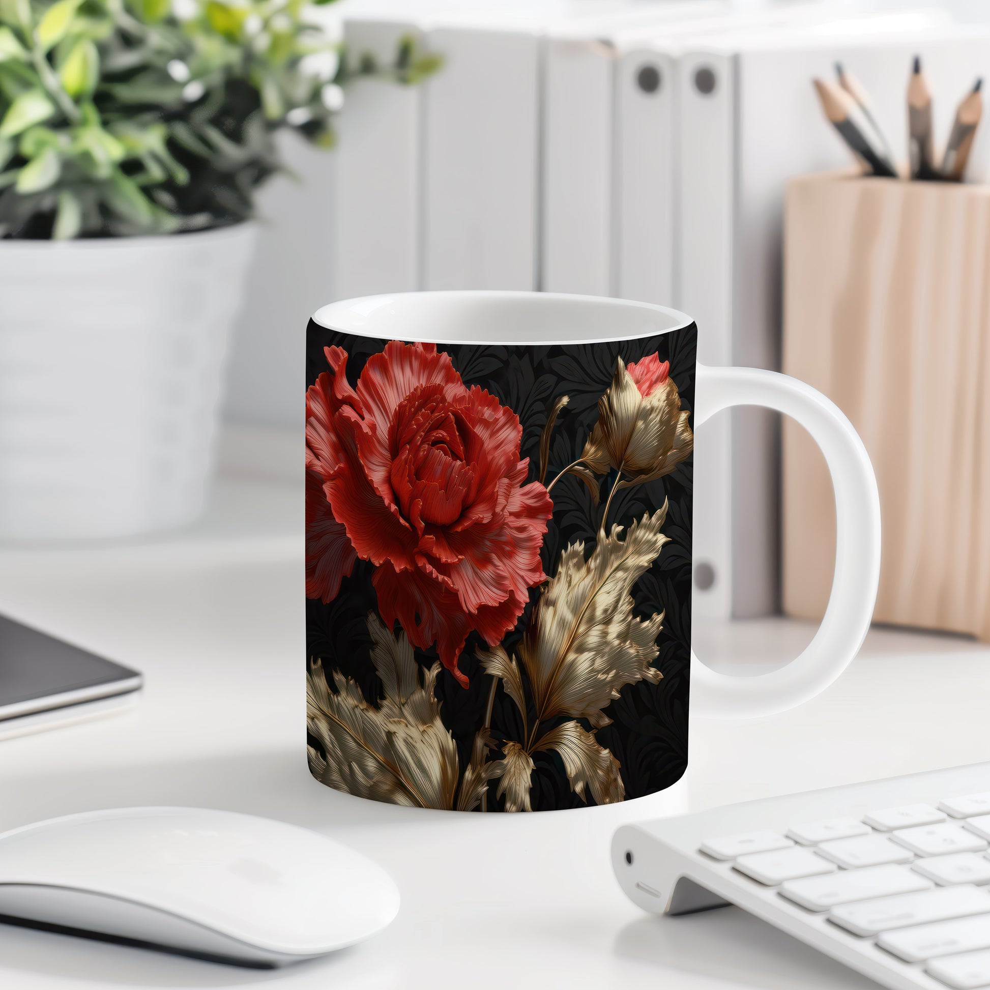 Tento keramický hrnek zobrazuje nádhernou červenou růži s elegantním vzorem. Je ideální pro milovníky květin a skvělým dárkem pro vaše blízké. Materiál: keramika. Objem: 330 ml. Vhodné do myčky i mikrovlnky. Užívejte si svůj oblíbený nápoj s tímto stylovým hrnkem.