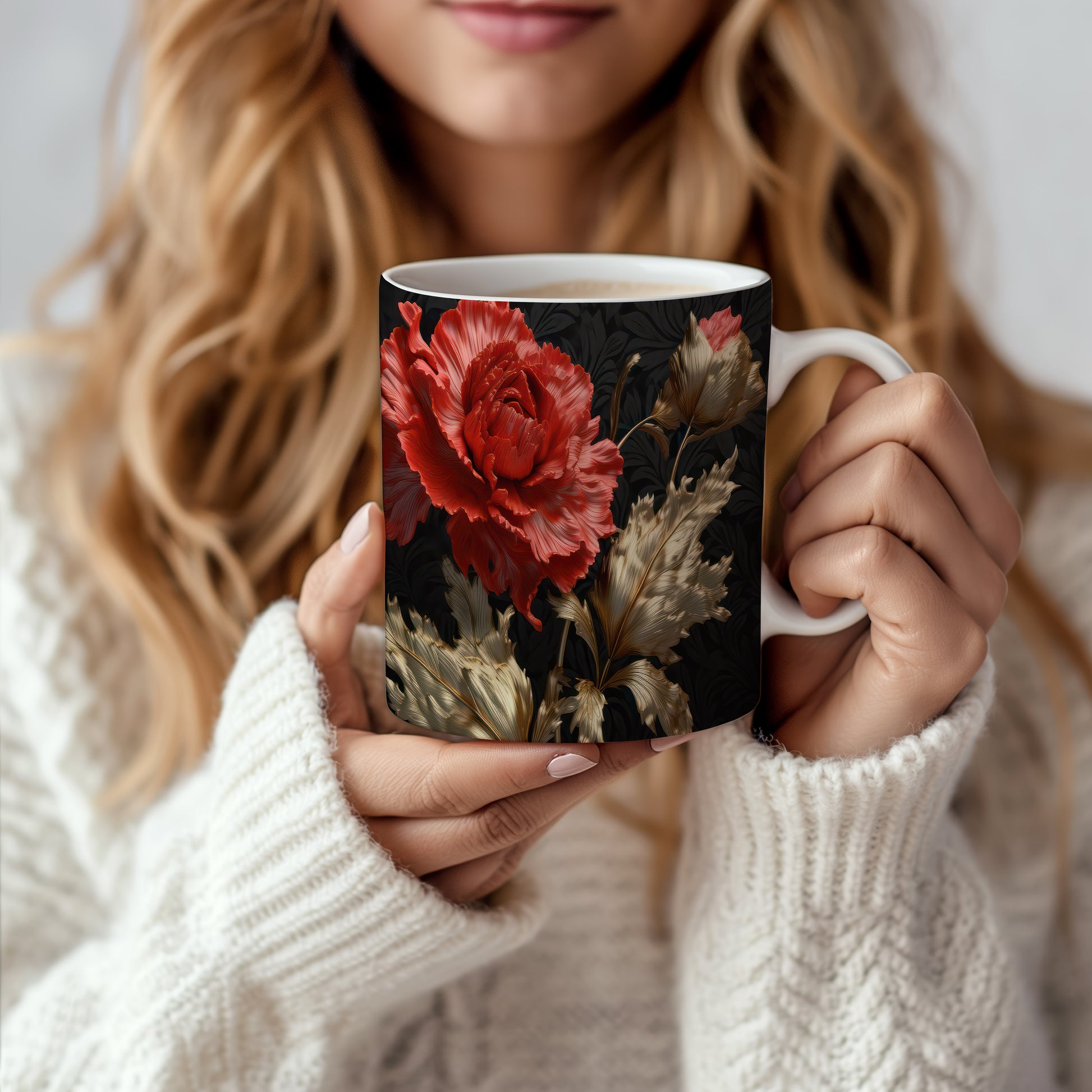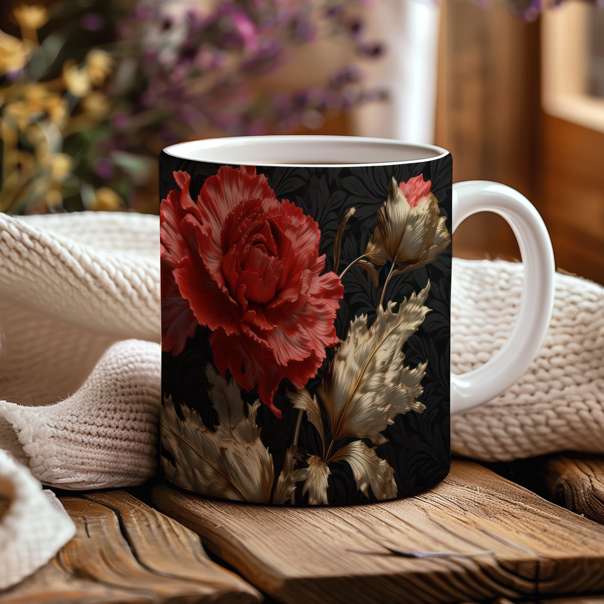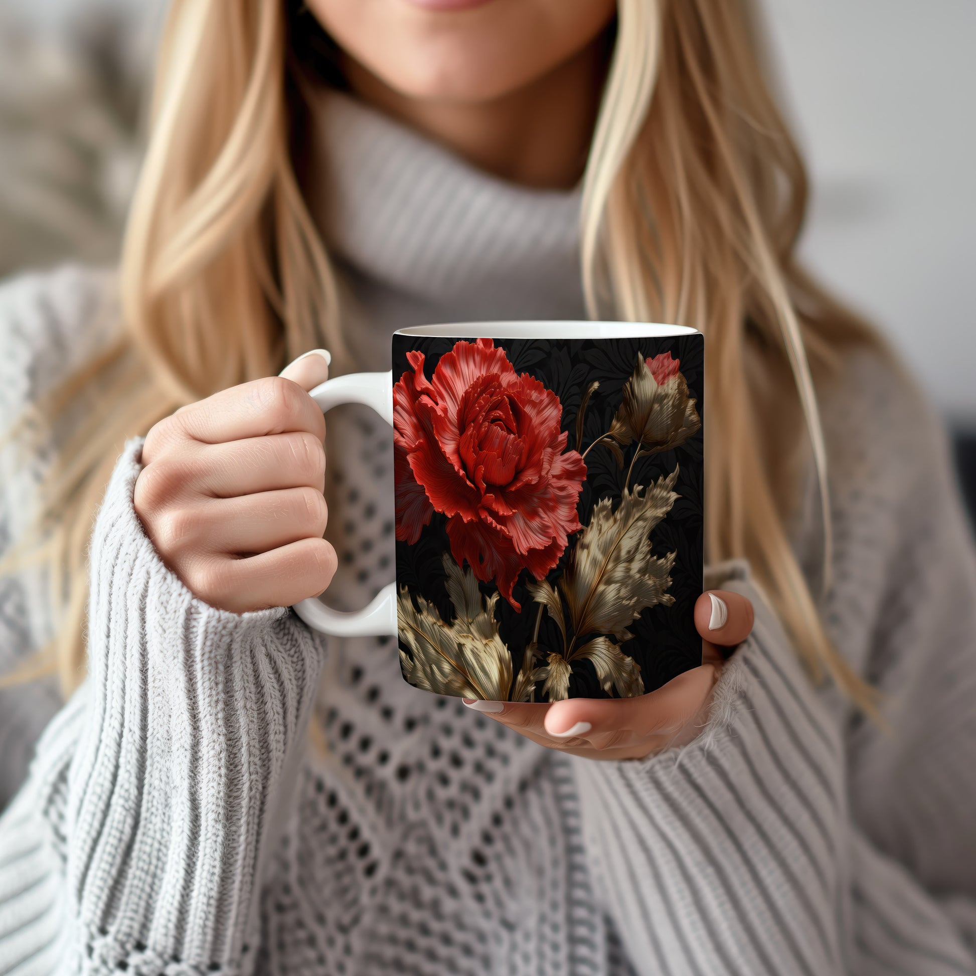 Tento keramický hrnek zobrazuje nádhernou červenou růži s elegantním vzorem. Je ideální pro milovníky květin a skvělým dárkem pro vaše blízké. Materiál: keramika. Objem: 330 ml. Vhodné do myčky i mikrovlnky. Užívejte si svůj oblíbený nápoj s tímto stylovým hrnkem.