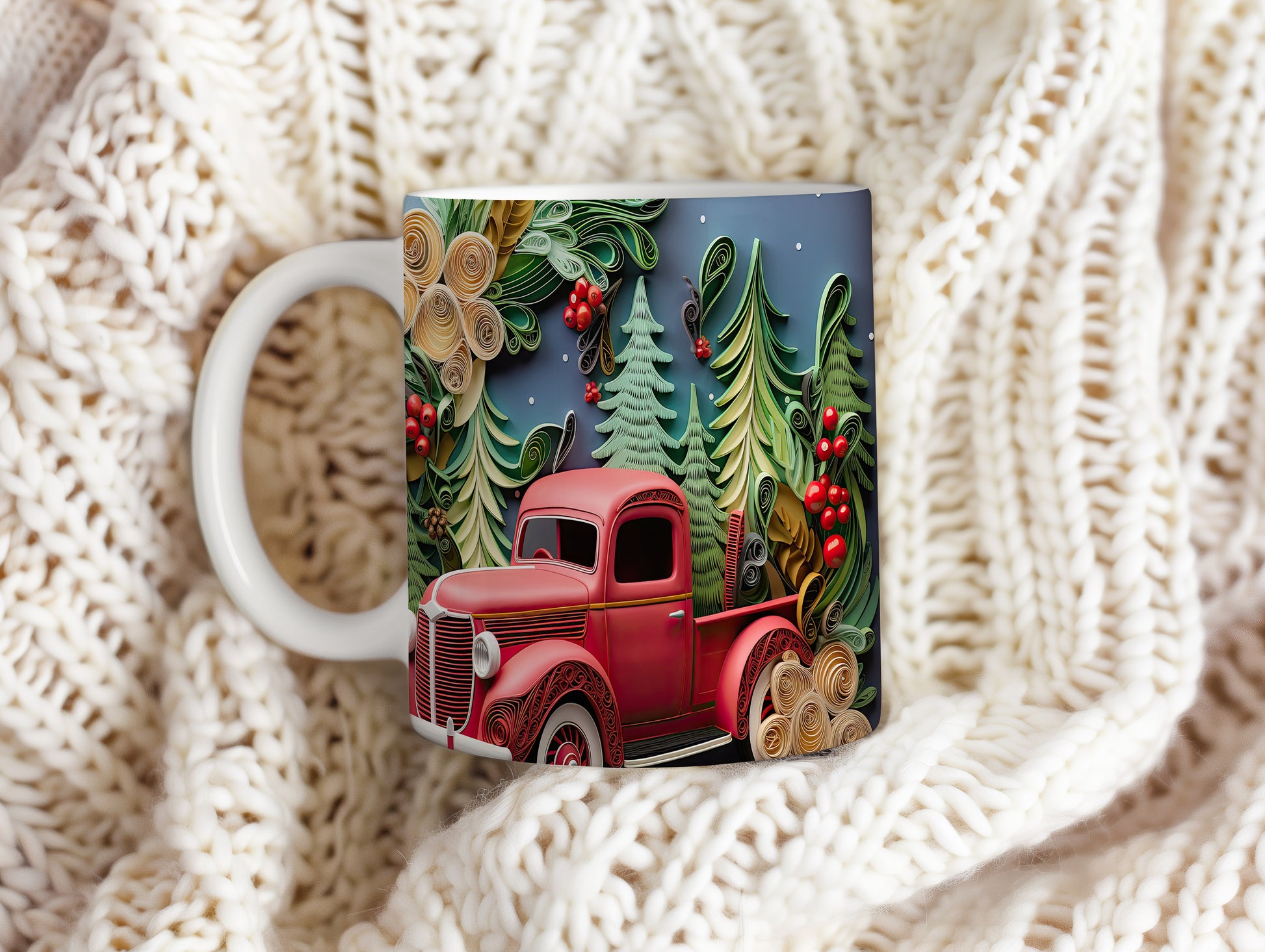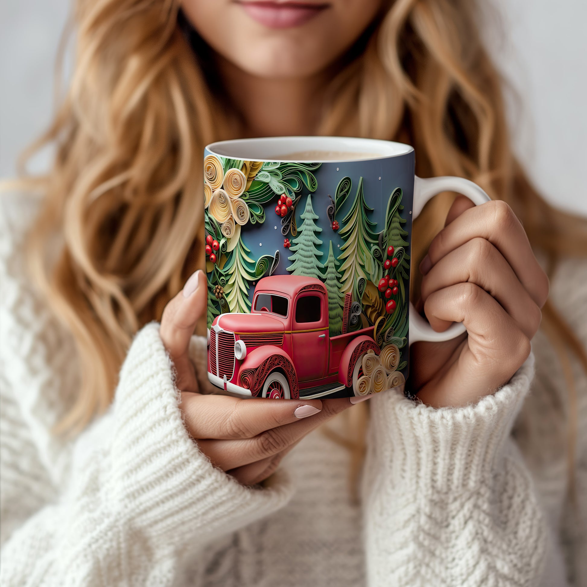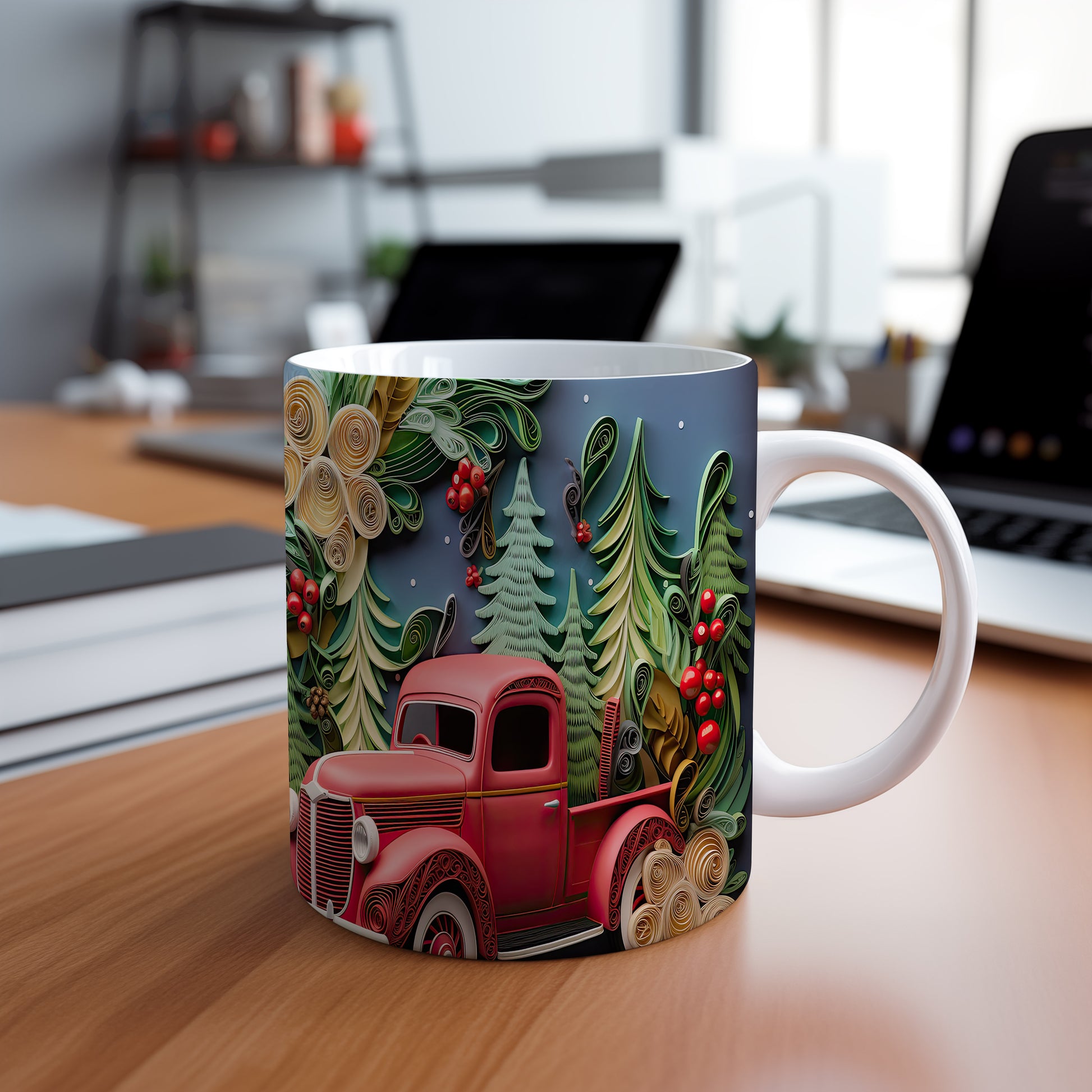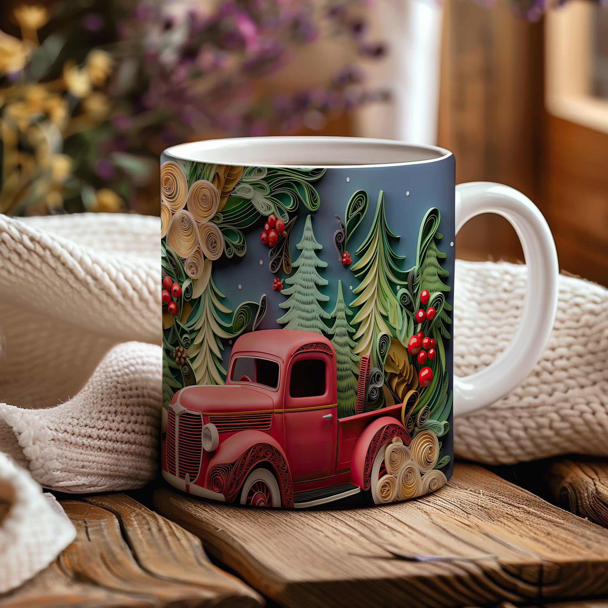 Tento hrnek zobrazuje červený retro truck obklopený zelenými stromy a vánočními detaily. Je ideální pro milovníky přírody a skvělým dárkem pro přátele na Vánoce. Materiál: keramika. Objem: 330 ml. Vhodné do myčky i mikrovlnky. Užijte si každé sousto s tímto stylovým hrnkem.