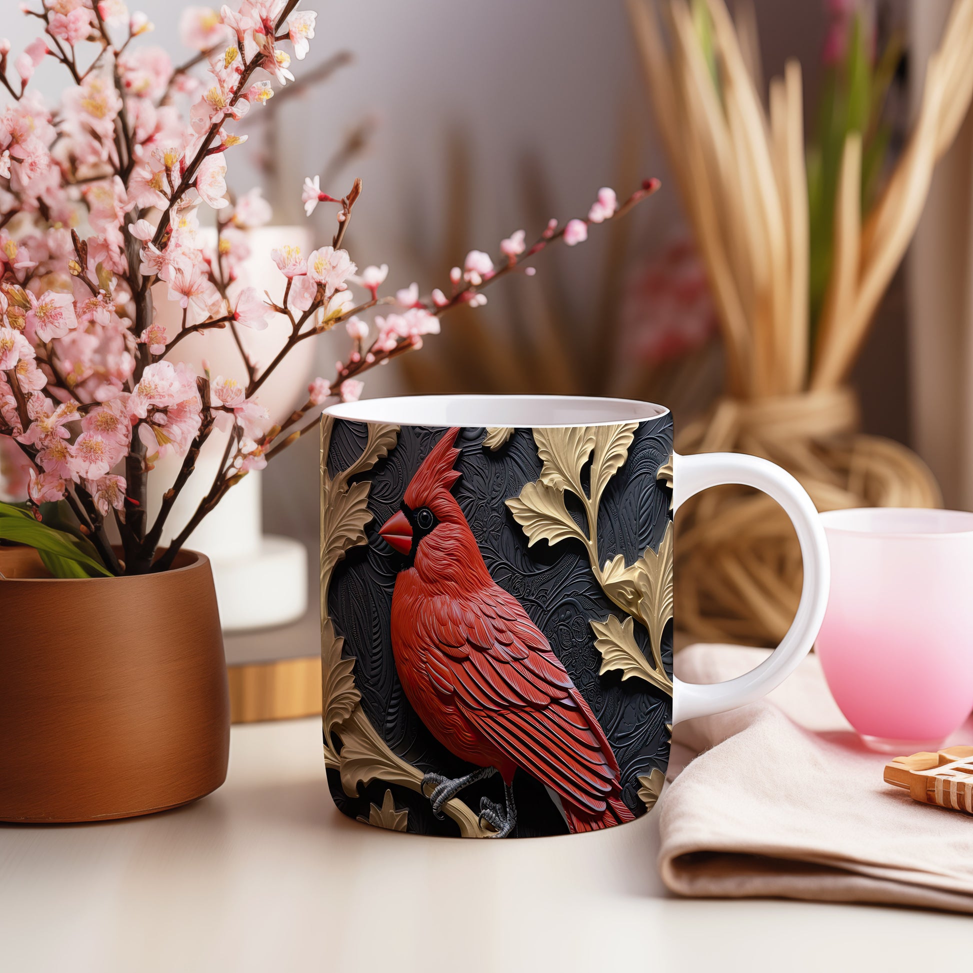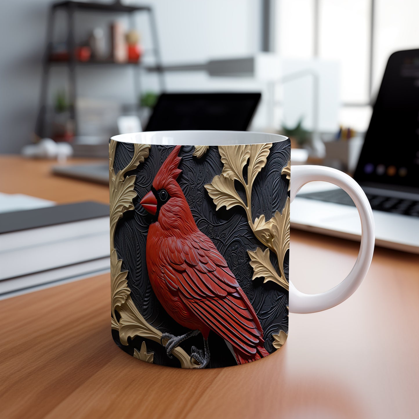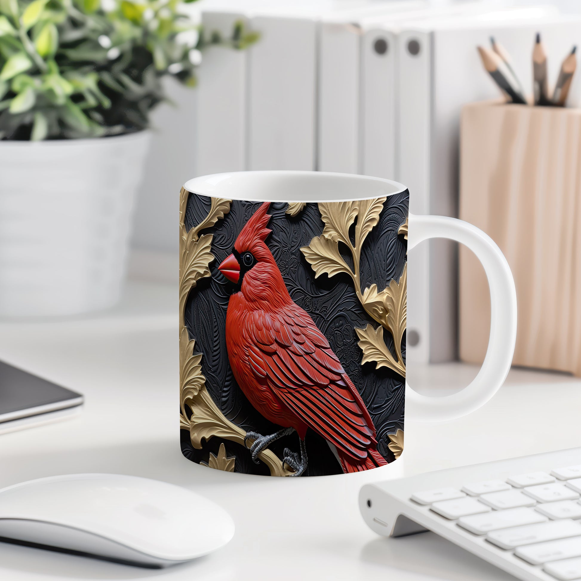 Hrnek s realistickým motivem červeného ptáka na černém pozadí. Tento elegantní kousek je ideální pro milovníky přírody a skvělým dárkem pro každého, kdo ocení krásu přírody. Materiál: keramika. Objem: 330 ml. Vhodné do myčky i mikrovlnky. Užijte si svůj oblíbený nápoj s tímto stylovým hrnkem.