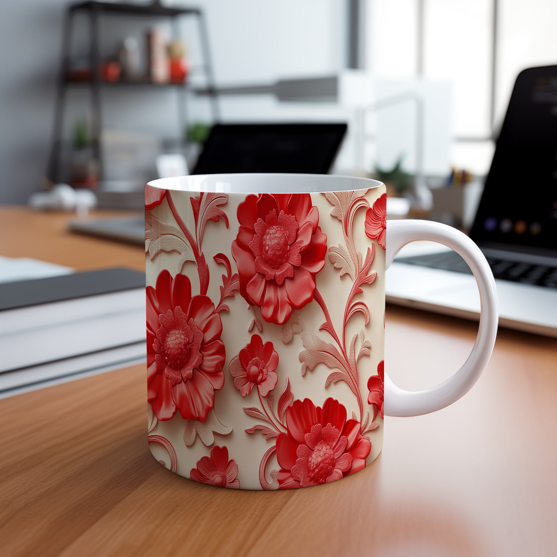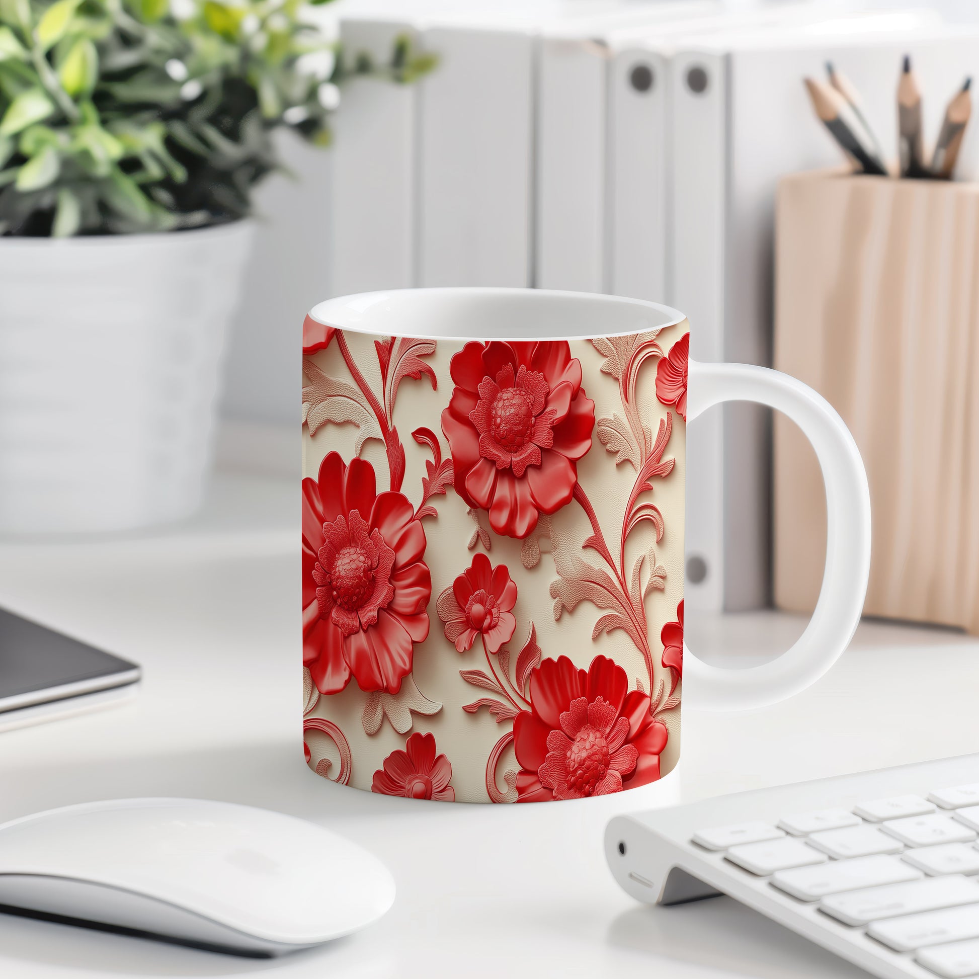 Tento keramický hrnek s krásnými červenými květinami je ideální pro milovníky přírody a květinových motivů. Skvěle se hodí jako dárek pro přátele nebo rodinu, kteří ocení stylové a praktické doplňky. Materiál: keramika. Objem: 330 ml. Vhodné do myčky i mikrovlnky. Díky svému designu přináší do každodenního pití radost a eleganci.