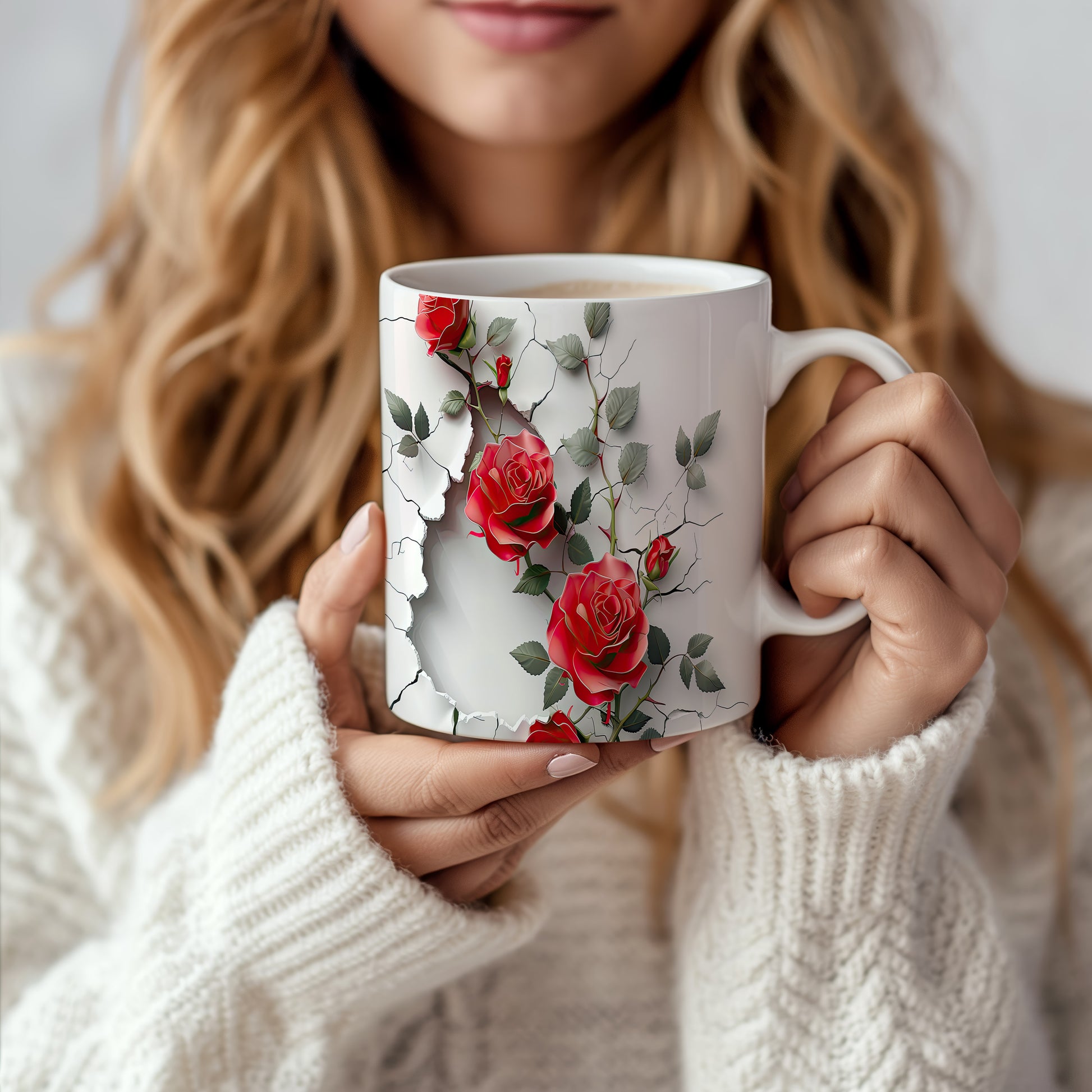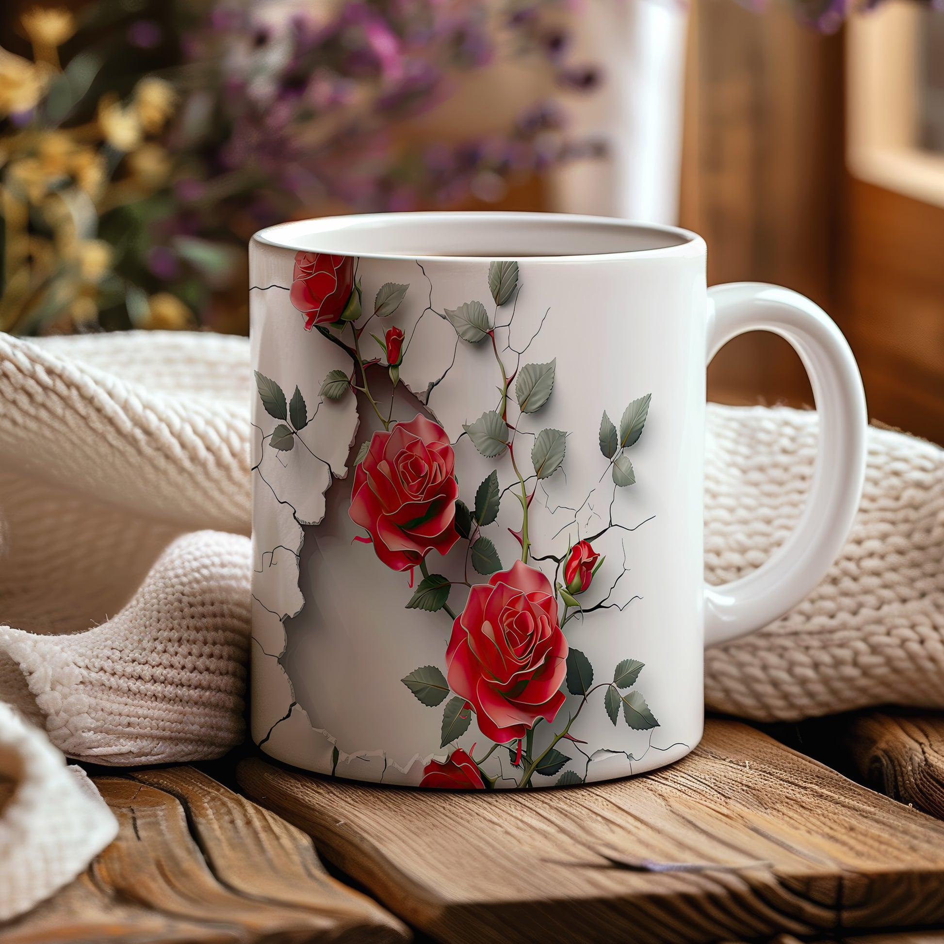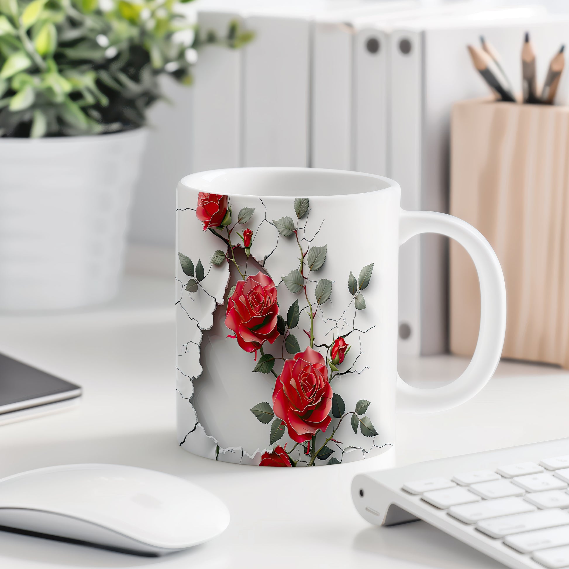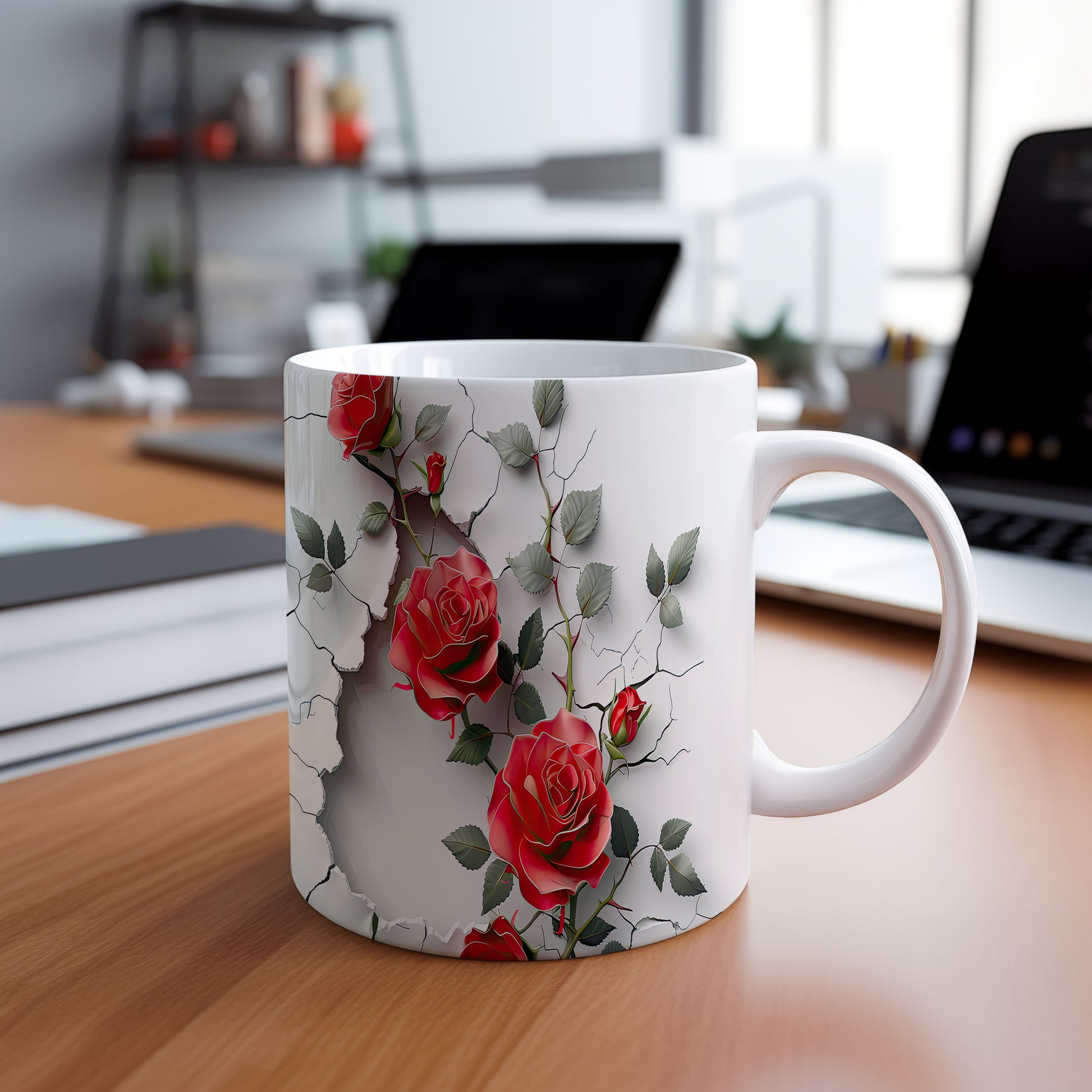 Hrnek se červenými růžemi a 3D efektem