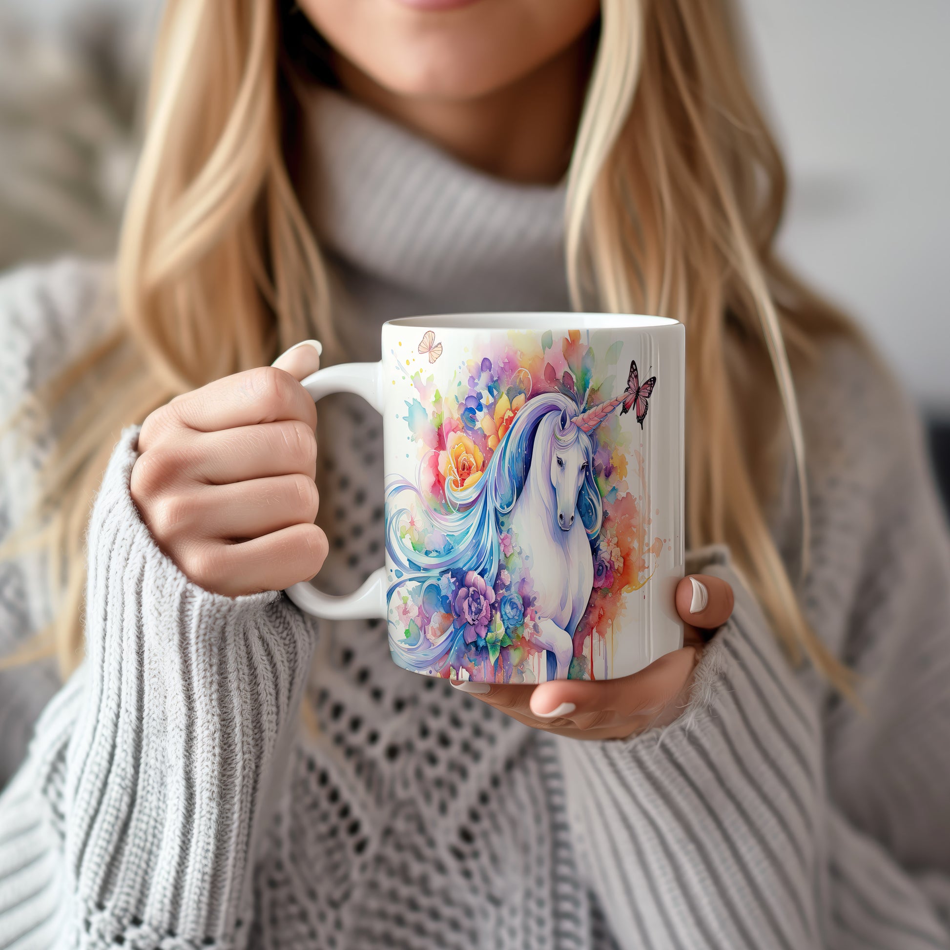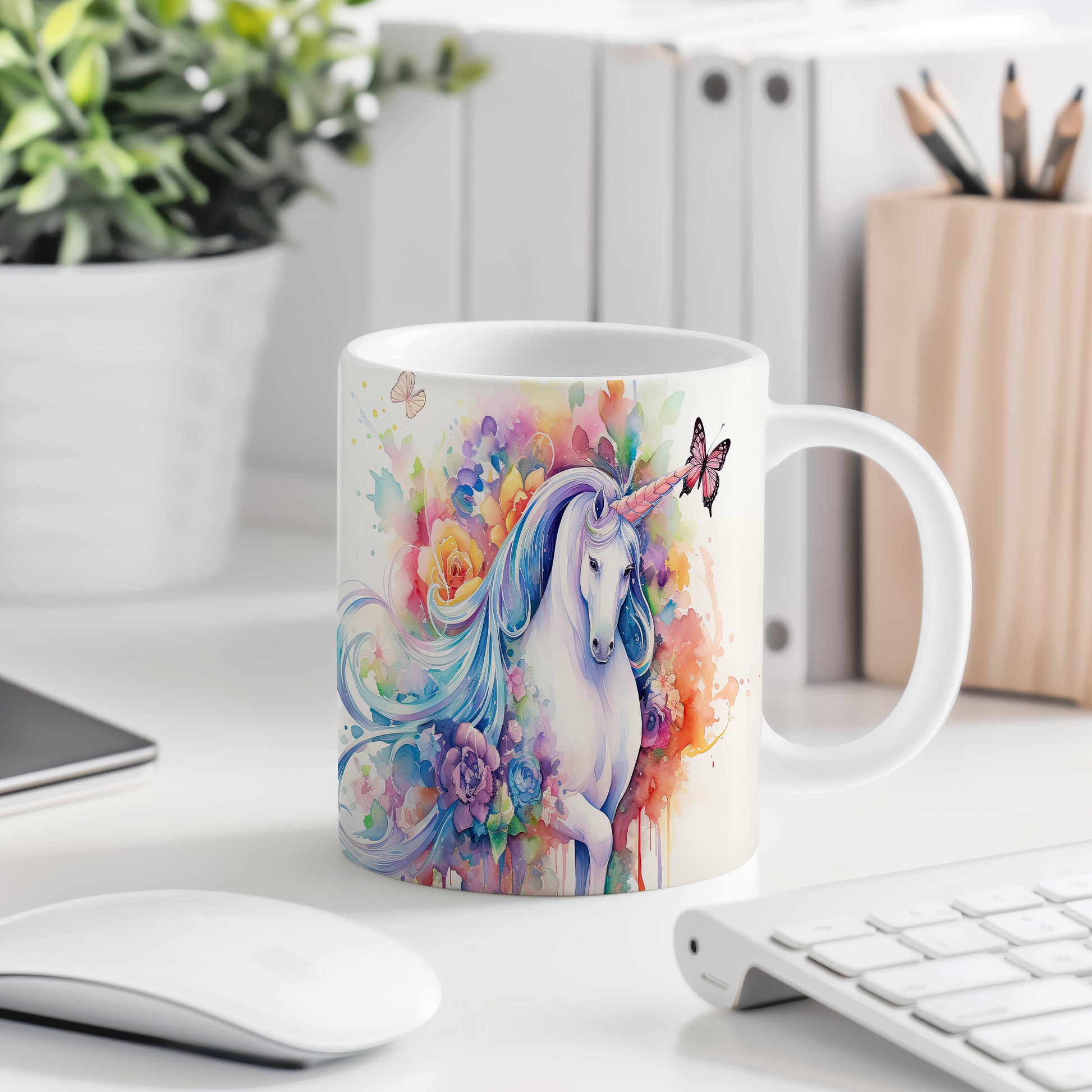 Tento hrnek zobrazuje nádherného jednorožce s barevným květinovým vzorem. Je ideální pro milovníky pohádek a skvělým dárkem pro děti i dospělé. Materiál: keramika. Objem: 330 ml. Vhodné do myčky i mikrovlnky. Díky svému designu přináší radost a kouzlo do každodenního pití.
