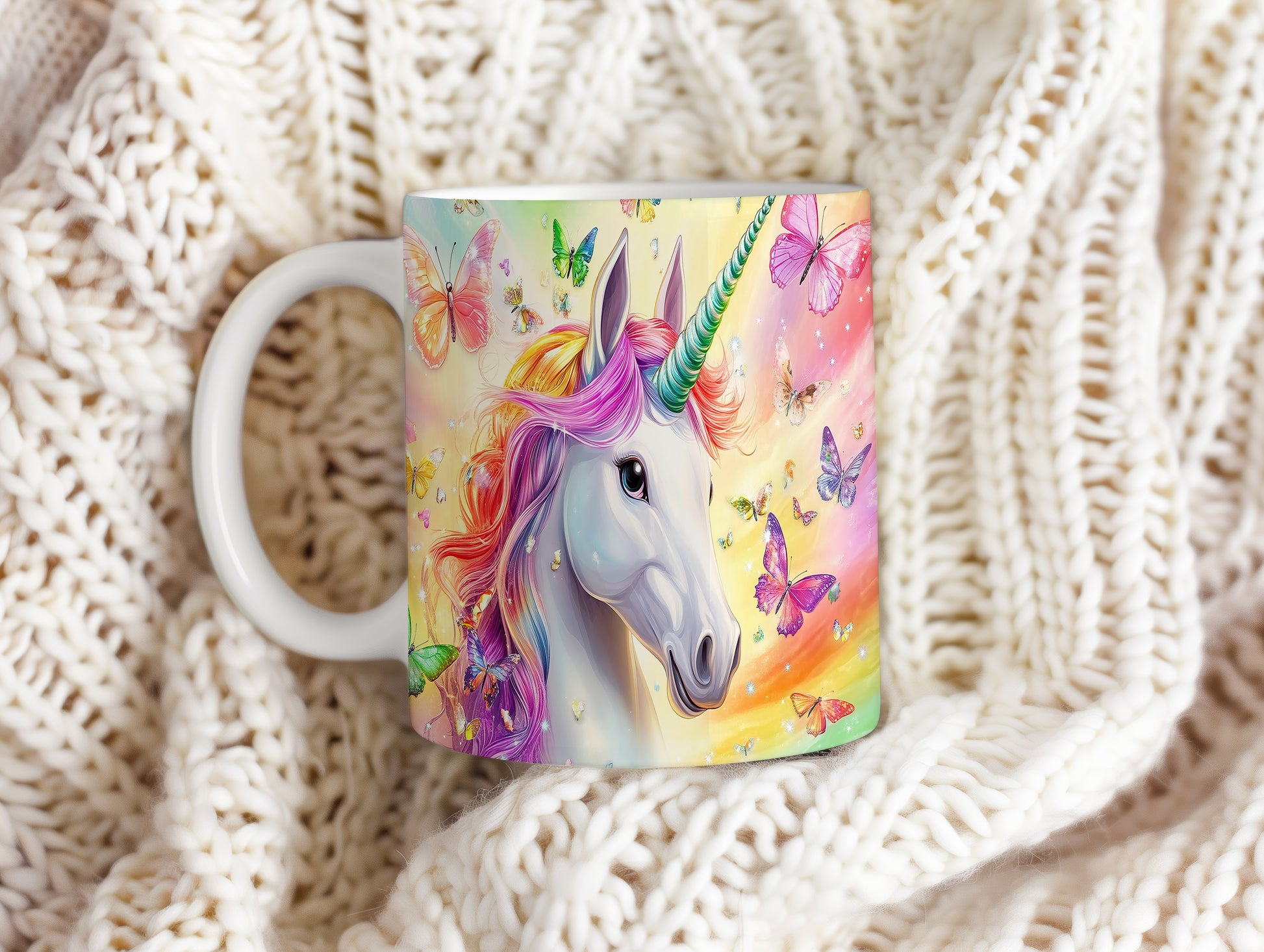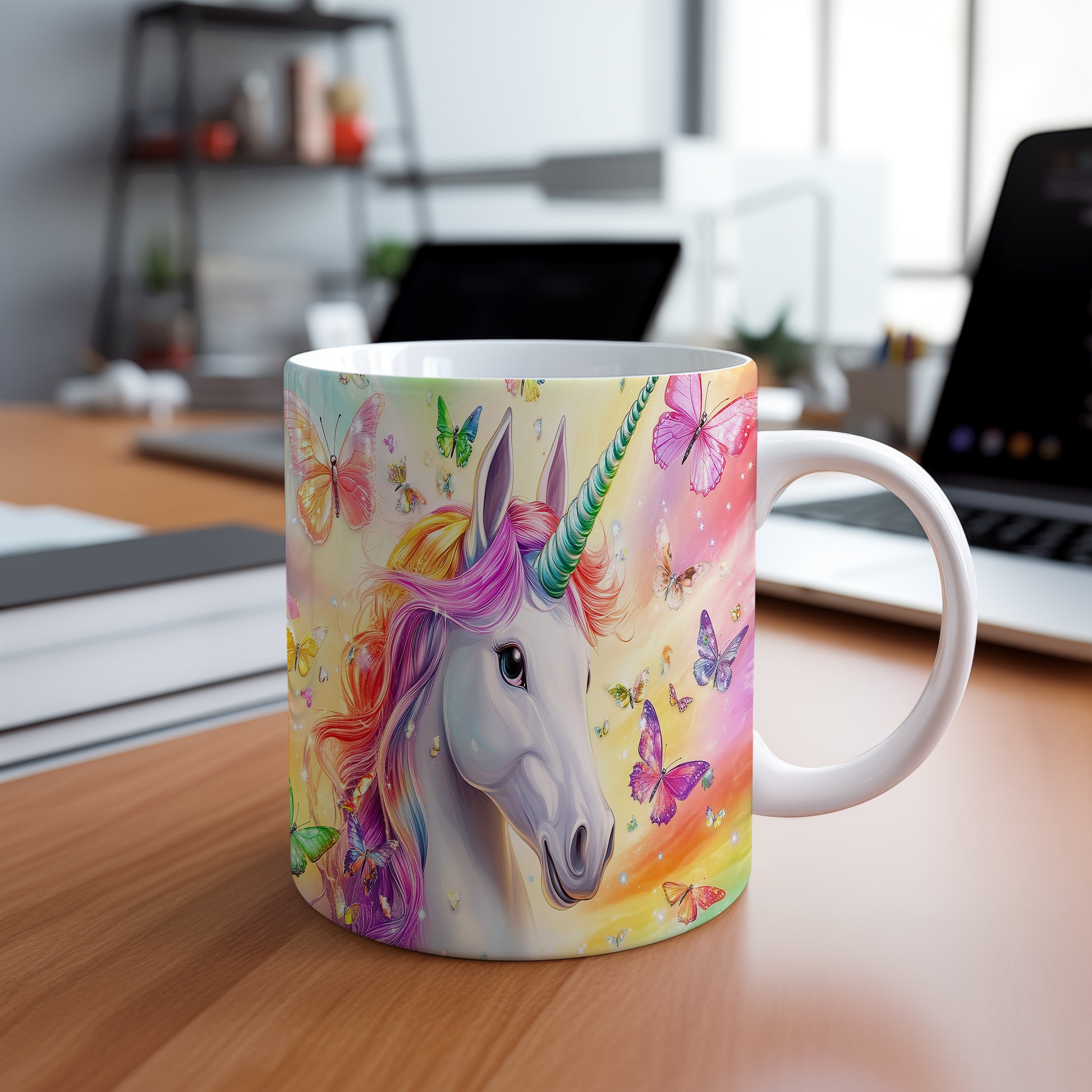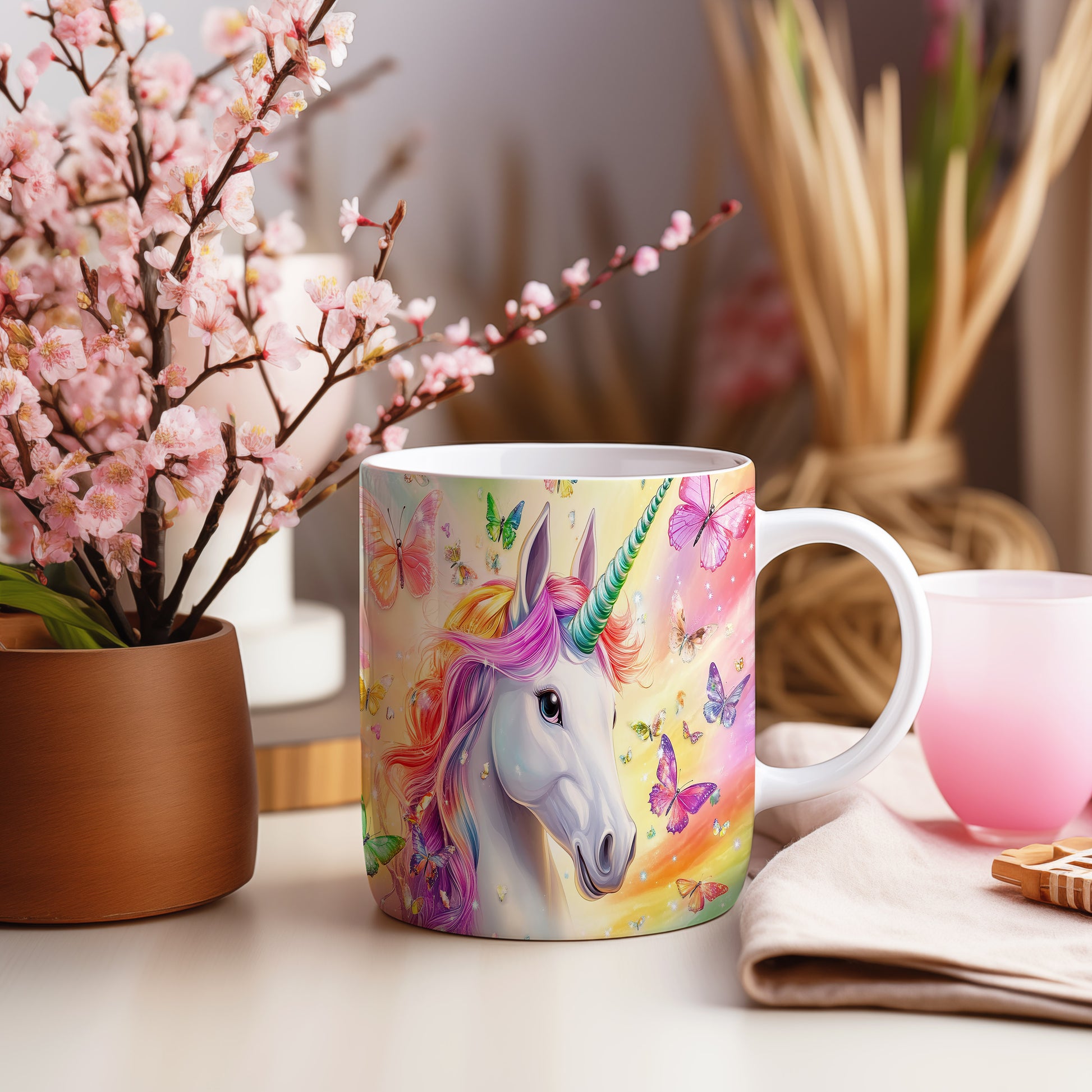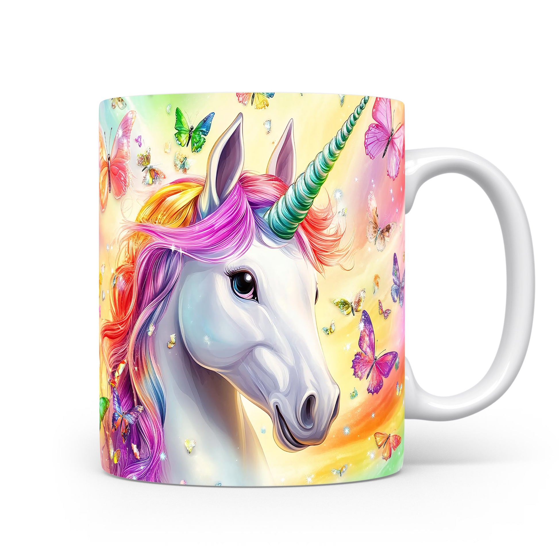 Tento kouzelný hrnek s jednorožcem a barevnými motýli potěší všechny milovníky fantazie a pohádkových příběhů. Je ideálním dárkem pro děti i dospělé, kteří si chtějí zpříjemnit každodenní pití. Materiál: keramika. Objem: 330 ml. Vhodné do myčky i mikrovlnky. Díky svému designu přináší radost a pozitivní energii do každého dne.