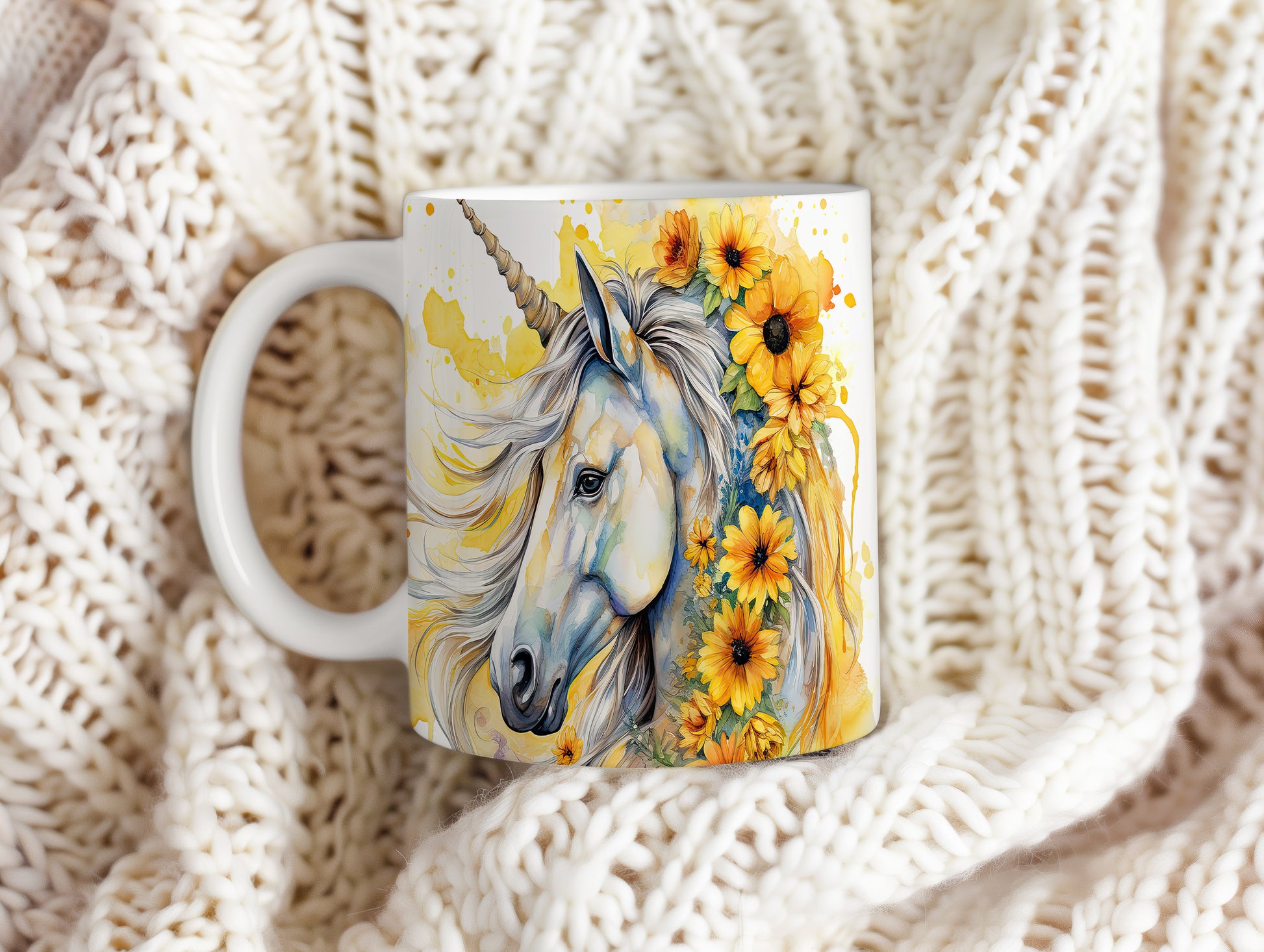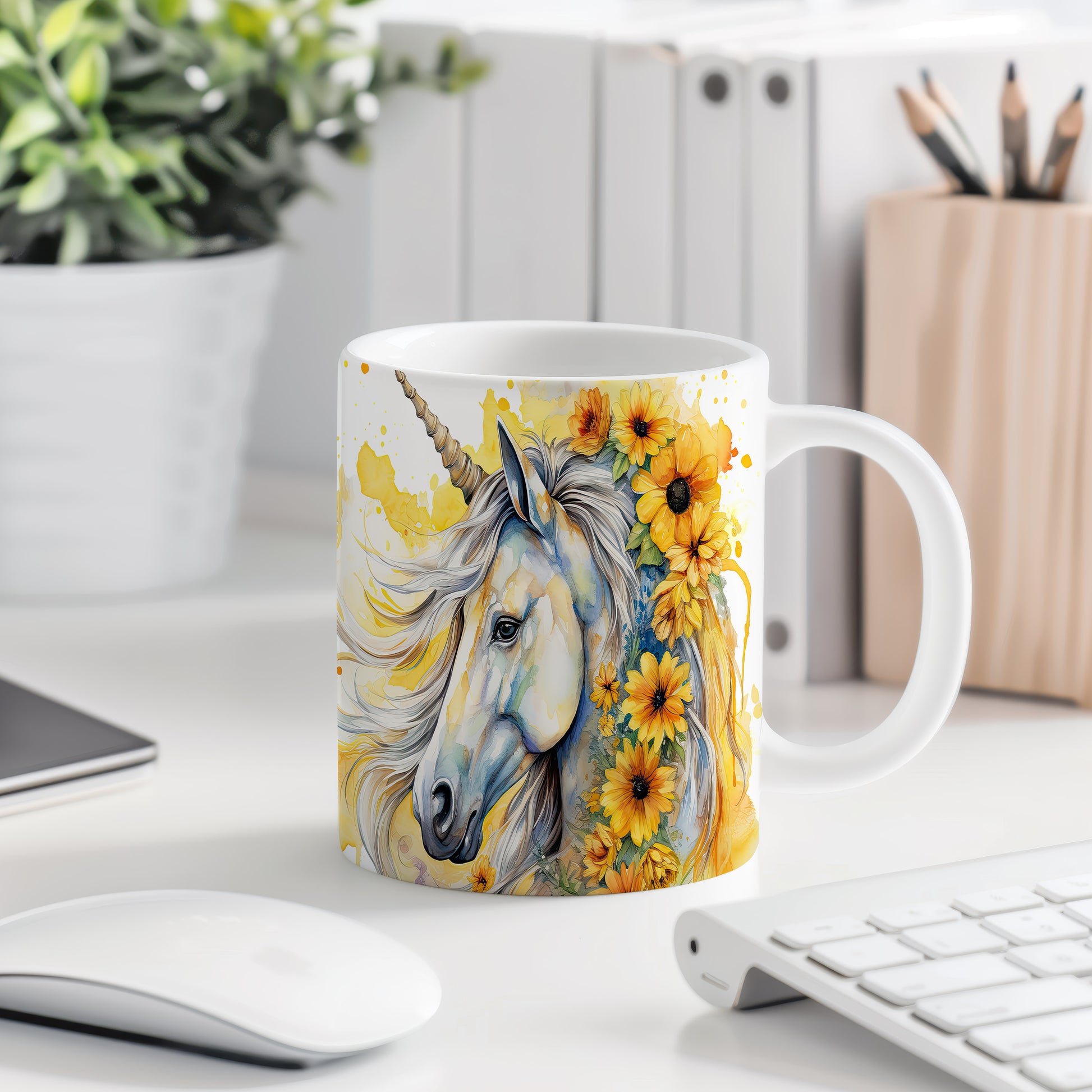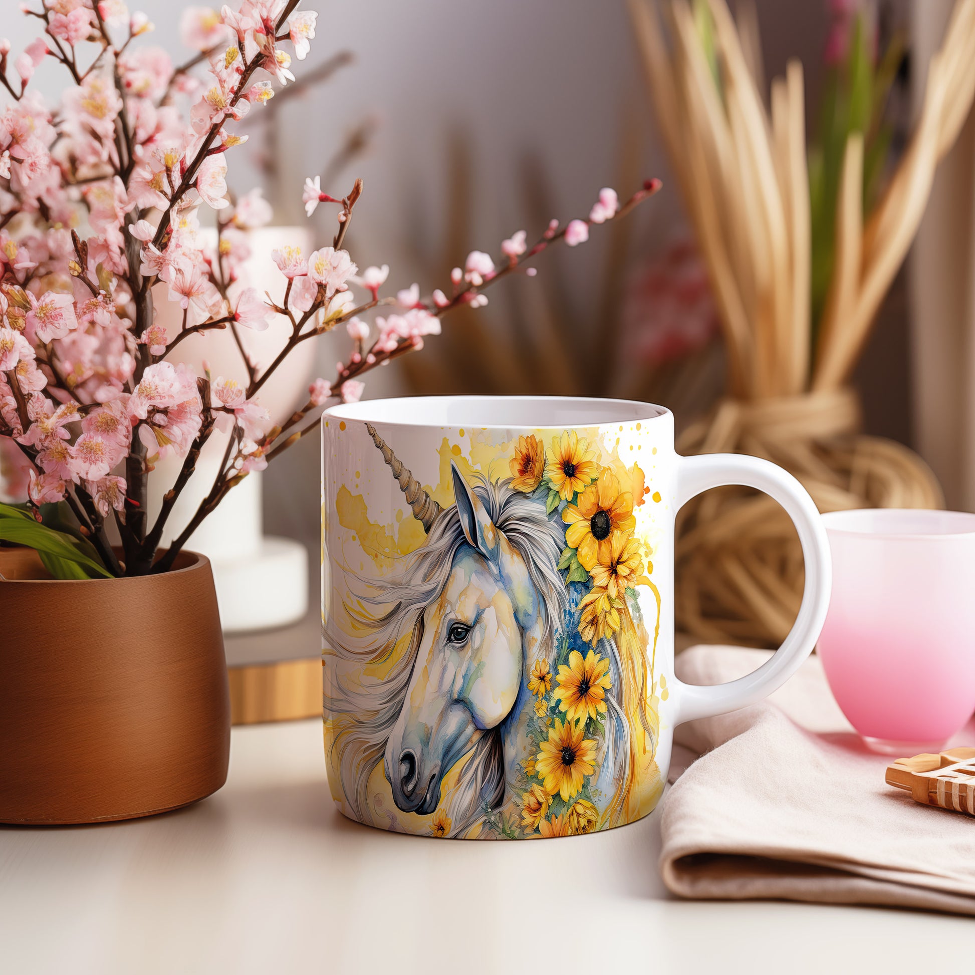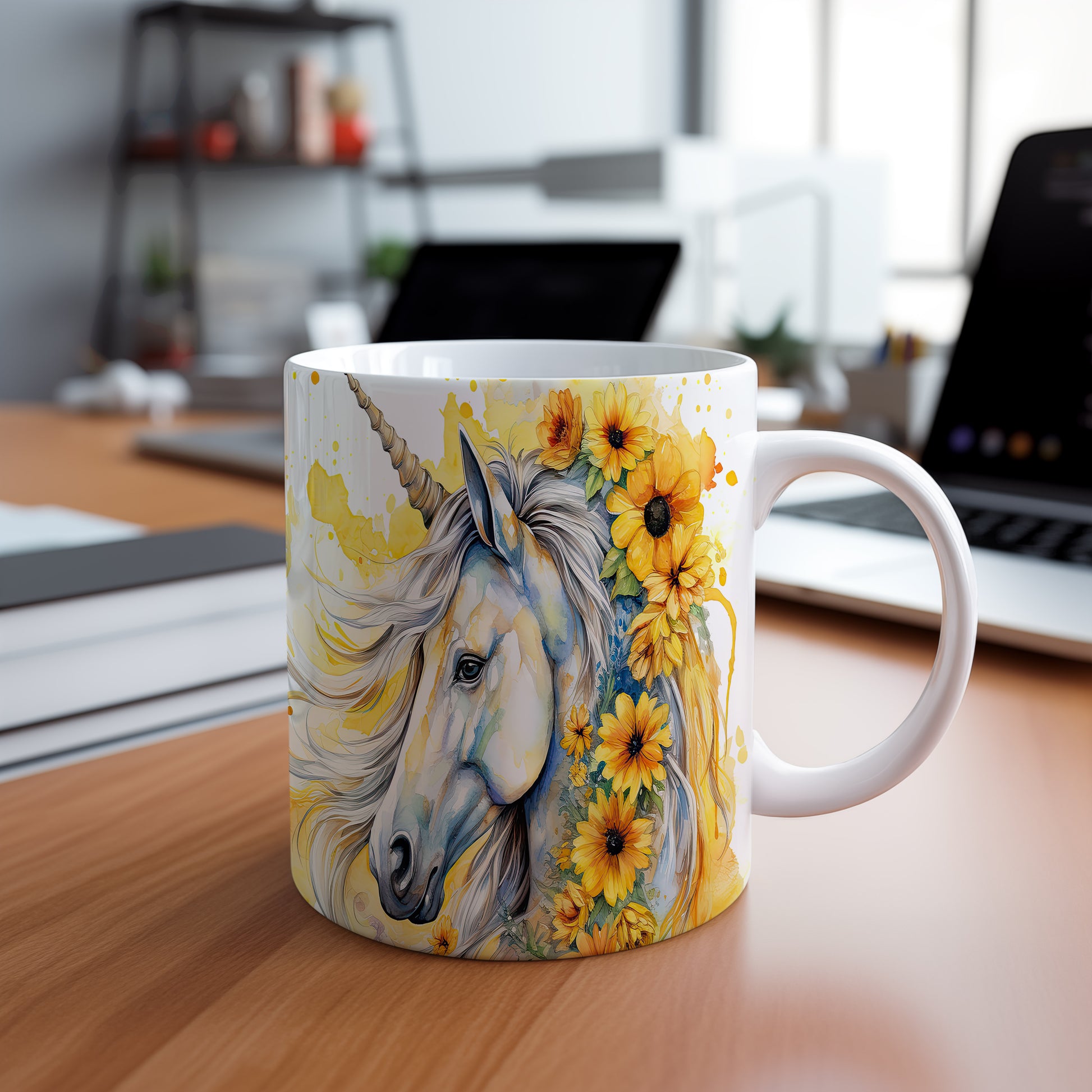 Tento hrnek s motivem jednorožce a slunečnic je skvělým doplňkem pro milovníky pohádkových bytostí. Je ideální jako dárek pro děti nebo pro každého, kdo má rád kouzelné prvky ve svém životě. Materiál: keramika. Objem: 330 ml. Vhodné do myčky i mikrovlnky. Užívejte si svůj oblíbený nápoj s tímto jedinečným hrnkem, který přináší radost do každého dne.